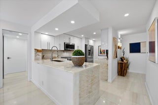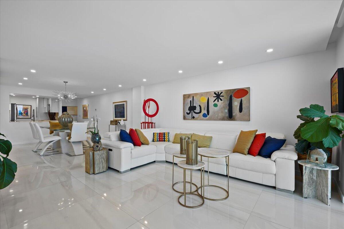 Spectacular East, North East & South East ocean views from this completely remodeled end unit, porcelain floors, all baths have marble floors & walls, quartzite counters in kitchen & both baths, abundance of recessed lighting in all rooms, Kitchen, Dining & Family Room have ocean views, Master bedroom has ocean views, 2 glass sliders to wrap around balcony, impact windows & sliders, all stainless steel appliances, wine fridge, double door entry to large Foyer, electric blinds in Family Room sliders & master bedroom sliders and window along with the 2nd bedroom, all custom solid 4 panel interior doors with lever hardware, from floor to ceiling, everything has been redone, spacious Turn Key open floor plan. Seeing is believing!