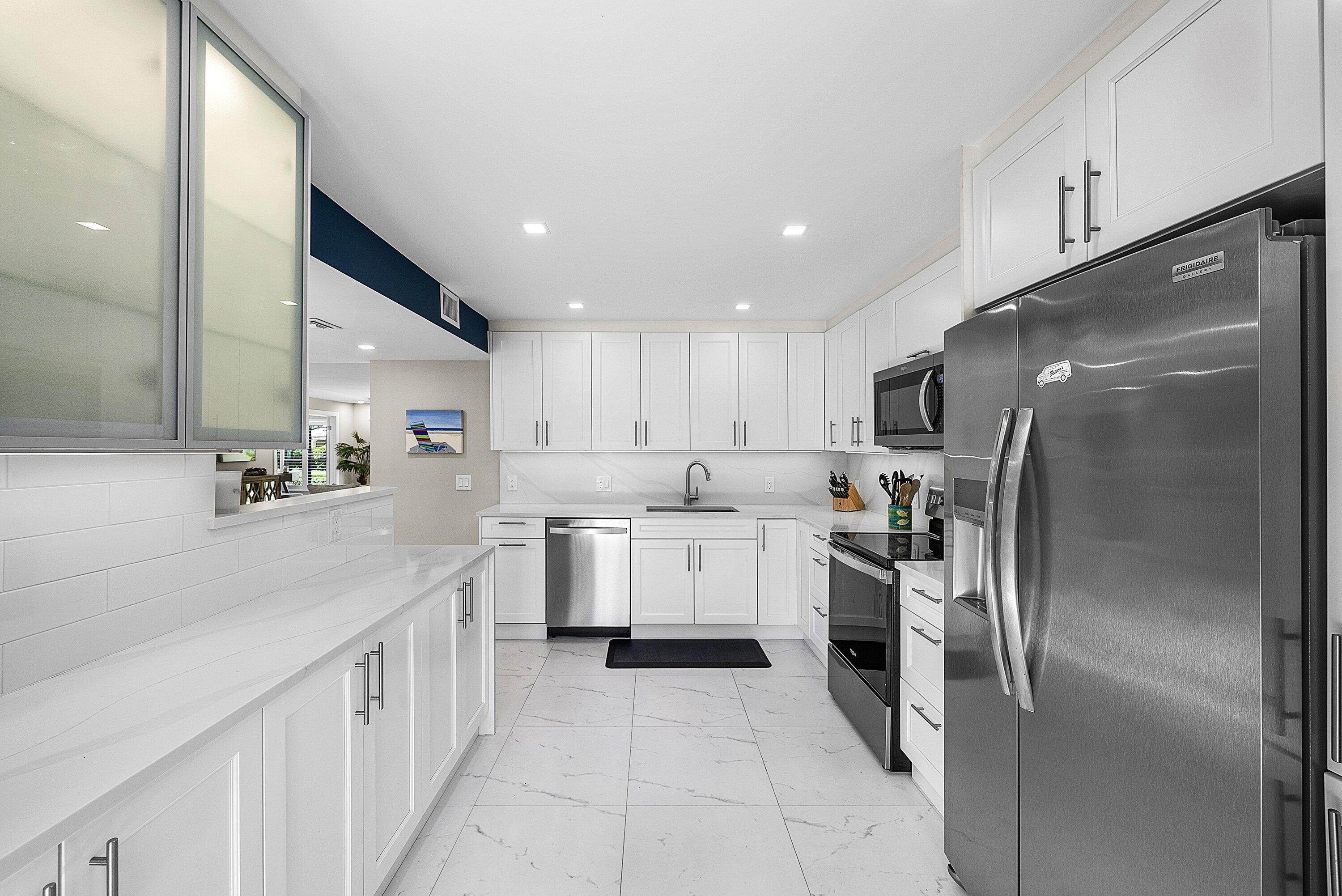Welcome to this inviting 1st‑floor home showcasing serene golf course & garden vistas. The well‑designed split floorplan ensures privacy and a smooth flow between living zones. At its heart, a fully renovated kitchen features crisp white cabinetry, elegant white quartz countertops with a waterfall edge, and a bright breakfast nook--perfect for casual mornings. The open living and dining area seamlessly extends to a rear open patio, creating a natural indoor-outdoor connection ideal for relaxing or entertaining. Additional highlights include being just steps from the community pool and all club amenities. Fresh, modern and maintenance‑free--don't miss the chance to enjoy a refined lifestyle in this exceptional residence. Impact glass windows! Quail Ridge is a mandatory memb