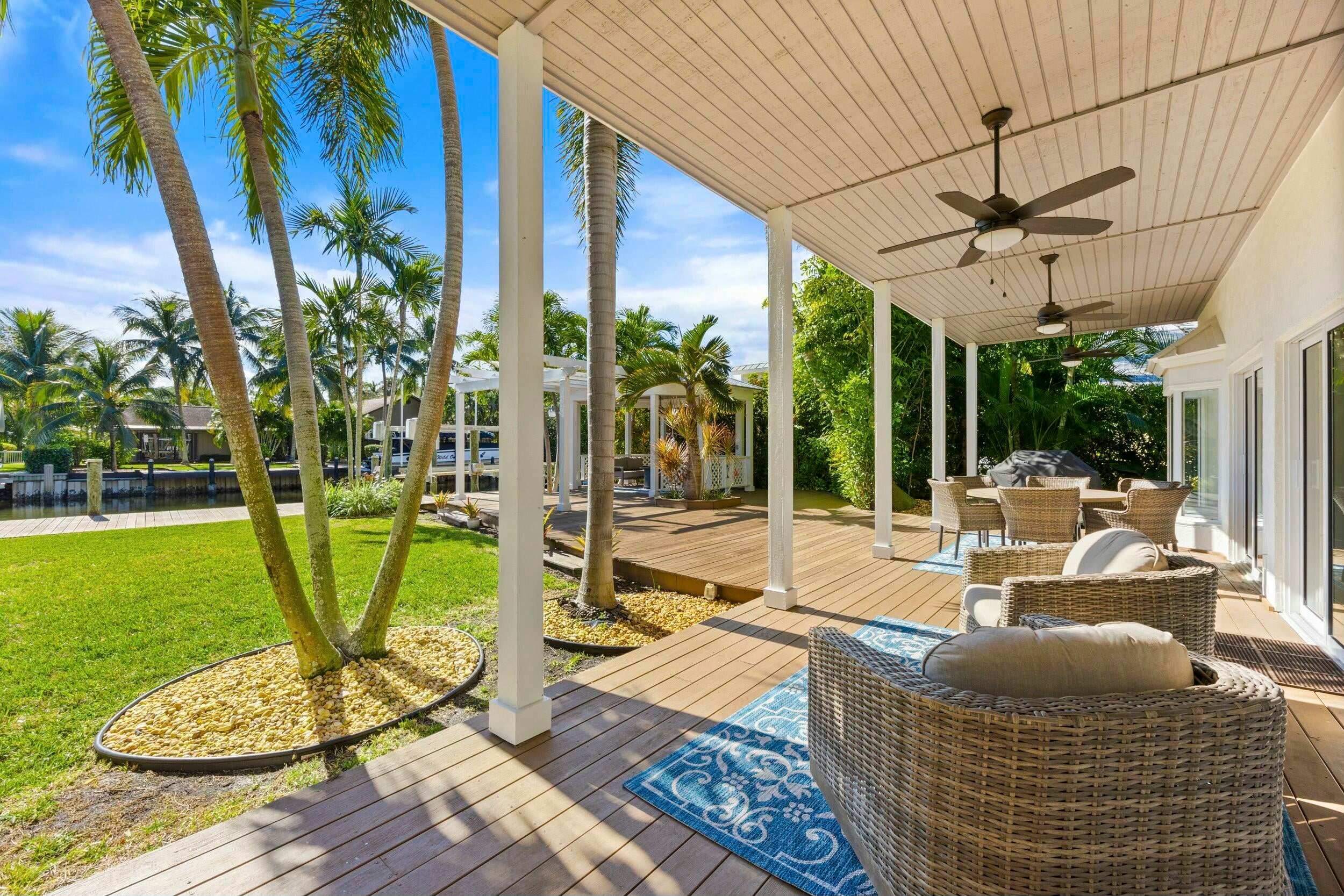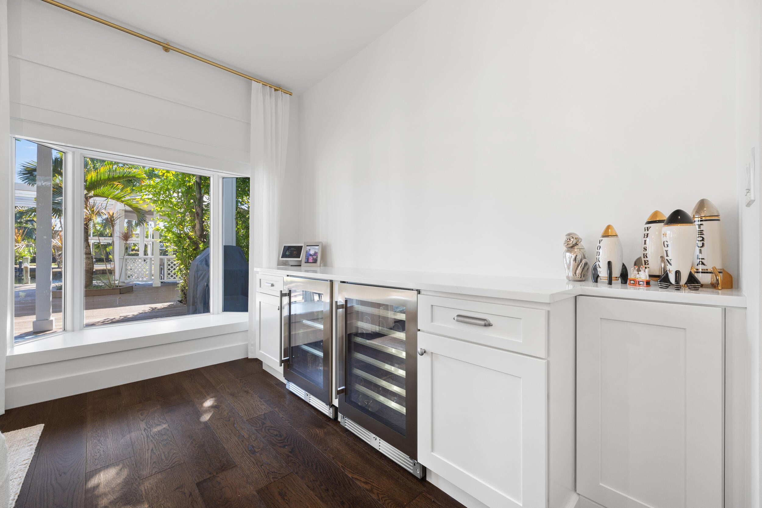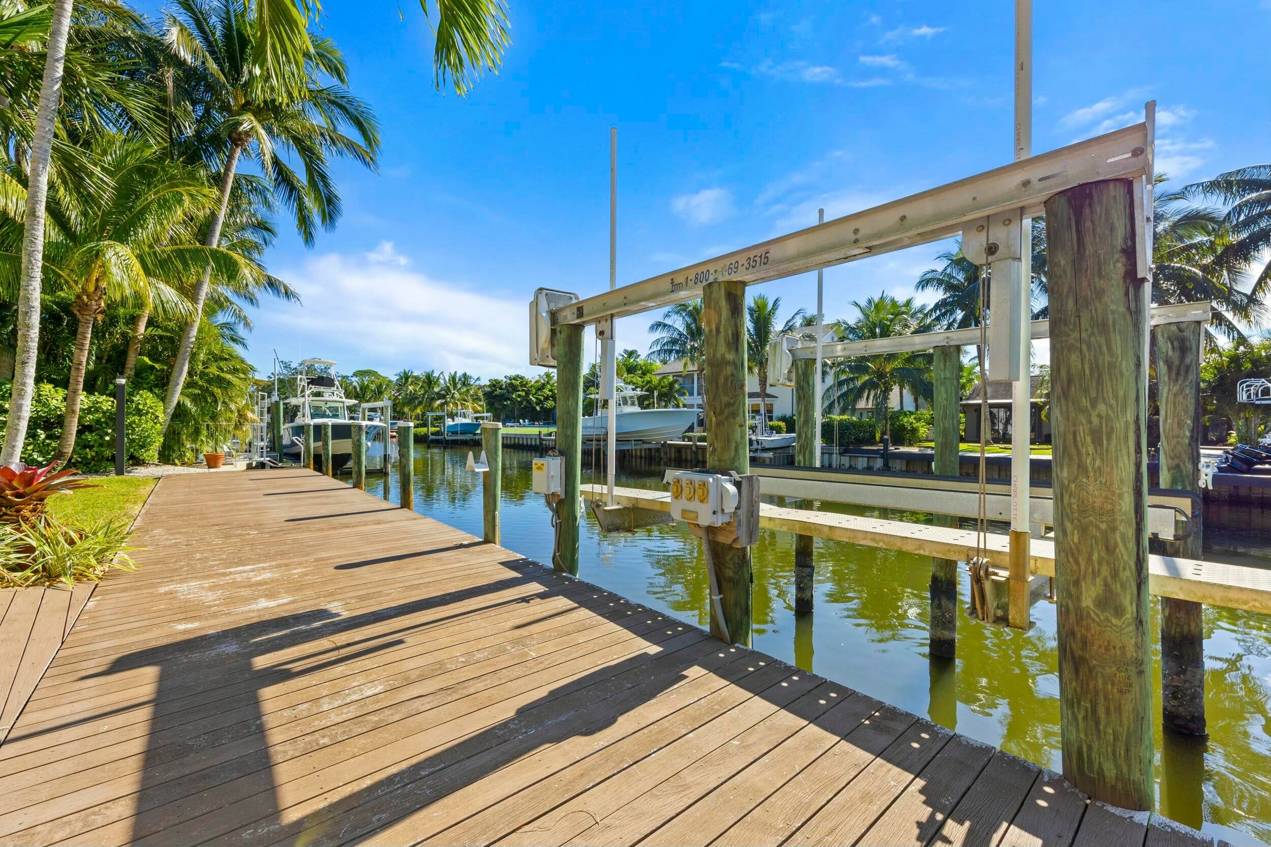 Stunning Key West-Style Waterfront Home in Jupiter, FL - A Boater's Dream! This beautifully remodeled 5-bedroom, 3 1/2-bath waterfront home, located in the heart of Jupiter, Florida, offers the ultimate in coastal living. Set on 78 feet of prime waterfront property on , a deep water canal the home features a dock with electric and water, plus a 13,500 lb boat lift - perfect for boating enthusiasts. With no fixed bridges, you'll have quick and easy access to the Intracoastal Waterway and just minutes from the Jupiter Inlet to the Atlantic Ocean. Completely remodeled in 2022, the home blends modern luxury with classic Key West charm. Inside, you'll find wide-plank flooring throughout, adding a warm and inviting feel to every room. The heart of the home is its stunning gourmet kitchen,which boasts Signature Kitchen Suite appliances, including refrigerator and freezer columns, dual-fuel pro gas range with griddle, along with custom cabinetry and quartz waterfall countertops that make a bold statement. A bar prep sink adds convenience, making the space perfect for both everyday living and entertaining. In addition to the chef's kitchen, there's a separate bar area featuring a beverage refrigerator and wine cooler, offering the perfect spot for mixing cocktails or storing your favorite wines. The home is equipped with impact glass and a metal roof. Other upgrades include two new A/C units (one installed in 2022, the other in 2023), a tankless on demand gas hot water heater (installed in 2023), and a 250-gallon propane tank for added efficiency. For added comfort and convenience, the home also features motorized window blinds, which allow for effortless control of light and privacy at the touch of a button. With 5 spacious bedrooms, 3 1/2 baths, and a layout designed for easy flow between indoor and outdoor spaces, this home is perfect for both relaxing and entertaining. The dock, which stretches along almost the entirety of the back of the property, offers ample space for docking or simply enjoying the waterfront. The home also features a home security system for added safety. Furniture is negotiable. This exceptional waterfront property is located in one of Florida's most desirable communities.