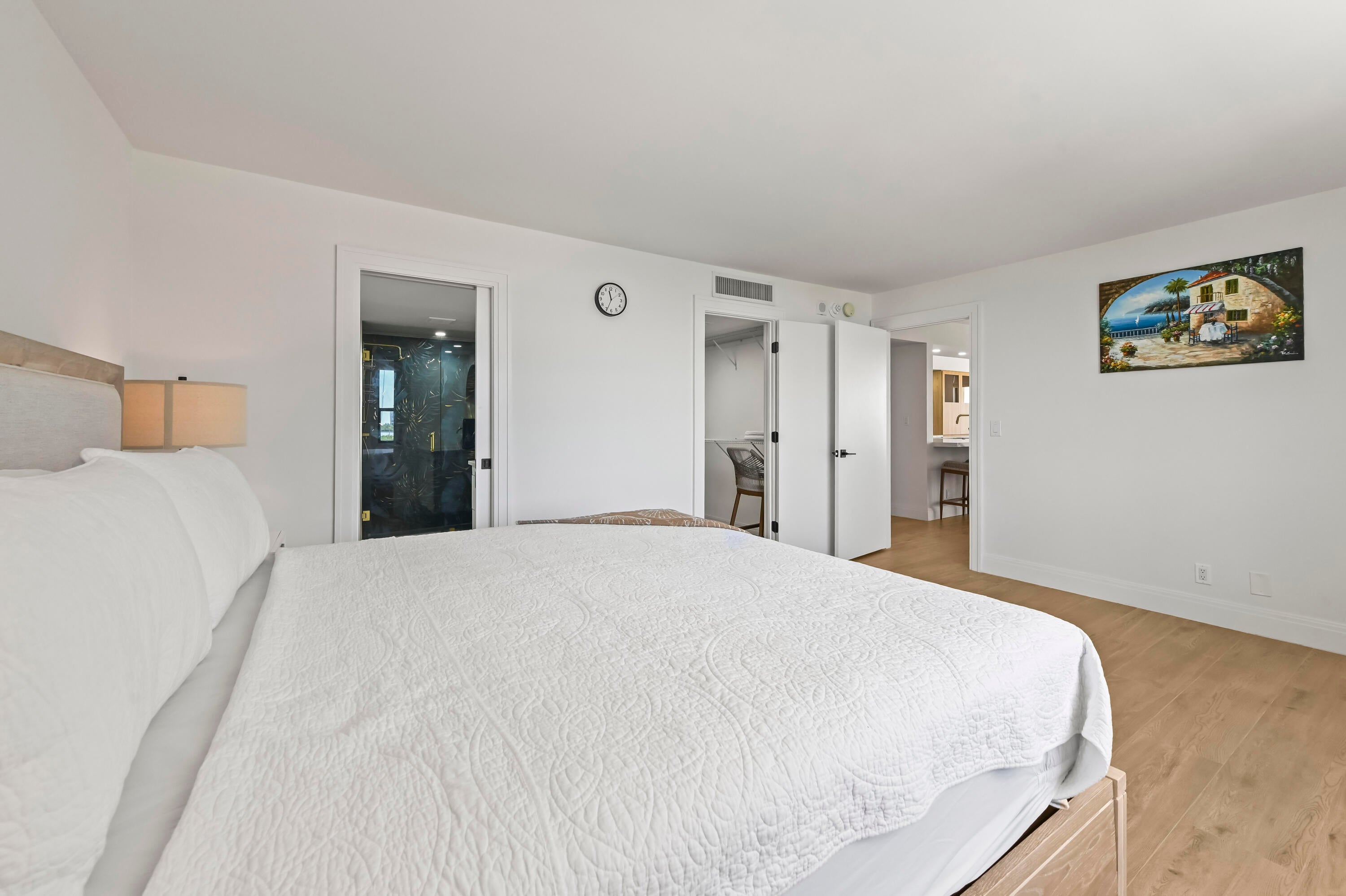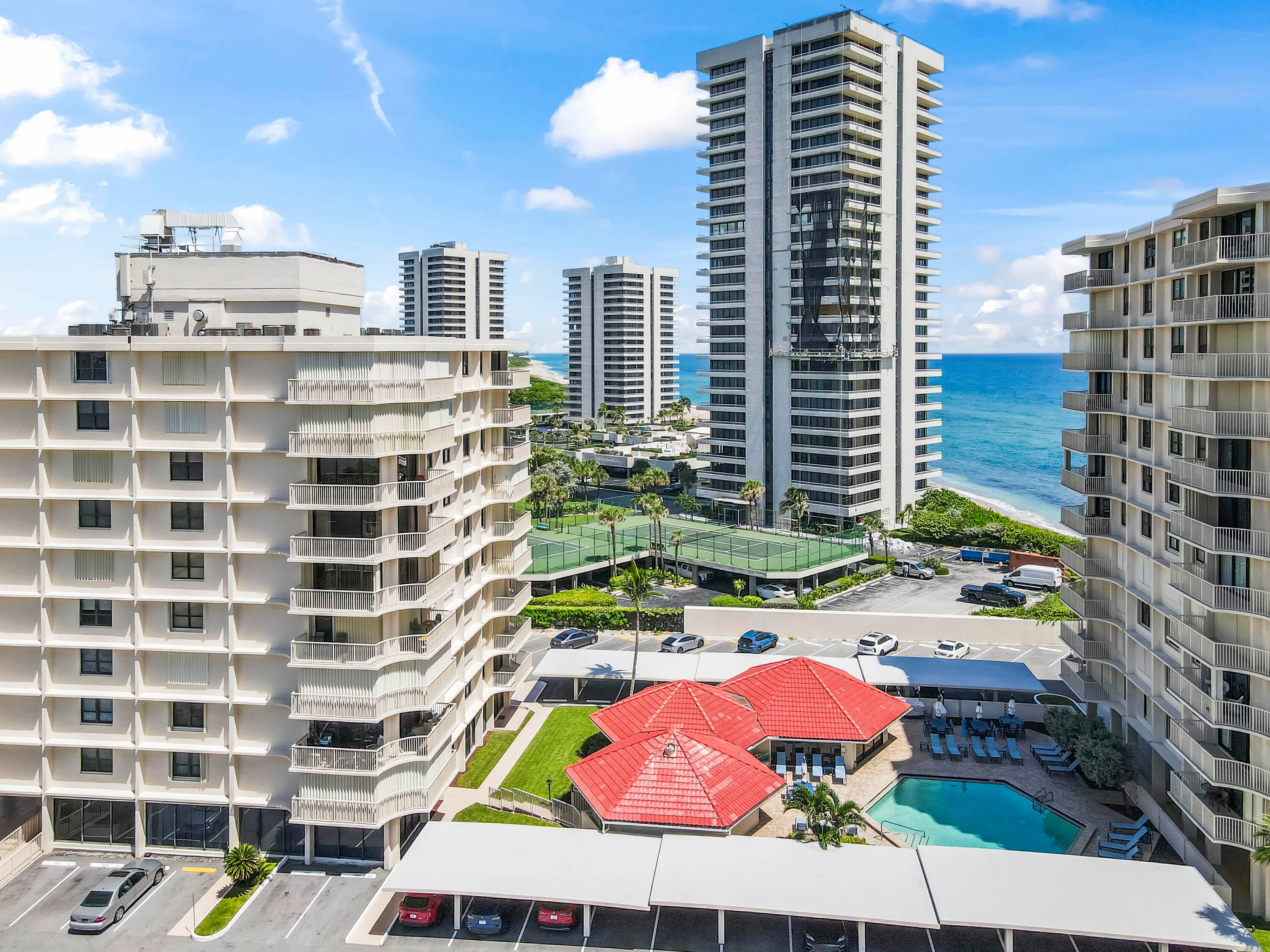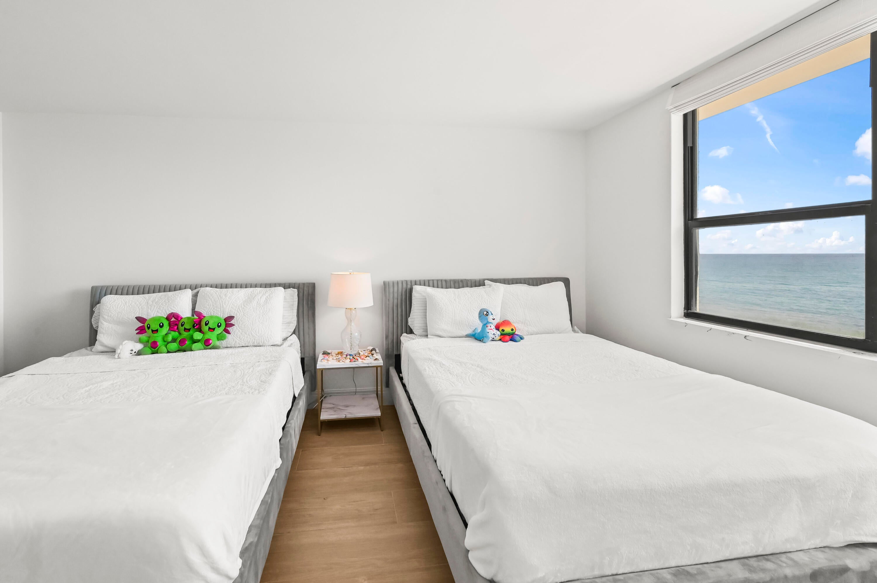NO SPECIAL ASSESSMENTS ON UNIT!!! Step into a world of high-end, state-of-the-art luxury with this exquisitely detailed two-bedroom, two-bath condo. The minute you walk in, you'll be captivated by the seamless fusion of design and function. The elegant Italian wood-look tile flooring sets a sophisticated tone, beautifully complemented by a custom millwork throughout. Every fixture speaks of quality, with highly upgraded Brizo and Riobel faucets and plumbing fixtures that add a touch of modern elegance.The heart of this home is the kitchen, featuring stunning custom cabinetry, Cambria Portrush quartz countertops, and modern appliances. The open kitchen layout allows you to effortlessly take in the spectacular views while you cook, and both baths have been meticulously updated with highly upgraded tile and sleek glass shower doors. As a highly sought-after southeast corner unit, this home offers spectacular and expansive wrap-around balconies, a true extension of your living and entertaining space. Dunes Towers is a boutique-style property nestled perfectly between the azure waters of the Atlantic Ocean and the tranquil Lake Worth Lagoon/Intracoastal on the northern end of Singer Island. The community itself offers a beautiful private beach, a clubhouse, an exercise room, gas barbecues, and an on-site manager. Its prime location places you just moments from premier shopping, recreation, and top-rated restaurants, providing an unparalleled coastal lifestyle. This is more than a home; it's a seaside sanctuary of luxury and convenience.