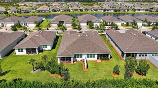 Move-in ready villa in Del Webb at Tradition! This 2BR + flex room home features open-concept living with modern upgrades including a whole-house water filtration system, tankless water heater, plantation shutters, motorized shade, custom closets with drop zone, and impact glass. The kitchen offers Whirlpool stainless appliances, gas stove, tiled backsplash, and great storage. Enjoy a screened patio and finished garage floor. Community amenities include a resort pool and spa, pickleball, tennis, bocce, dog parks, fitness studios, lake trails, social halls, ballroom, game rooms, putting green, lap lanes, and a full lifestyle calendar. Ideally located near shopping, dining, and medical facilities in Tradition.