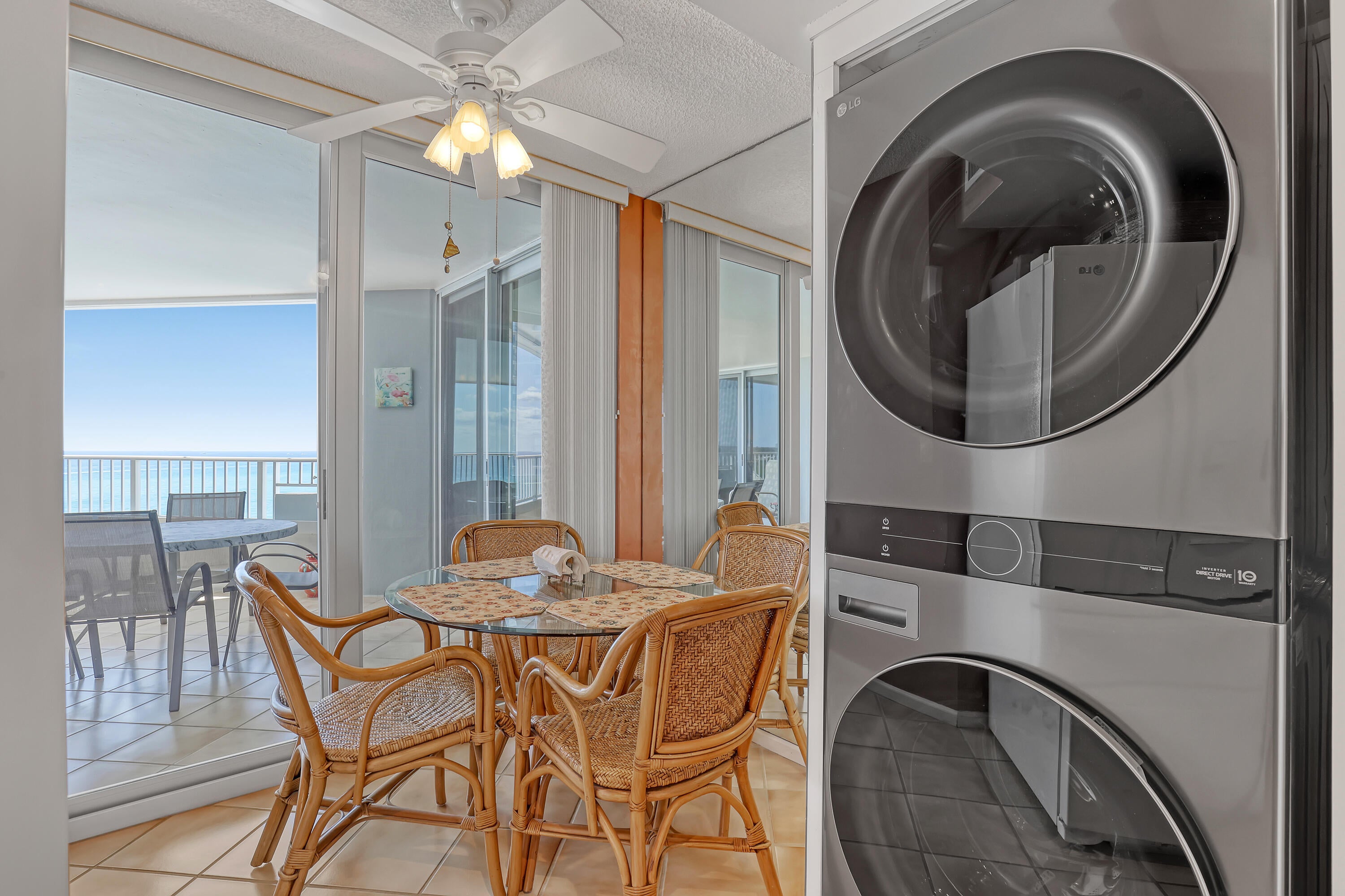 Enjoy the stunning views of the ocean and intracoastal waterway. This unit offers southern exposure, split floor plan, large balcony, impact windows and doors, shutters, 1 assigned garage parking. The Corniche is the premier condominium on Singer Island. Tennis, spa, pickleball, tennis, heated pool, exercise room. 24 hr concierge in lobby. Party room. Washer/dry inside of unit.