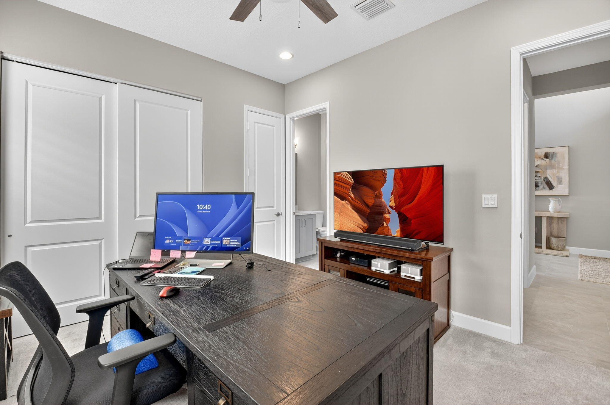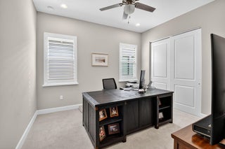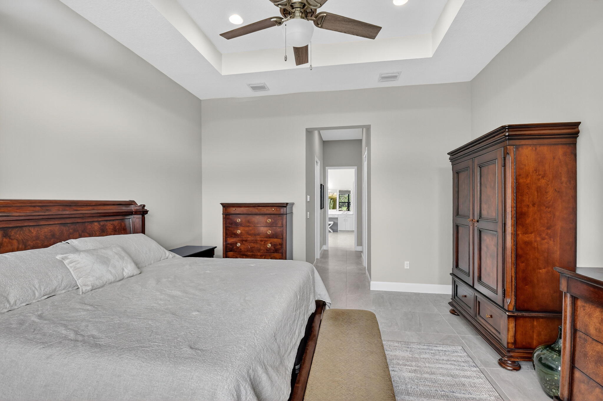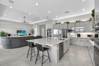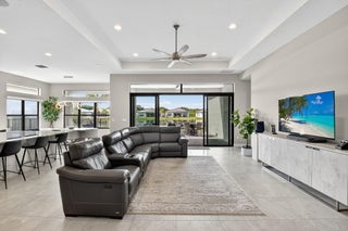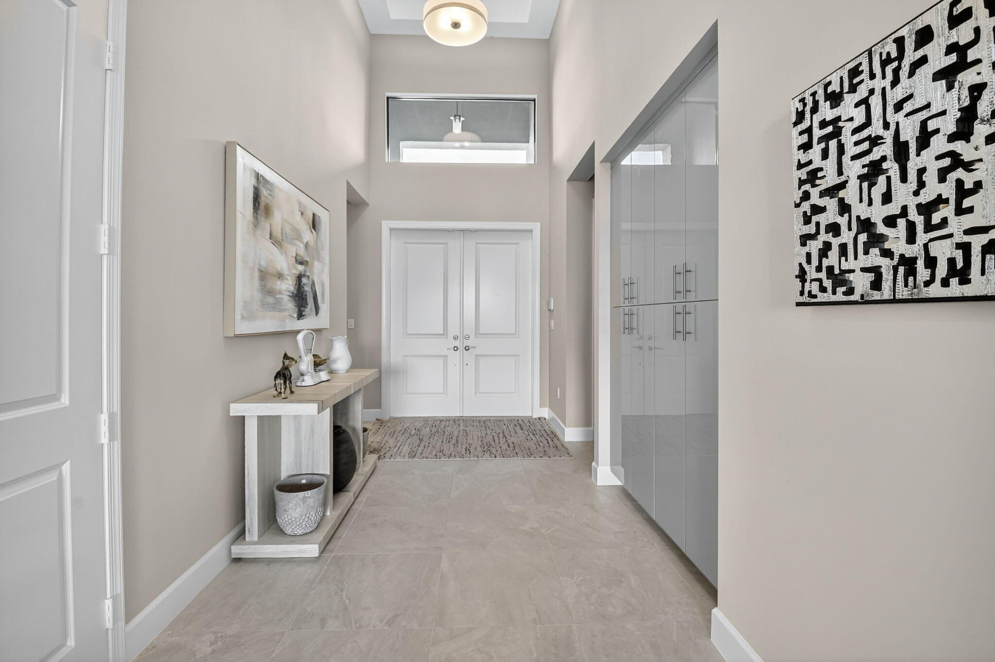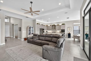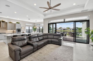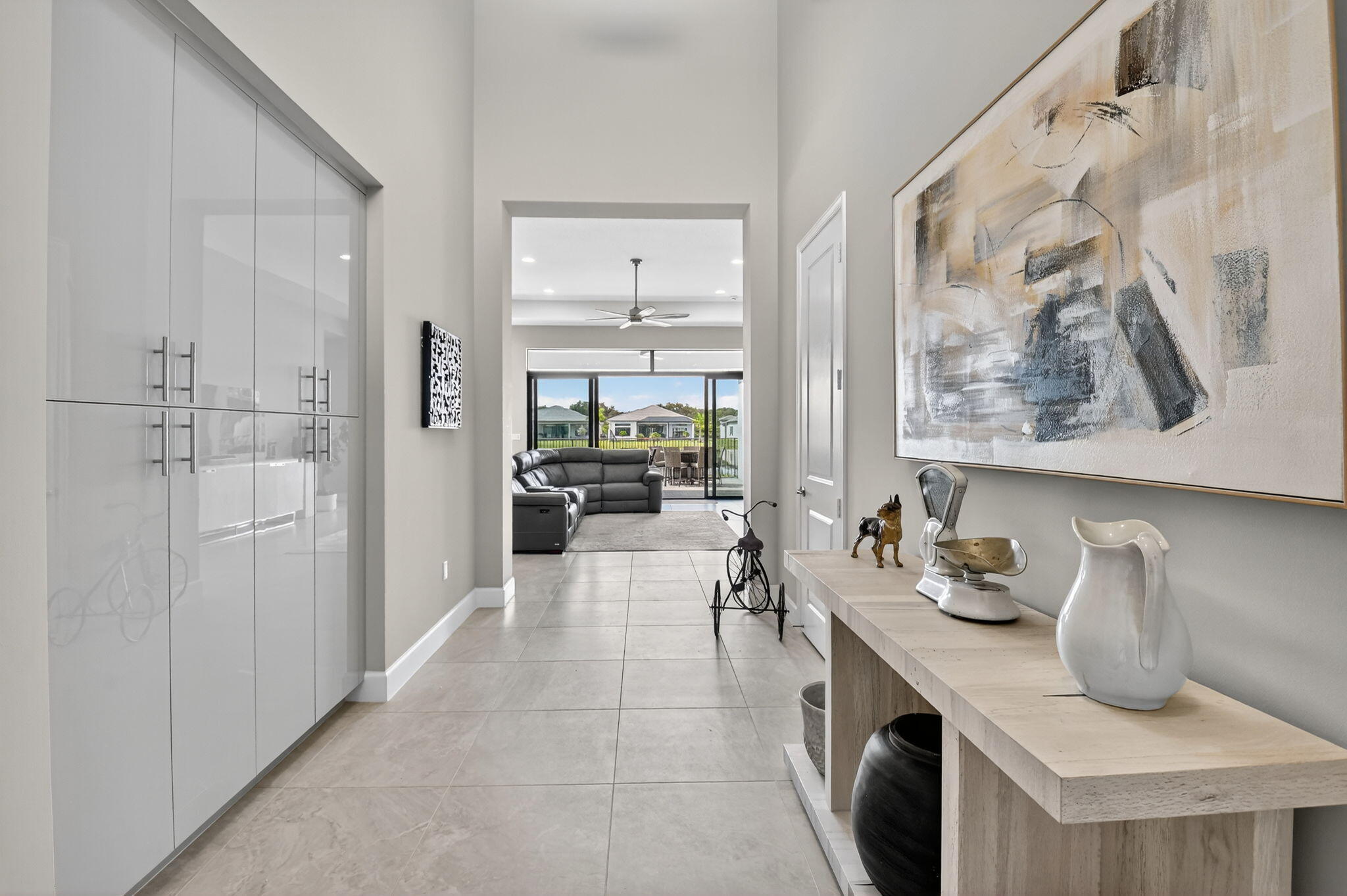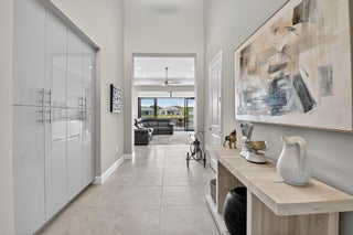 Sophisticated and beautifully appointed, this 2024 Valencia Grand residence is set on a prime lakefront lot in one of GL Homes' newest 55+ communities, offering more than $300,000 in custom upgrades. Inside, the home features upgraded designer tile throughout, solid wood doors, remote-controlled window treatments, whole-house surround sound, and a full-house Generac generator. The chef's dream kitchen has been upgraded to the highest level with custom pull-out drawers in both pantry and cabinets, premium finishes, and an exceptional layout designed for entertaining. Plus a hobby room, adding 255 sq. ft. of AC living space.Additional highlights include two-inch wood shelving in nearly every closet, enhancing organization and storage throughout the home. The extended backyard patio is framed by a 60" aluminum fence with a 24" Bufo toad barrier, creating a private and secure outdoor retreat. Every detail has been curated for both elegance and function, making this residence truly one of a kind. Living in Valencia Grand means embracing a lifestyle, not just a home. At the heart of the community is a spectacular 44,000 sq. ft. clubhouse offering world-class amenities: indoor and outdoor bars, restaurant, a state-of-the-art spa with nail salon and blow dry bar, yoga garden, cabanas, and a luxurious lounge with multi-sport simulator in the MVP Sports Lounge. Sports enthusiasts will love the six lighted tennis courts, seven lighted exterior and four indoor pickleball courts, and four lighted bocce courts. Five resort-style pools complete the experienceValencia Grand truly delivers the ultimate blend of luxury living and resort-style amenities.