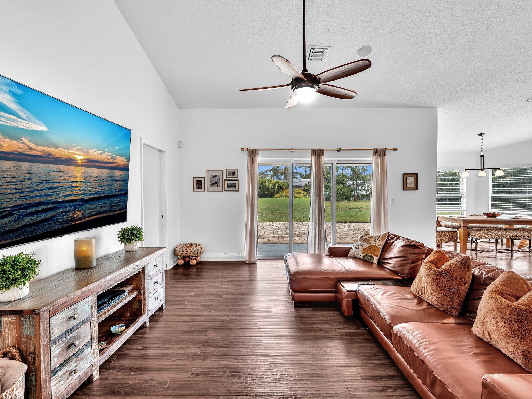 Welcome to this charming 3 bedroom, 2 bathroom single-family home in Jupiter Farms! Featuring a spacious living room filled with natural light, and updated kitchen with modern finishes, and a renovated master bathroom for your comfort. 2006 roof. Water heater 10 years old. Appliances 2022-2023. Enjoy the outdoors with a large private yard and many fruit trees. Perfect for entertaining or relaxing. The property also offers a 2 car garage and plenty of room to make it your own. Surround system and gas hookup. Don't miss this opportunity to live in the highly sought-after Jupiter Farms community! A-rated schools!