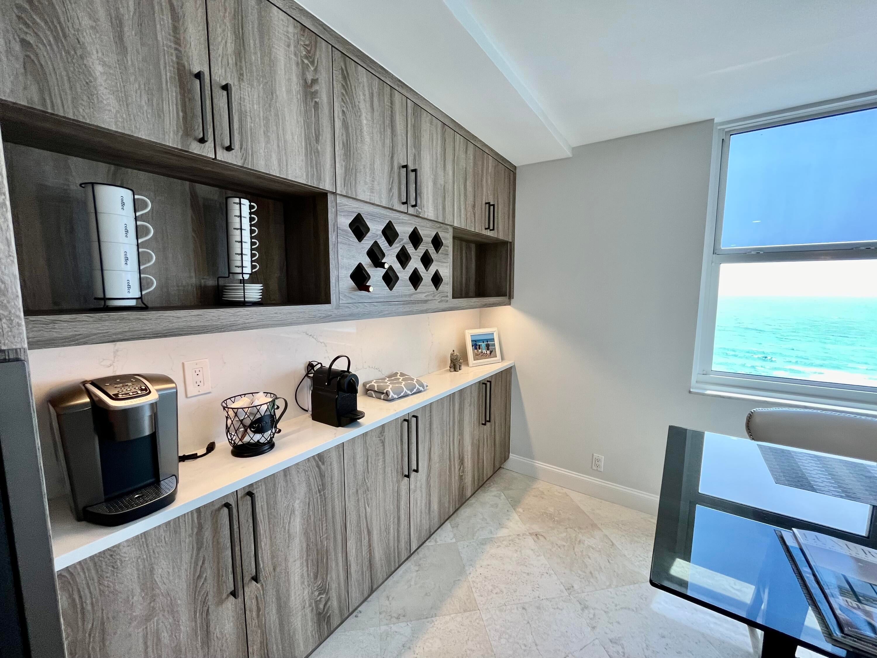 Southeast Corner Ocean Views! Upgraded kitchen and bathrooms, bedrooms both w King size beds and pull out sofa bed. Open kitchen, great for hosting guests and watching the ocean from the kitchen and living areas. Ocean views from all rooms. Covered parking space. Built in closets, washer/dryer in unit, pantry, keyless door lock and much more. Available for season! Aquarius has an updated fitness center, concierge, community room, pool by the ocean and billiards.