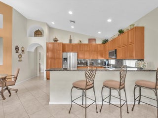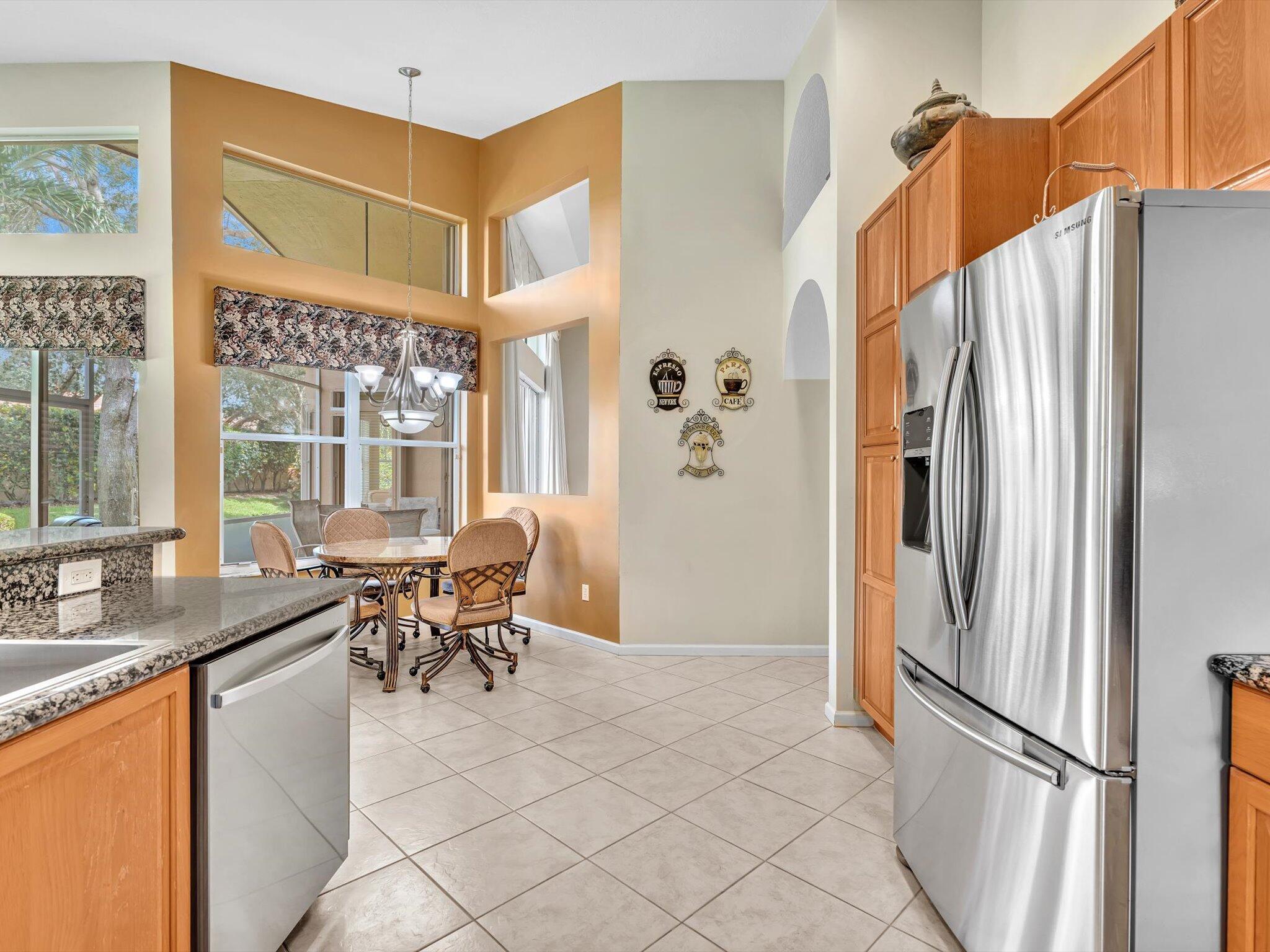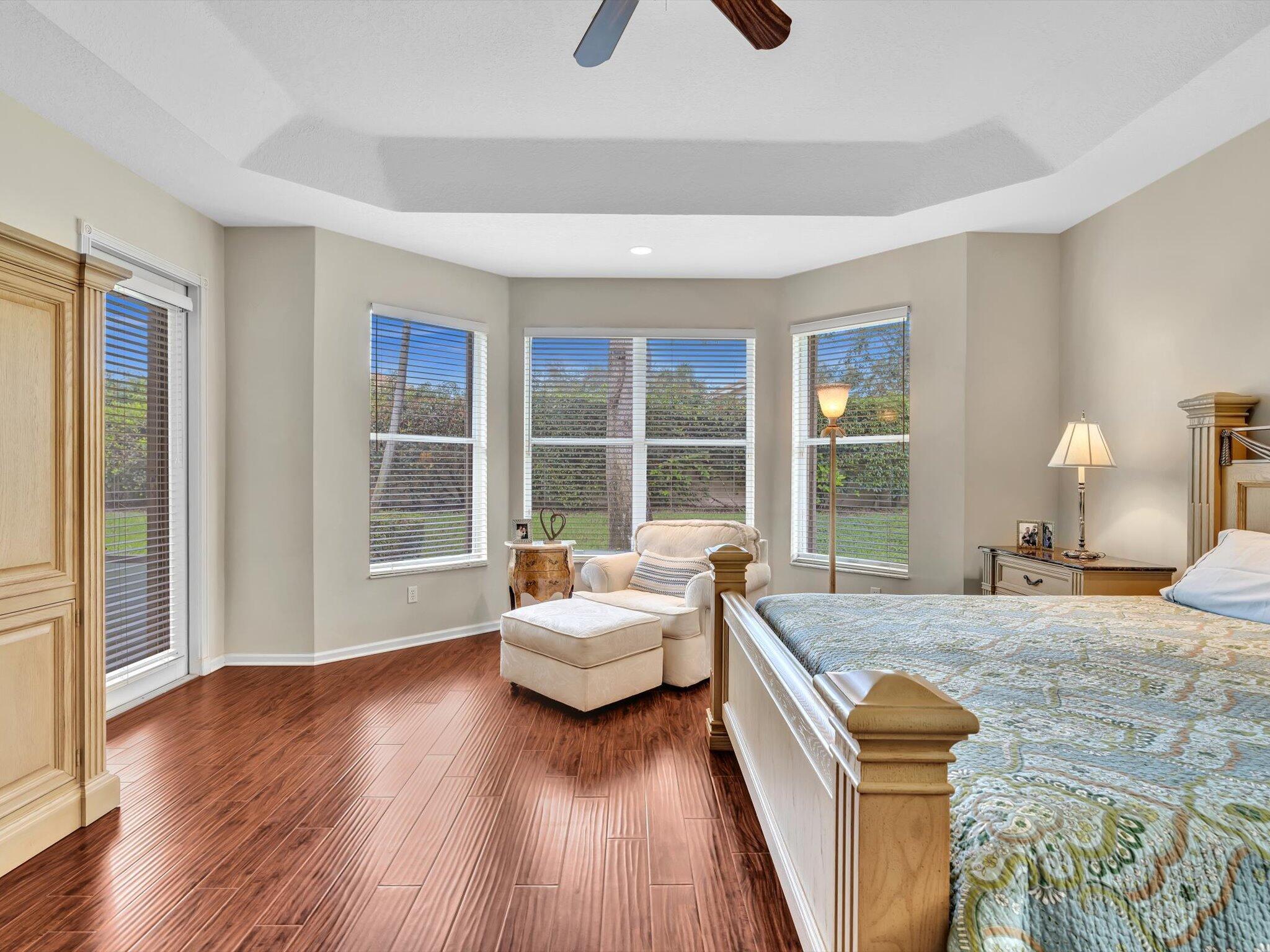 Situated on one of Valencia Lakes private, perimeter lots with no rear neighbors, the expansive ''Madrid'' model boasts a split floor plan and 2,629 sq ft of luxurious living with 4-bedrooms, 2-full baths & 1-half bath. A screened & covered Lanai facilitates outdoor living 12-months per year. The spacious primary suite features 2 walk-in closets and a bathroom with dual vanities, soaking tub and separate shower. Some of the many features include a chefs kitchen with wood cabinetry, granite countertops & backsplashes and an updated Samsung Stainless appliance package. Neutral ceramic tile (installed diagonally) in all main living areas with beautiful laminate-wood flooring in the primary suite & Den/Office/4th Bedroom. A.C. 2020, Water Heater 2021. Complete accordion storm protection!