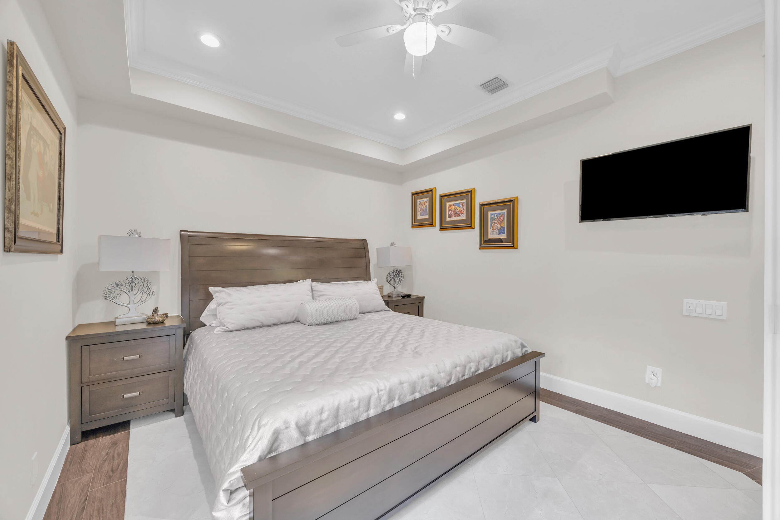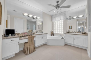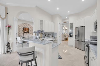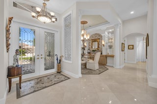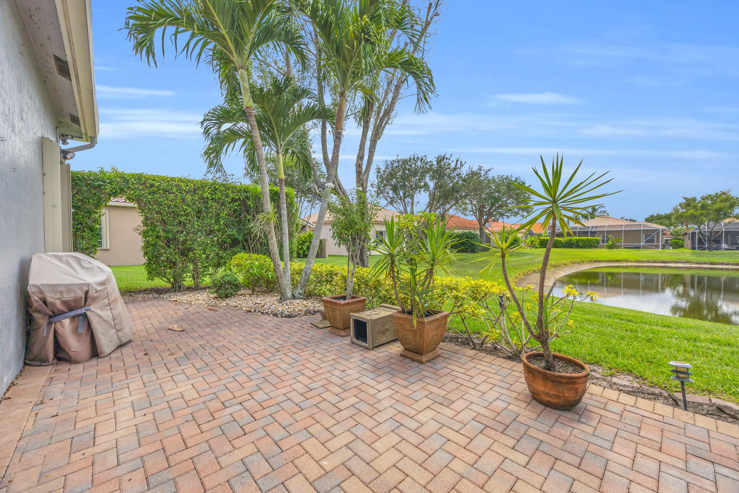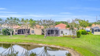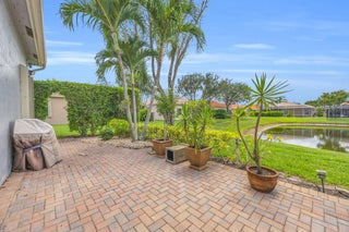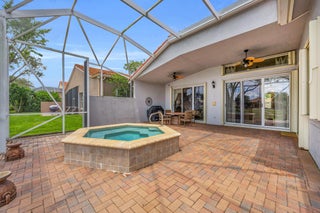 Nestled within the peaceful, gated community of Ponte Vecchio, this meticulously maintained builders model home exudes charm and warmth from the moment you arrive. The property boasts pristine curb appeal with manicured landscaping, a welcoming front entry, and a paver driveway that leads up to a spacious two-car garage. Step inside, you're greeted by an ''open-concept'' floor plan that seamlessly blends functionality with elegance. The home is naturally light and bright thanks to windows & sliding glass doors that offer stunning views of the private backyard. The formal living room and family room provide ample space for both relaxing and entertaining, while the kitchen--complete with modern appliances, quartzite countertops, and high top serve as the heart of the home. A cozybreakfast nook offers the perfect spot to start your day, while the adjoining formal dining area is perfect for meals & entertaining. The primary suite is a private retreat, featuring a spacious bedroom with tray ceilings, walk-in closets, and a luxurious en-suite bathroom equipped with dual vanities, a soaking tub, and a separate shower. A space dedicated to an office could be converted to additional closet space. Two additional well-sized bedrooms, ideal for guests or a home office, share a beautifully designed guest bathroom. Outside, the screened-in patio area offers an ideal setting for alfresco dining or simply enjoying the lush, serene low-maintenance backyard with pool/spa lake viewsperfect for relaxing & watching sunsets. Whether you're enjoying your morning coffee or unwinding after a long day, this outdoor space will quickly become one of your favorite spots. Ponte Vecchio offers a lifestyle of luxury and convenience. The clubhouse is the center of social activity, featuring a state-of-the-art fitness center, a resort-style swimming pool, and a variety of sports amenities such as tennis and pickleball courts. The clubhouse hosts social events, providing opportunities to meet neighbors & enjoy a vibrant, active lifestyle. This home is not just a place to live, but a place to thrive, offering the best in both comfort and community living. Whether you're looking to relax or stay active, Ponte Vecchio has something for everyone. Key Features/Benefits: Roof & Gutters 2023, AC 2020, Spa new diamond brite type surface, home exterior paint 2025, Kitchen Renovated 2018, Accordion Shutters, Updated Clubhouse & Sports Complex.