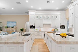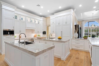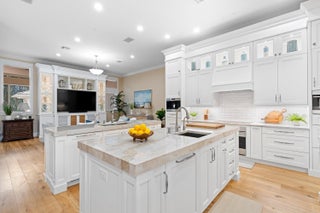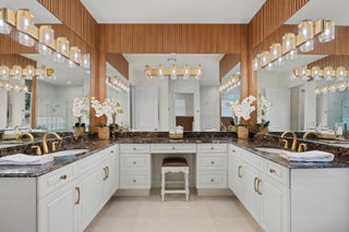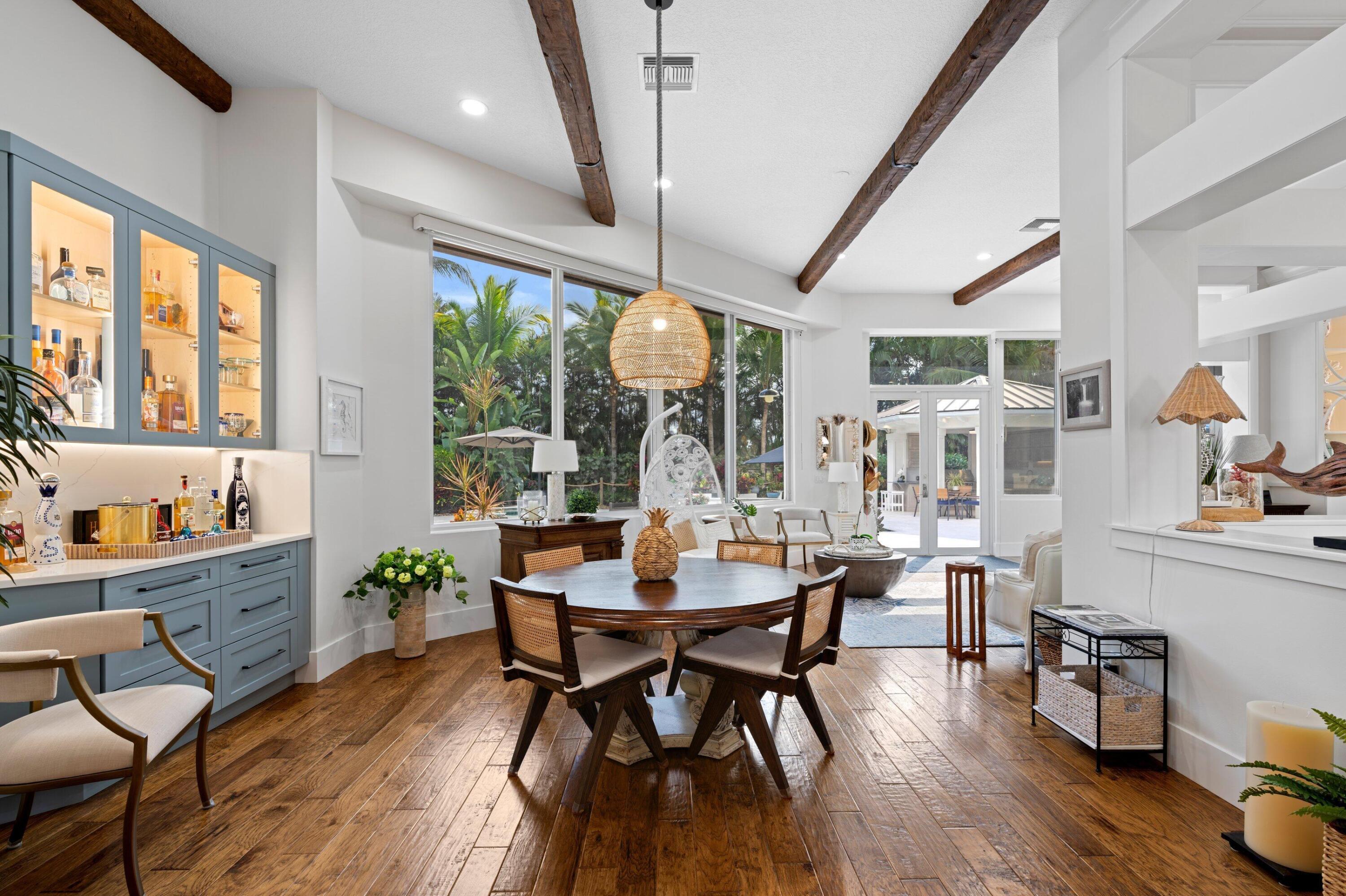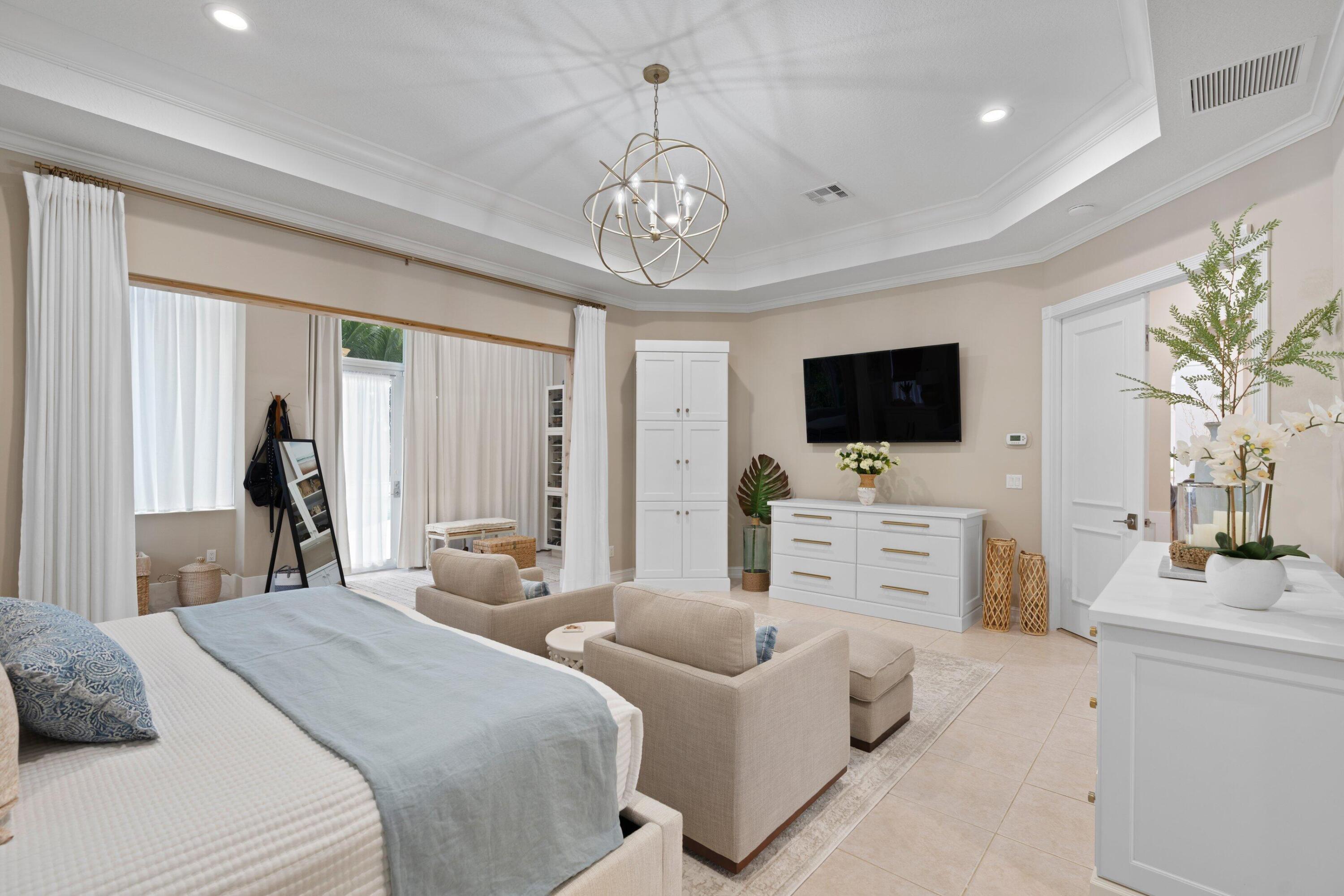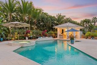 An exceptional custom estate in the prestigious 24/7 guard-gated community of Rio Poco, has 4,344 square feet of interior living space plus an 885 square foot three-car garage on a full acre. Designed for both luxury and family comfort, the home features 4 spacious bedrooms plus a dedicated office. The gourmet kitchen showcases custom cabinetry along with Wolf, Sub-Zero, and Cove appliances, complemented by Taj Mahal quartzite countertops to create a refined space for cooking and entertaining. Expansive living areas flow seamlessly across hardwood floors, highlighted by a built-in bar and a cozy gas fireplace that invite gatherings of family and friends. Outdoors, a resort-style heated saltwater pool and spa with sun shelf is surrounded by lush tropical landscaping.