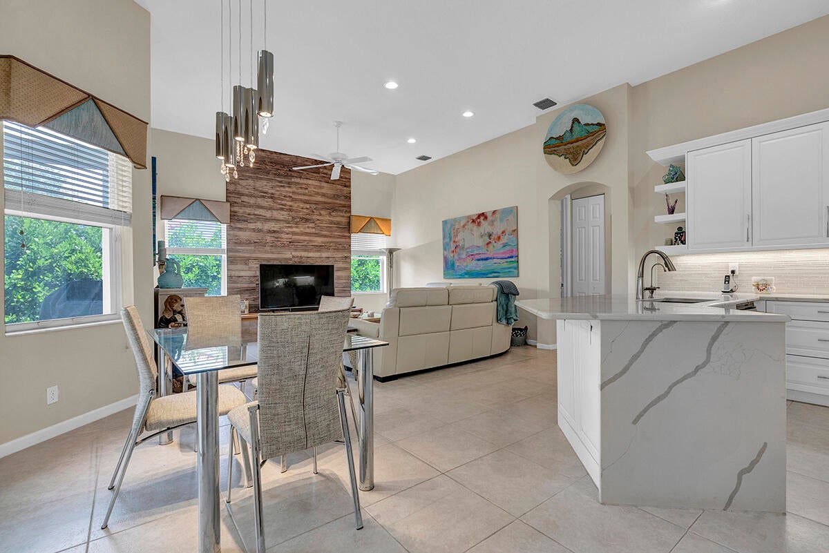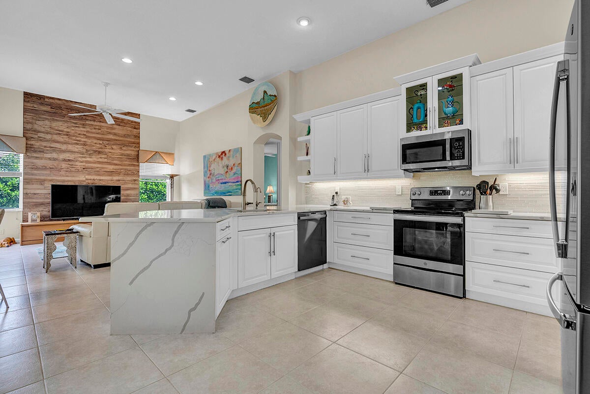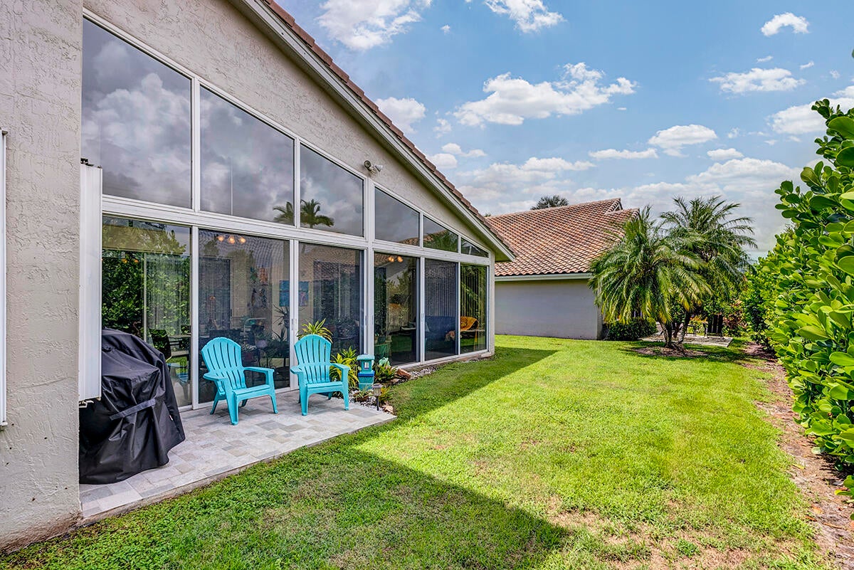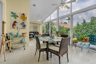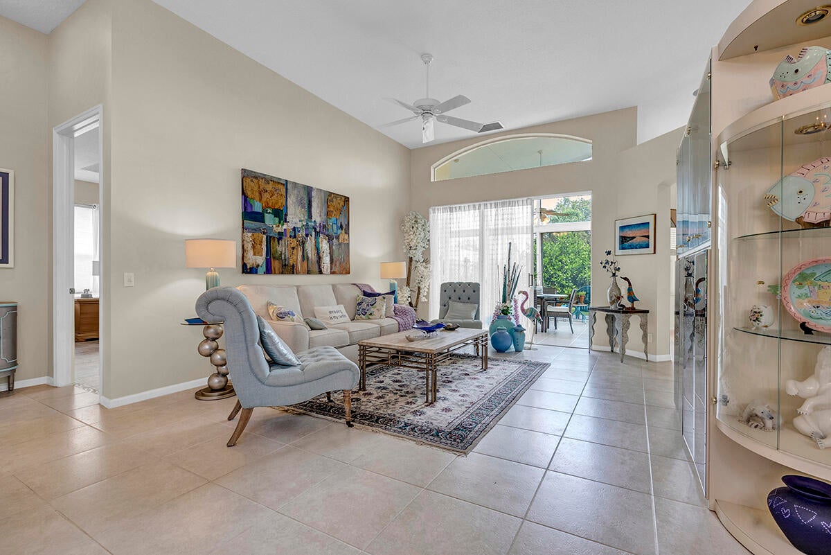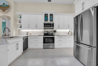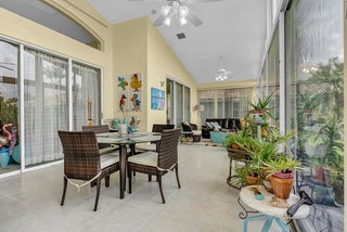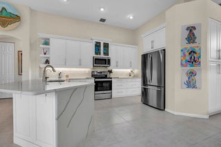 Welcome to this 3-bedroom, 2-bathroom home, where comfort meets style. Fully renovated bathrooms and a beautifully updated kitchen give this home a fresh, modern feel. The chef's kitchen boasts sleek new appliances, upgraded cabinetry with convenient pull-out shelves, and an open layout perfect for entertaining.Enjoy year-round comfort in the spacious lanai, now under air, ideal for relaxing or hosting guests. The high ceilings and strategically placed high hats create a bright, airy ambiance throughout the main living areas. A charming decorative wood wall in the family room adds warmth and character.The home features tile flooring in the main areas with carpet in the bedrooms. One of the three bedrooms is designed as a built-in office, perfect for remote work or a a quiet study. * Split floor plan for privacy and functionality * Partial hurricane protection for peace of mind * Two-car garage with built-in storage * Exterior newly painted, offering great curb appeal * Original roof, well-maintained Don't miss this move-in-ready gem combining thoughtful renovations, quality finishes, and functional design in every detail!
