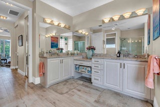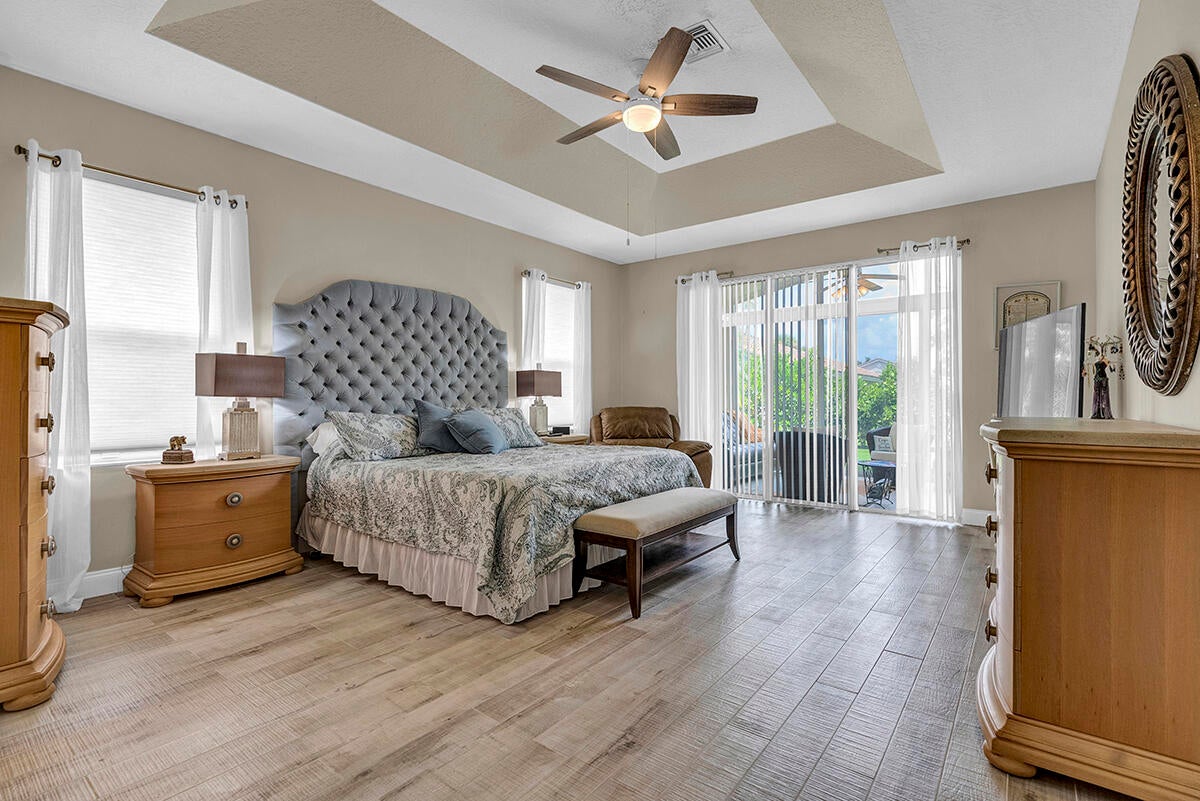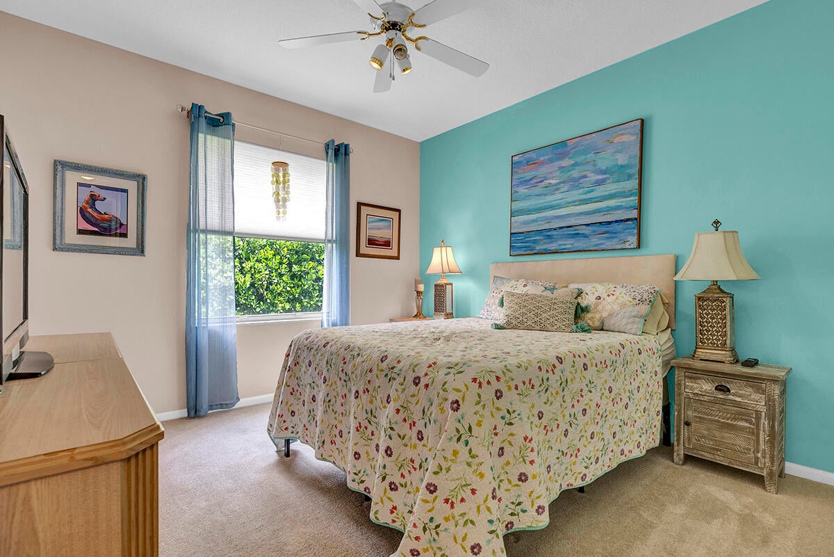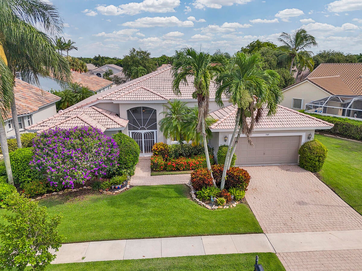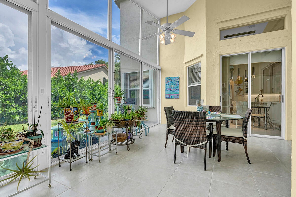 Welcome to this 3-bedroom, 2-bathroom home, where comfort meets style. Fully renovated bathrooms and a beautifully updated kitchen give this home a fresh, modern feel. The chef's kitchen boasts sleek new appliances, upgraded cabinetry with convenient pull-out shelves, and an open layout perfect for entertaining.Enjoy year-round comfort in the spacious lanai, now under air, ideal for relaxing or hosting guests. The high ceilings and strategically placed high hats create a bright, airy ambiance throughout the main living areas. A charming decorative wood wall in the family room adds warmth and character.The home features tile flooring in the main areas with carpet in the bedrooms. One of the three bedrooms is designed as a built-in office, perfect for remote work or a a quiet study. * Split floor plan for privacy and functionality * Partial hurricane protection for peace of mind * Two-car garage with built-in storage * Exterior newly painted, offering great curb appeal * Original roof, well-maintained Don't miss this move-in-ready gem combining thoughtful renovations, quality finishes, and functional design in every detail!