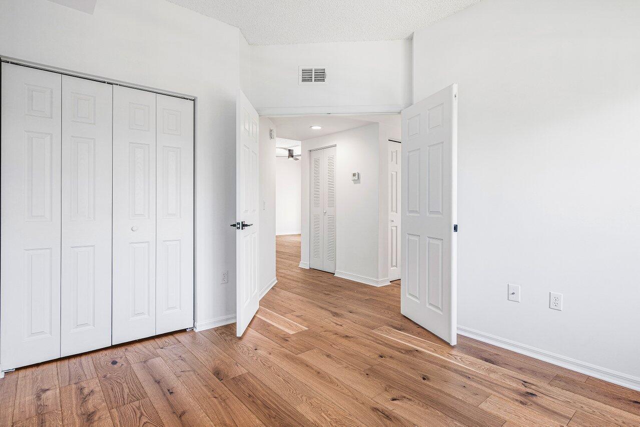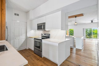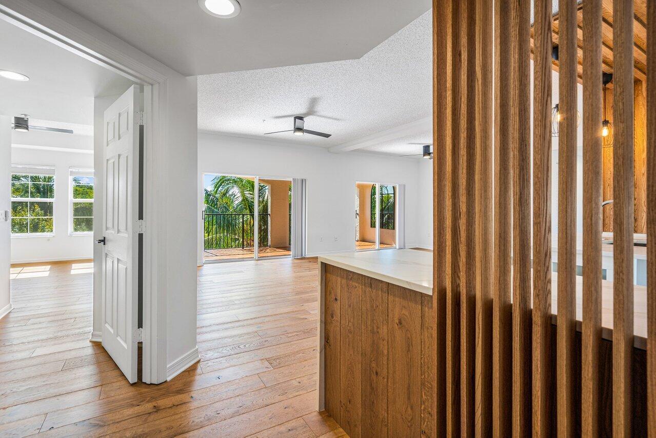 Sophisticated corner penthouse residence with walls of windows and timeless oak floors throughout. The reimagined open layout highlights a chef's kitchen with Stainless Steel Whirlpool Appliances, extended Golden Calcutta Quartz counters and custom cabinetry. Enjoy the convenience of an in-unit washer/dryer and relax on the expansive tiled patio with serene preserve views and accordion shutters. Thoughtfully curated design and refined finishes elevate this beautifully remodeled home.Amenities include clubhouse, pool, fitness, tennis, pickleball, library, picnic area, on-site manager. Plus Car Wash area by Bldg 4. Parking spaces: 620 (covered) & 878. Leasing ok, 2x/year, 3 month min. 2 pets allowed. AC 2018.
