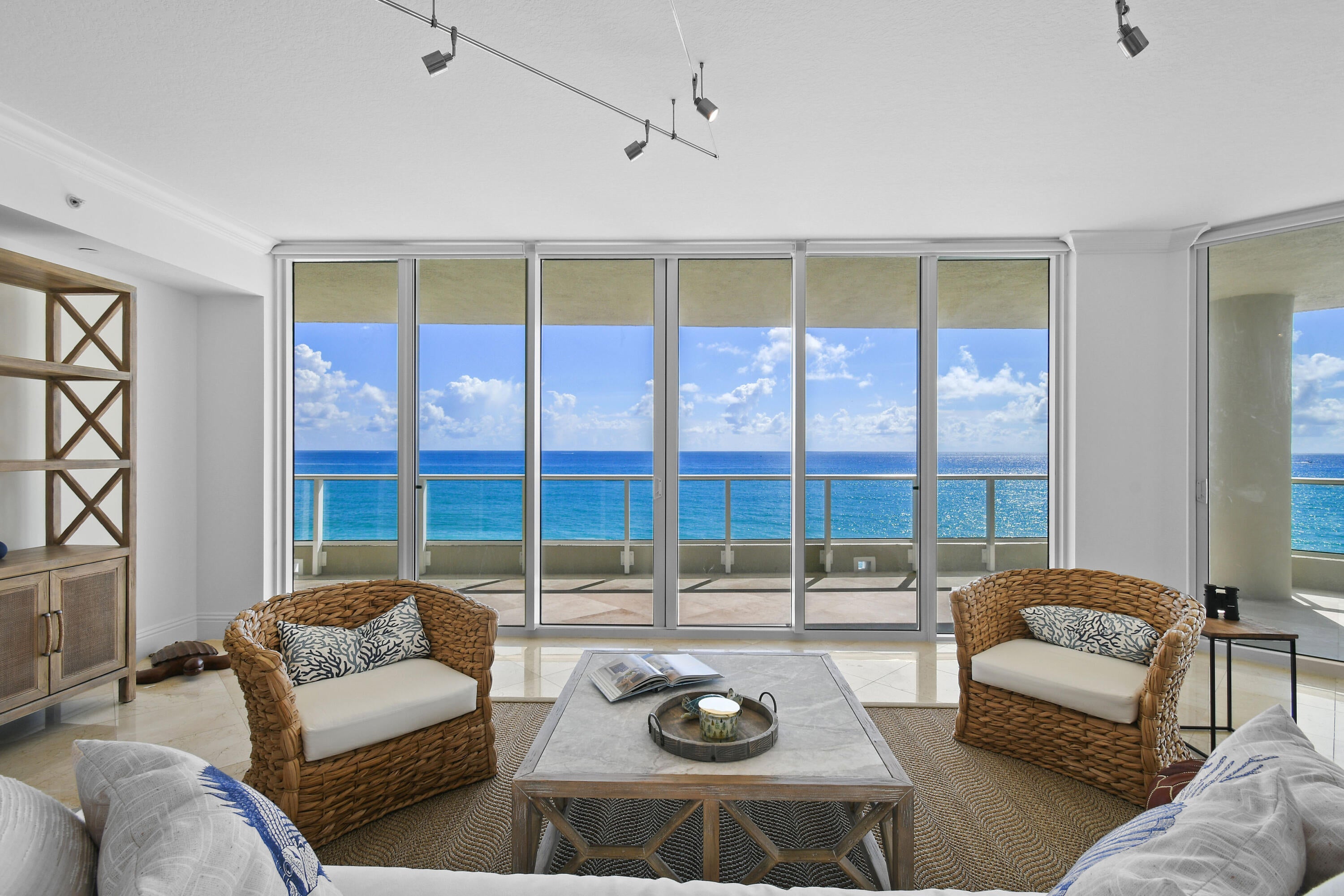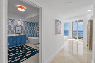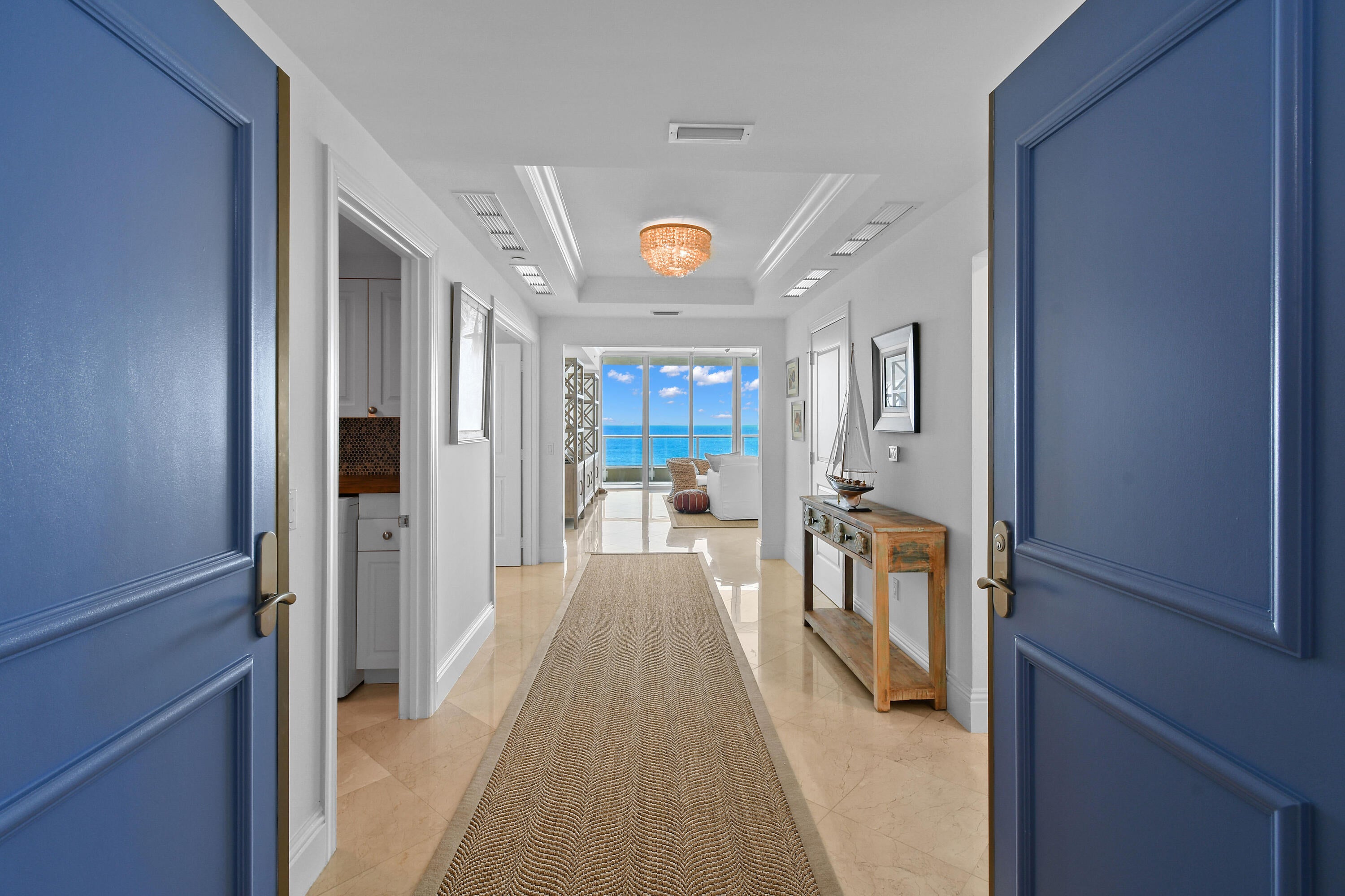 Introducing 5050 N Ocean Dr, Unit 402, an exquisite oceanfront residence that blends modern luxury with the tranquility of beachfront living. This elegant 3-bedroom, 3.5-bathroom condo is nestled in a boutique building and offers an unparalleled coastal lifestyle. As you step into this spacious home, you're greeted by an abundance of natural light pouring in through floor-to-ceiling windows that frame unobstructed ocean views. The expansive living and dining areas flow seamlessly onto a large, private balcony, where you can enjoy breathtaking sunrises and the soothing sounds of the waves.The master suite is a true sanctuary, boasting direct balcony access, generous space, and a luxurious spa-like bathroom. Indulge in the oversized soaking tub, enjoy the glass-enclosed walk-in shower, and take advantage of dual vanities with premium finishes. The walk-in closet offers ample storage, making this suite both beautiful and functional. Both guest bedrooms are designed with comfort and privacy in mind, each featuring its own en suite bathroom. These suites are ideal for hosting family and friends in style. The chef's kitchen is a masterpiece, complete with top-of-the-line Wolf gas stove, Sub-Zero refrigerator, and custom cabinetry. The oversized island is perfect for casual dining or entertaining, and the open layout allows you to cook while enjoying stunning ocean views. The boutique building is designed for those seeking exclusivity and convenience. A gated entry and doorman ensure privacy and security, while an elevator opens directly into your apartment for the ultimate in convenience. Enjoy the array of resort-style amenities, including a state-of-the-art fitness center, dog park, sparkling pool, and hot tub - all with the Atlantic Ocean as your backdrop. This rare offering at 5050 N Ocean Dr is more than just a home; it's a lifestyle. Experience the luxury of oceanfront living with all the modern comforts you could desire. Additional Information: Digital thermostats with remote capabilities Sun shear blinds with remote capabilities in living areas/master Digital door lock with remote capabilities Digital thermostat with remote capabilities Full size LG washer and dryer Miel dual ovens Miele espresso coffee machine Wolf microwave Wolf stovetop Sub Zero refrigerator Sub Zero wine cooler Asko dishwasher Master bed is a king adjustable bed Storage locker measuring approximately 8 ft tall by 5 feet long and 5 feet wide in air-conditioned storage room on executive parking level is attached to the real estate Offered fully furnished