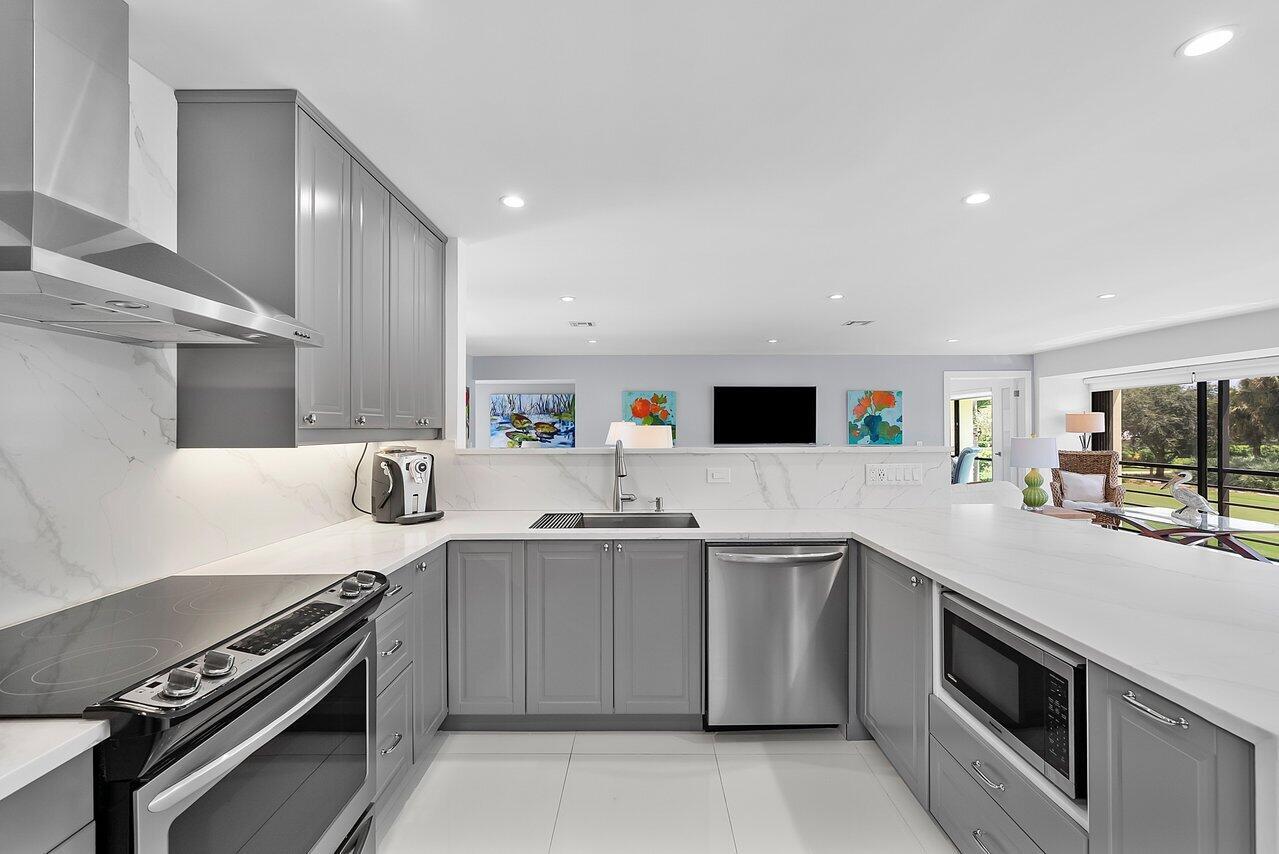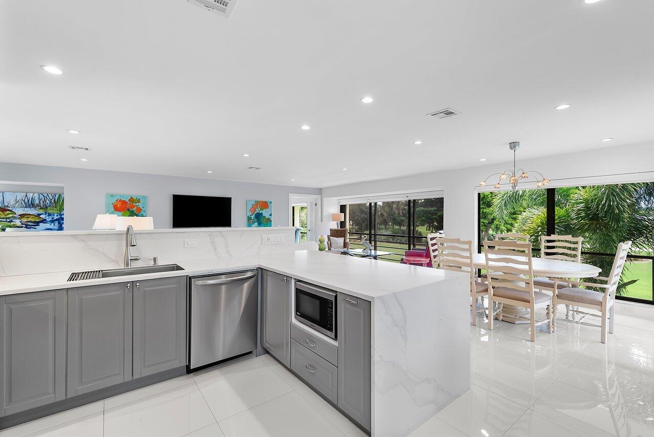 Welcome to this beautifully updated second-floor residence featuring breathtaking views of 3 golf holes & serene lake views. This bright & airy home boasts gorgeous tile flooring throughout, enhancing the abundance of natural light that flows through the space.The open-concept kitchen has been thoughtfully updated, creating the perfect setting for cooking & entertaining. Custom built-ins in the dining area, including a wine cooler, provide both functionality and a touch of elegance.Relax and unwind in this meticulously maintained home, where every detail has been designed for comfort and style. Don't miss this opportunity to live in a home that combines luxurious finishes with picturesque views. Enjoy the Quail Ridge lifestyle with golf, tennis, pickleball & clubhouse. Offered furnished!
