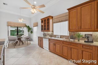 AGGRESSIVELY PRICED for today's market, this home offers privacy and a SNEAK PEEK of the lake-without the cost of a full lakefront! Enjoy alfresco dining on the extended paver patio, surrounded by total privacy, with plenty of room to build your own pool.This pristine Grigio model showcases diagonal tile throughout and wood-look porcelain planks in the primary suite. High ceilings flood the home with natural light and are beautifully accented by large crown molding. The oversized breakfast room-perfect for morning coffee-offers the best lake view from the home.The gourmet kitchen features top-of-the-line wood cabinetry with crown molding, under-cabinet lighting, granite countertops with a full backsplash, pull-outs, and elegant glass display cabinets. The spacious primary suite includes a bay window sitting area with a coffered ceiling and crown accents, two walk-in closets, and a luxurious bath with split vanities and a Roman tub. All closets feature mirrored doors, enhancing the sense of openness throughout. Other notable features include accordion shutters, a NEW 2024 A/C system with UV light, 2014 W/H and more! Tivoli Lakes offers a beautifully renovated, state-of-the-art clubhouse featuring a grand social hall, arts and crafts studio with ceramics kiln, card rooms, billiards, a resort-style pool and hot tub, children's water play area, bocce, pickleball, and stadium-style tennis courts. The community is known for its vibrant tennis and pickleball programs and also includes a fitness center with top-line equipment, aerobics room, and sauna. The HOA covers exterior house painting, roof cleaning, pressure washing, full landscaping and irrigation, cable, internet, 24-hour manned gate, and access to all resort-style amenities. Conveniently located near the Turnpike, houses of worship, beaches, and fantastic shopping-including Canyon Town Center and Cobblestone Commons.