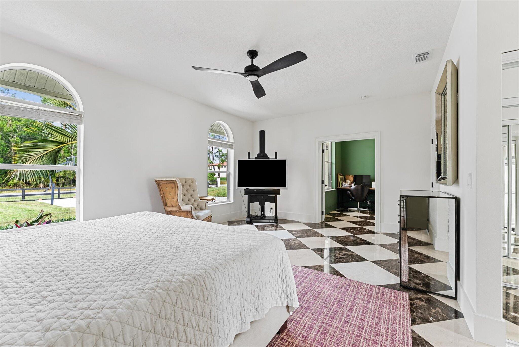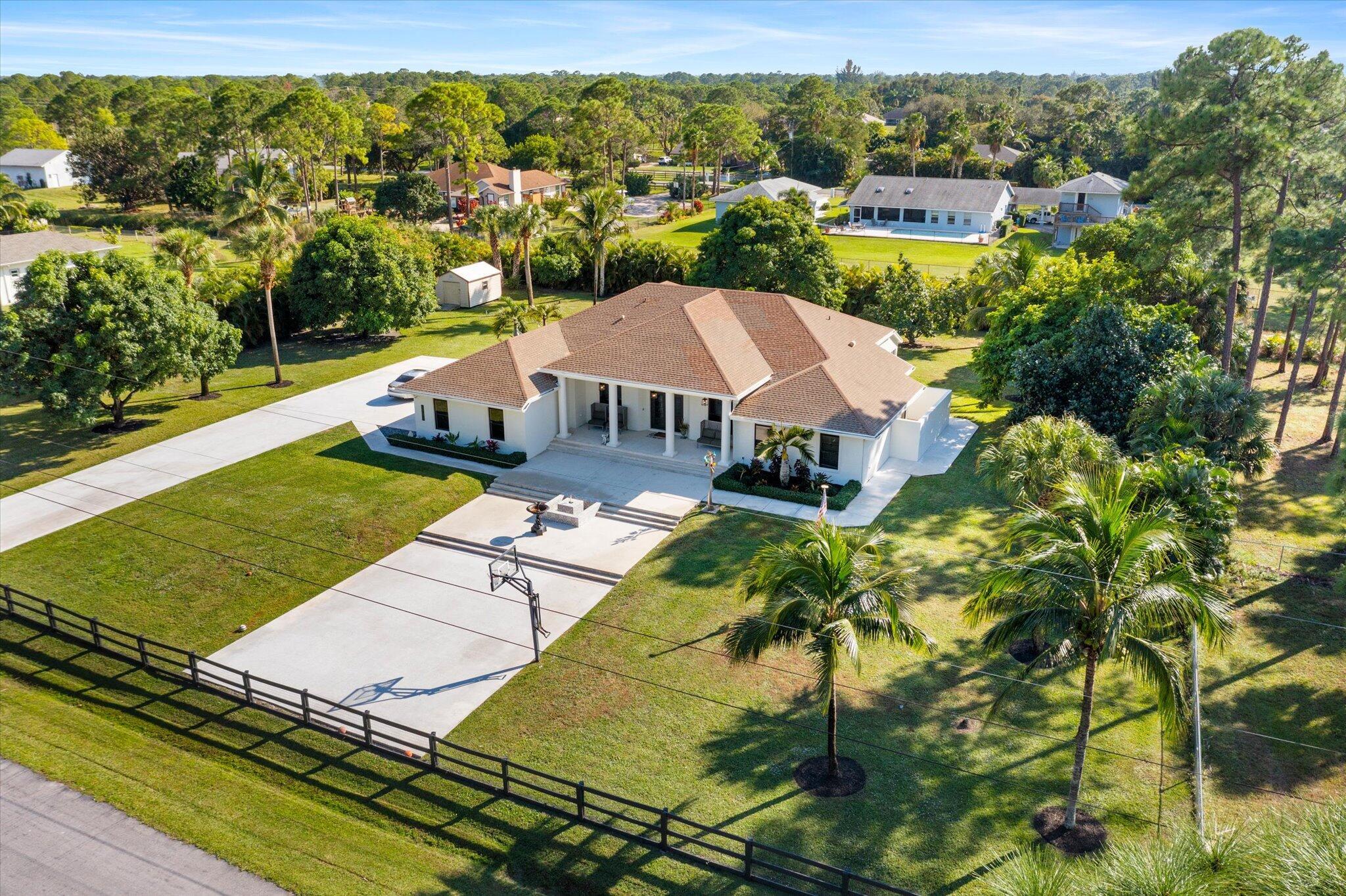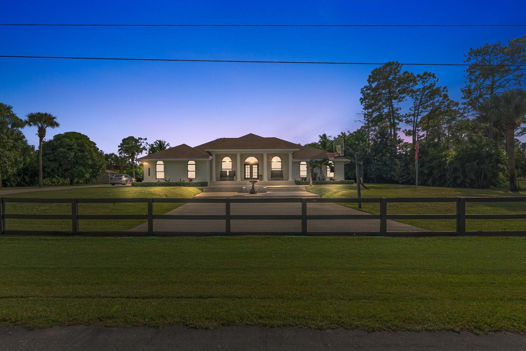 Perfectly Located on the North end of The Acreage on a paved road, fully fenced with gated entry, right off of Northlake Blvd, this exquisite 1.4 Acre estate offers the perfect blend of privacy, space, and luxury. This Freshly painted, stunning residence boasts Beautiful Marble floors, Vaulted Ceilings, 4 spacious bedrooms, an office/den, indoor laundry room, a 3 Car Garage with separate side loader, encompassed in an abundance of comfortable living space. A wealth of natural light highlights this thoughtfully designed Split Floor Plan seamlessly flowing into the spacious Open Floor Plan of the living and dining areas, offering a separated bonus room right off of the Master Bedroom creates a warm, yet sophisticated ambiance throughout.The oversized, covered screened in Patio overlooking the lush, landscaped grounds with their own Coconut, Mango, Jackfruit, Guanabanas, Ackee and Avocado Trees provides an entertainer's paradise. Equipped with a Basketball Court in the Front yard, the Outdoors offers a private oasis with an expansive yard for endless possibilities, whether you envision a tranquil retreat or an entertainer's paradise! With proximity to world-class golf at Sandhill Crane Golf Club, shopping at The Gardens Mall, and dining along the Jupiter inlet, this private property combines country living and all the perks of a coastal luxury lifestyle. Don't miss this rare opportunity to own a piece of paradise in one of Palm Beach County's most coveted locations, with just a short 30 minute drive to PBI, the beautiful beaches of Singer Island and the desirable towns of Jupiter and Palm Beach Gardens.