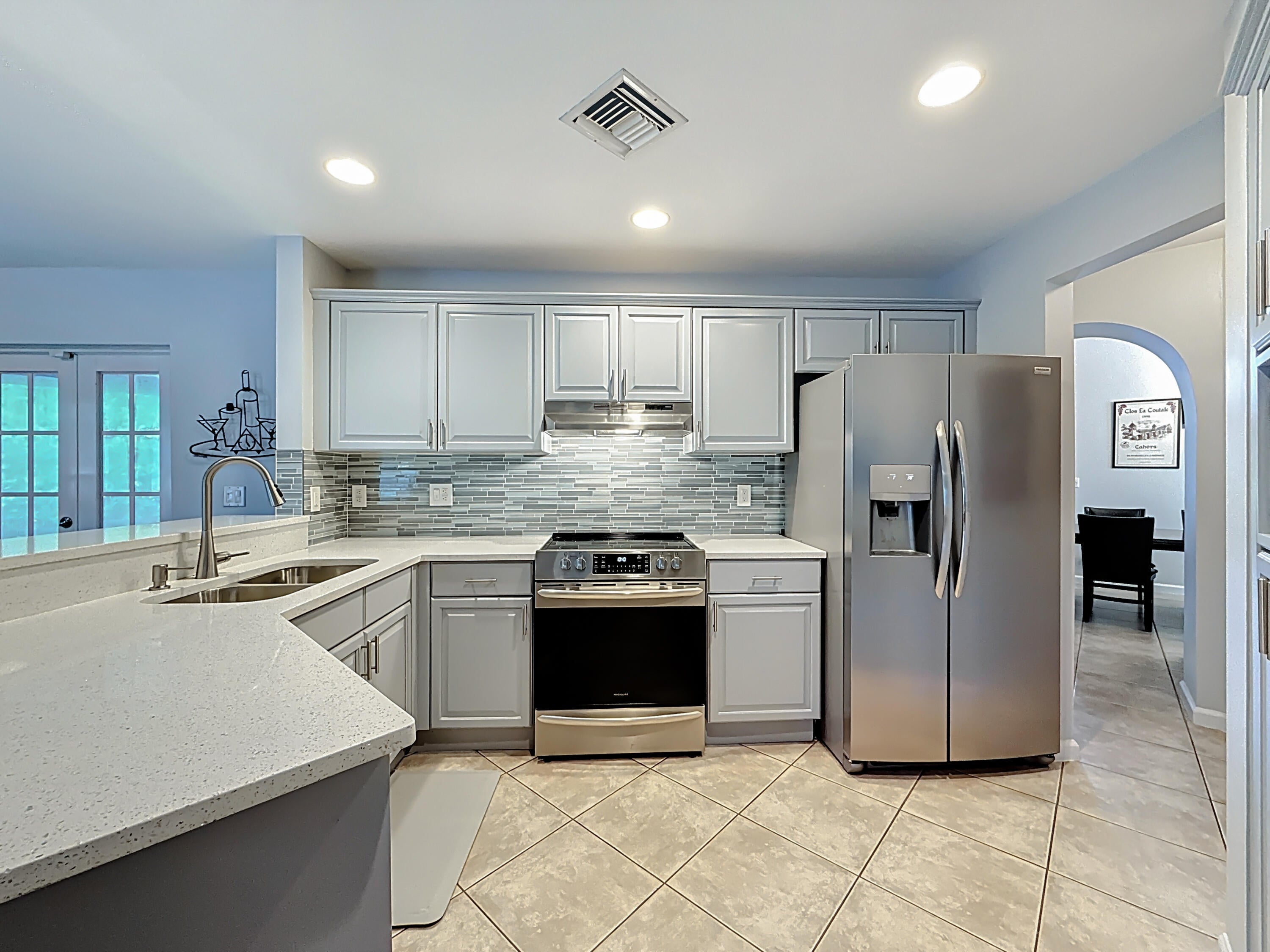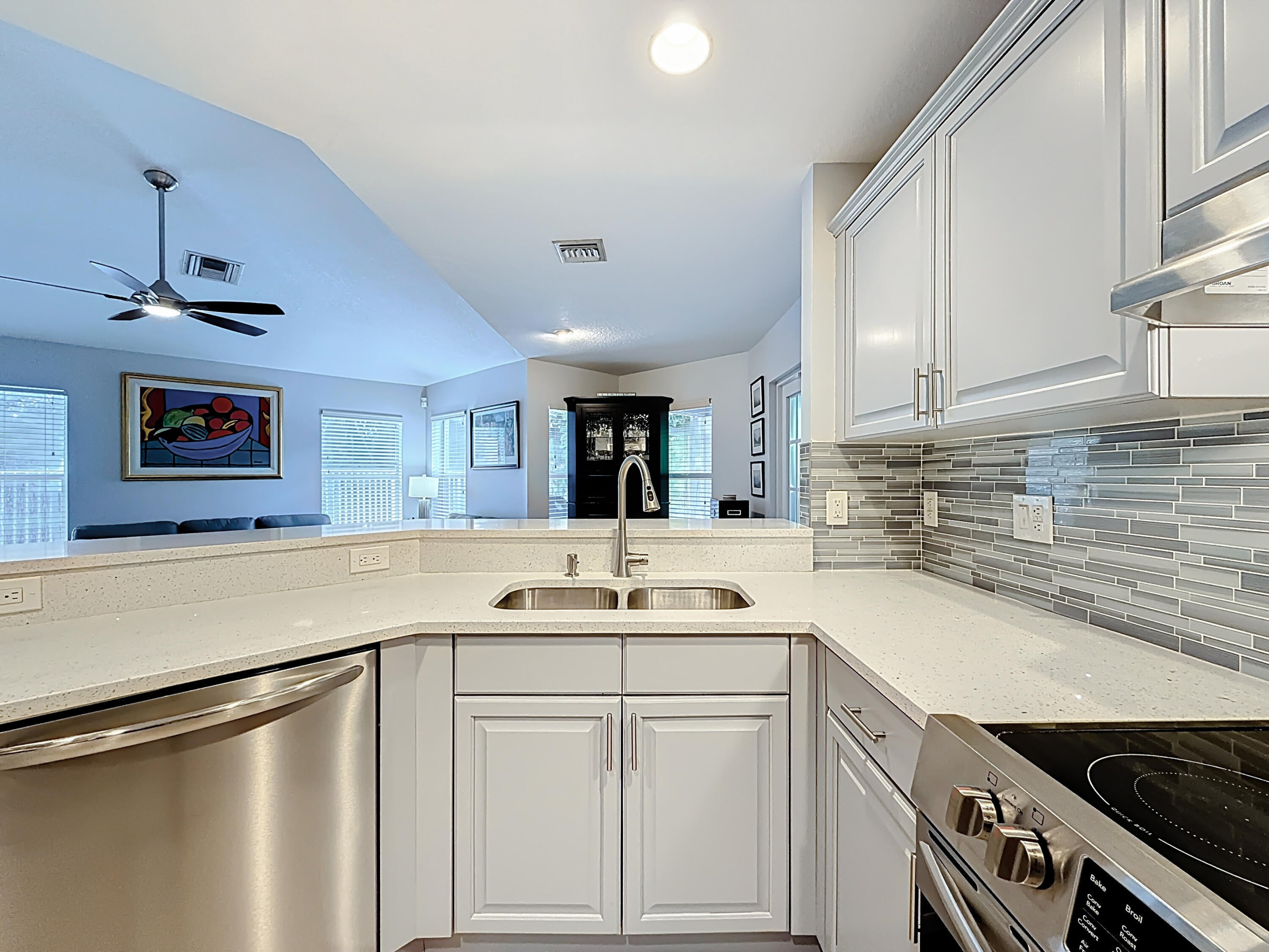 Rarely available remodeled three bedroom two and one half bath pool home in the exclusive gated community of Lawrence Lake Estates. New roof 2024. New pool heater 2024. New A/C 2023. New kitchen and baths 2024. New tankless water heater 2022. All measurements are approximate. All information must be verified by buyer or buyers agent.
