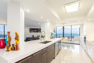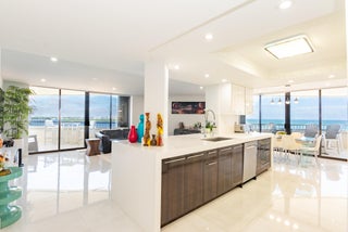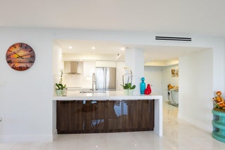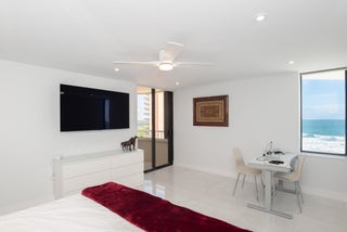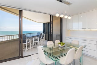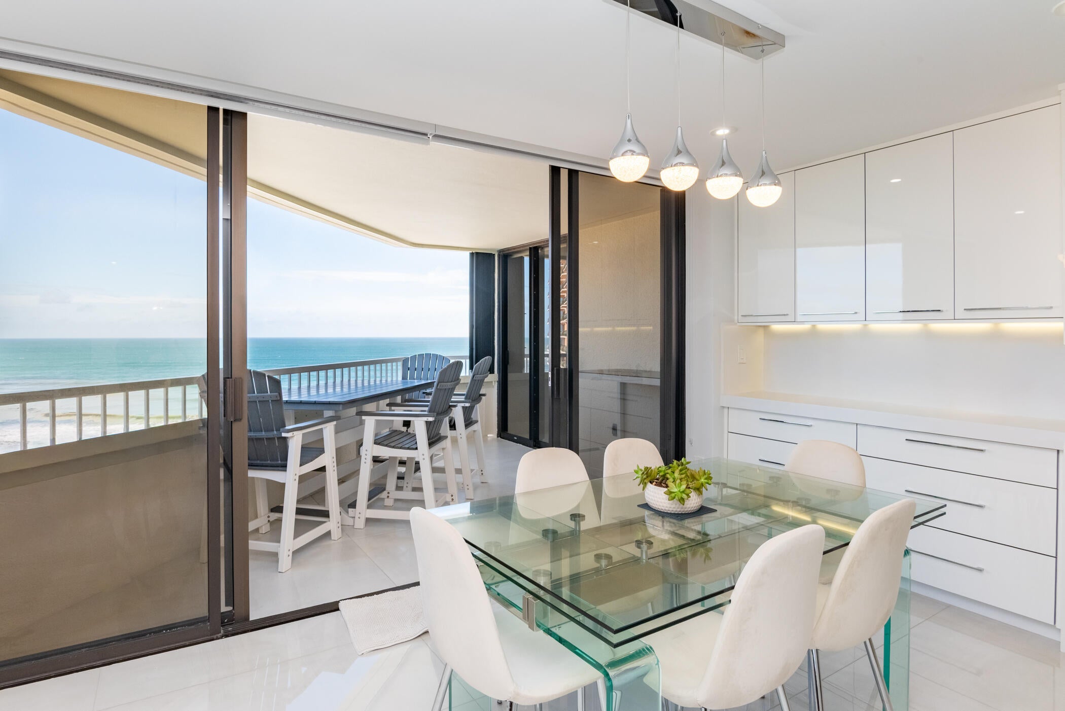 Stunning ocean Views and intracoastal views from this corner unit at Seawinds. Recently remodeled throughout with large white porcelain tile, new kitchen and baths, and gorgeous, comfortable furniture. The top of the line in every way possible. The entire condo is redone, modern in design and exquisite. Washer and Dryer in ensuite laundry, garage parking under the building, in house manager, elec car chargers. The building has just completed the SIRS and milestone inspections, so it is in top condition. Fourteen acres to use for walks, beach days and exercise. Enjoy walking the boardwalk along the seawall cap which is 900 feet long. Enjoyable parties and events held throughout the season.