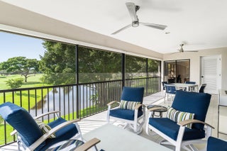 Contemporary penthouse in Eastgate at Hunters Run Country Club with unparalleled golf & water views. Fully remodeled in 2020, this residence features an open concept layout with vaulted ceiling, skylights, large-format porcelain tile flooring, designer LED lighting, custom eat-in kitchen with quartz countertops, custom flat-panel cabinetry, Bosch induction range, and GE appliances. Spa-like baths boast sleek vanities, luxury fixtures, and walk-in showers. The large primary suite offers custom closets, outdoor access and in-unit laundry. An expansive screened balcony showcases one of the best views in Hunters Run. Roof replaced in 2024, AC 2020, shared elevator replaced in 2021. Unit includes rights for designated golf cart parking. Make this your home at Hunters Run today!