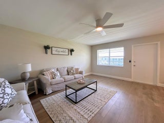 BEAUTIFUL REMODEL IN POPULAR 55+ COMMUNITY OF STERLING VILLAGE. A RARE 2 BEDROOM/1.5 BATH END UNIT ON 2ND FLOOR. PLANK STYLE LUXURY VINYL FLOORING IN ALL ROOMS. KITCHEN HAS NEWER STAINLESS-STEEL APPLIANCES, DEEP SINK W/ PULL OUT POT FAUCET, WHITE SHAKER CABINETS, WHITE SUBWAY TILE & QUARTZ COUNTERS. BATH HAS TALL VANITY/TOILET AND SUBWAY TILE TO THE CEILING. 5 MATCHING CEILING FANS & WIDE BLINDS ARE IN ALL ROOMS. STYLISH PICTURES & FURNITURE INCLUDE A QUEEN SLEEPER SOFA. NEW AC & UPGRADED ELECTRIC BOX ADDED FOR SAFETY. NEW THIS YEAR & INCLUDED IN HOA DUES ARE INTERNET IN ALL CONDOS, CAR WASH AREA, GATED & FENCED PERIMETER, PICKEBALL & FITNESS CENTER IN RENOVATED CLUBHOUSE. VILLAGE IS WALKING DISTANCE TO BOYNTON MARINA W/ WATERFRONT RESTAURANTS, BOAT CHARTERS & TIKI TAXI FOR (Pg 2 More)HAPPY HOUR! A BLOCK FROM DRAWBRIDGE THAT LEADS TO OCEANFRONT PARK DIRECTLY ON THE ATLANTIC. JUST MINUTES TO AIRPORTS, HOSPITALS, ALL SHOPPING, AND NUMEROUS RESTAURANTS AND ENTERTAINMENT. STERLING VILLAGE BOASTS OF A 1/2 MI PROMENADE DIRECTLY ON THE INTRACOASTAL, A GREAT PLACE TO SIT ON A BENCH TO BOAT WATCH, FISH (NO FL LICENSE REQUIRED FOR OWNERS) OR TO WALK FOR DAILY EXERCISE. THIS IS A SNOWBIRD HAVEN IN THE WINTER W/ ENDLESS CLUBS & ACTIVITIES. GRAB THIS GREAT CONDO & BEGIN LIVING YOUR FLORIDA DREAM NOW!