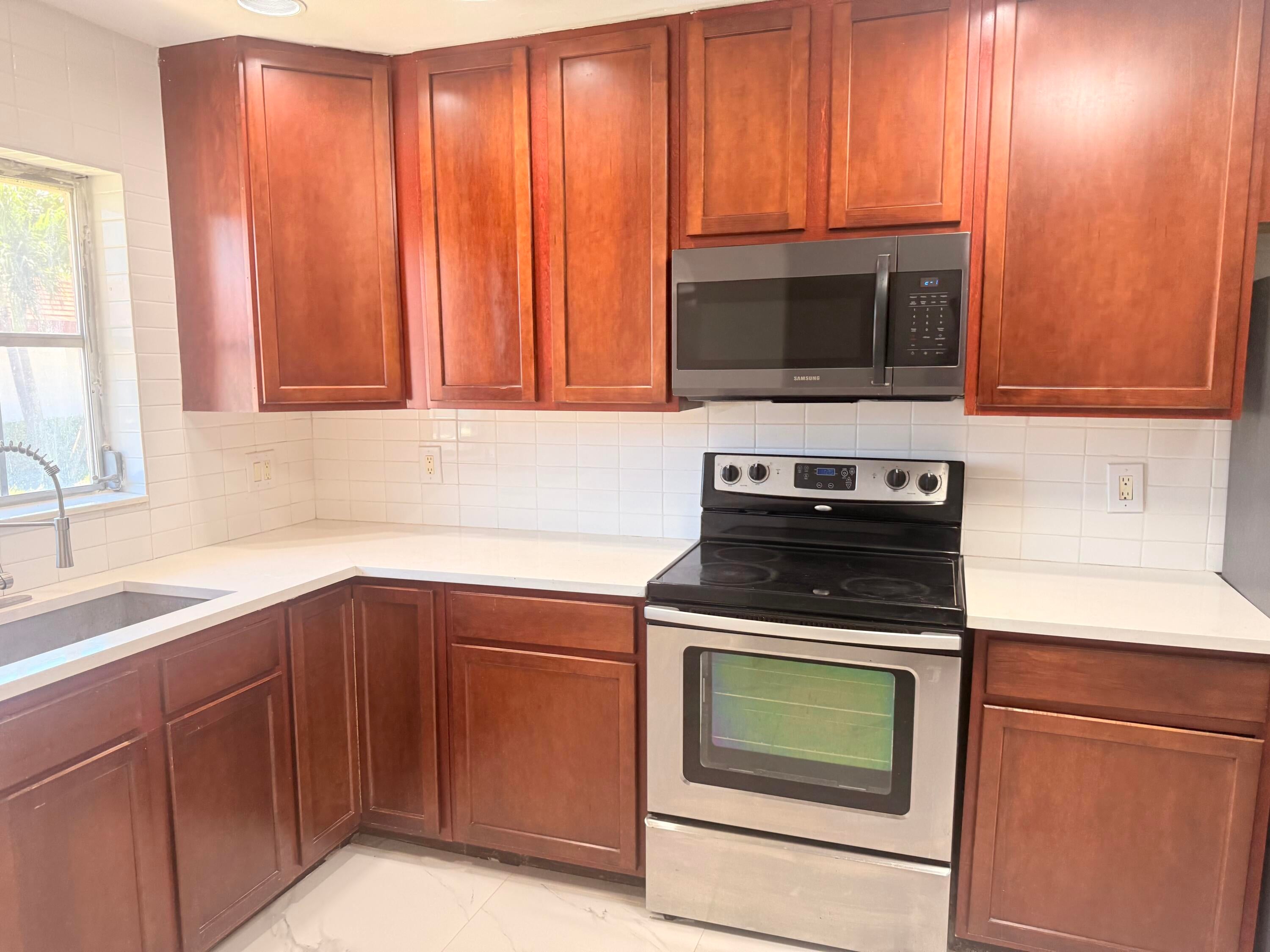 ✨ Beautifully Renovated Villa in the Heart of Boynton Beach ✨This spacious 3-bedroom, 2-bathroom villa offers over 1,500 square feet of modern living with a very low HOA fee.🛋 Interior FeaturesFully renovated in 2025 with bright white tile flooring and modern LED lightingOpen-concept kitchen with quartz countertops and stainless steel appliancesTwo beautifully remodeled bathrooms with frameless shower glass doors, upgraded vanities, and new light fixturesIn-unit washer and dryer🌿 Outdoor & Community FeaturesPrivate fenced backyard with a charming garden viewTwo assigned parking spacesHOA includes lawn maintenance, community pool, street lights, and clubhouse