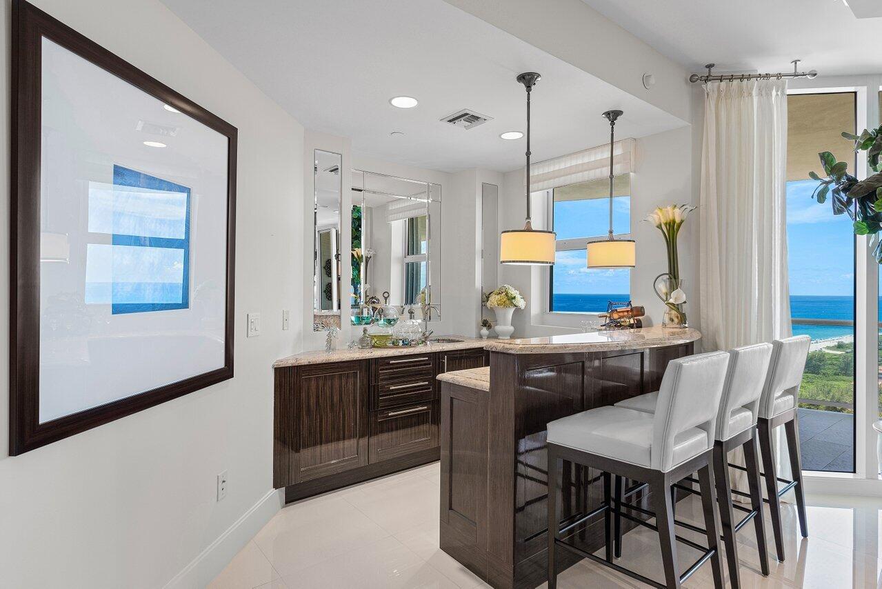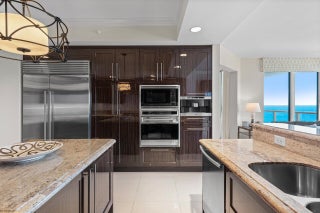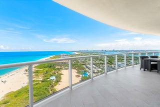RARELY AVAILABLE high-floor residence professionally designed and furnished by Interiors by Steven G. Enjoy this luxurious fully furnished turn-key home directly on the sand that boasts a private elevator entrance with three bedrooms plus den and three full baths along with an exquisitely designed powder bath. The flow-through design on the 22nd floor has expansive views of the Atlantic Ocean, Palm Beach and the Intracoastal Waterway. Boasting 3,950 square feet of interior living space, in addition to an oversized balcony retreat facing the Atlantic Ocean as well as a second balcony with views of the Intracoastal Waterway. Close to Fine Dining, Shopping and Palm Beach International Airport, Amenities include a Private on-Site Restaurant, Valet Parking, 24-Hour ConciergeSocial Room with Catering Kitchen and Billiard Table, State-of-the-Art Fitness Center, Cinema-style Private Screening Room, Boardroom/Business Center, Library, Natural Gas and Diesel Generators. Premier Amenities including a private 2-car garage and an air-conditioned storage unit are also available for separate purchase.