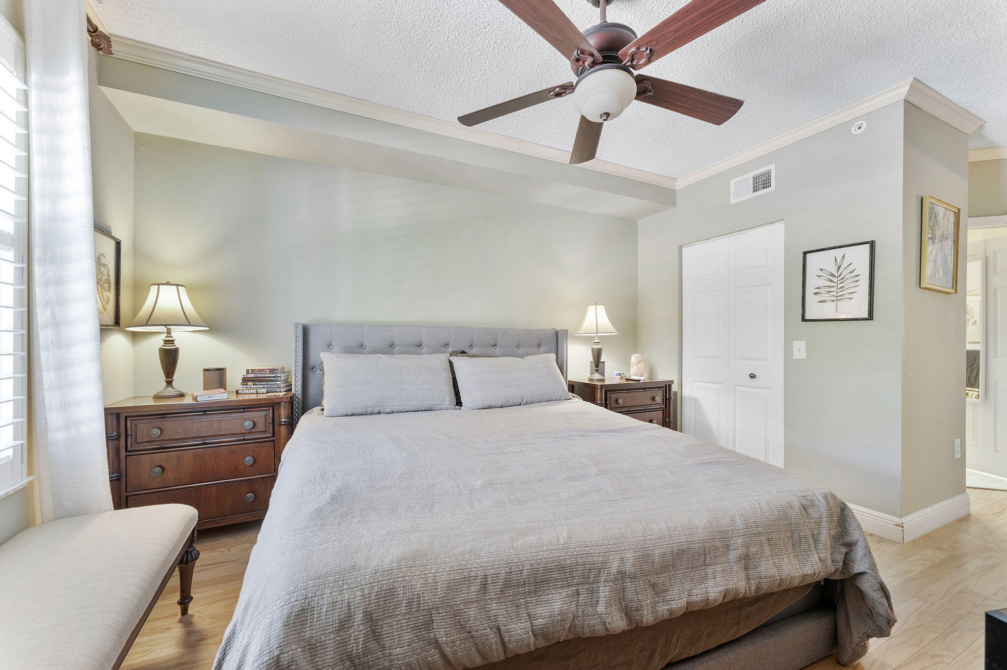 :This immaculate, furnished & turn key 3 bedroom with a GARAGE is the ultimate escape in gated resort style living. Minutes from Atlantic Avenue. This condo is close to the clubhouse and pool, it has every item you'll need to enjoy all the comforts of home. Pristine wood floors, wood plantation shutters in every room, tastefully furnished. Kitchen features white shaker cabinets, granite counter tops and SS appliances. Master is en suite with walk in shower and frameless glass entry, dual sinks, walk in closet. Crown molding in the living space. Tuscany is a luxury waterfront, resort style community with a fabulous gym, pool & spa, and clubhouse. Minutes from Delray, the beach, great restaurants and shopping. 20 minutes to PBI airport. AC is 2025.