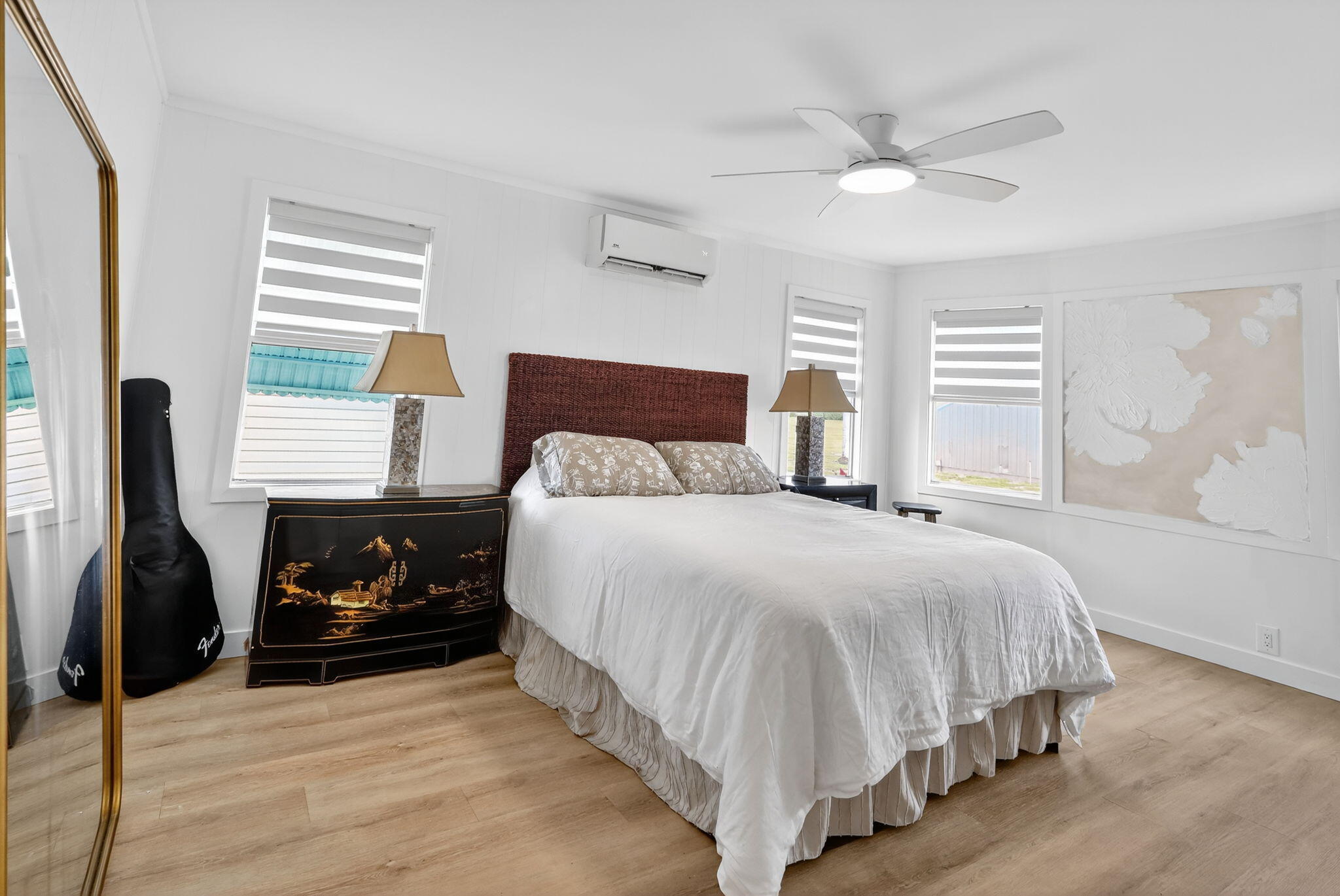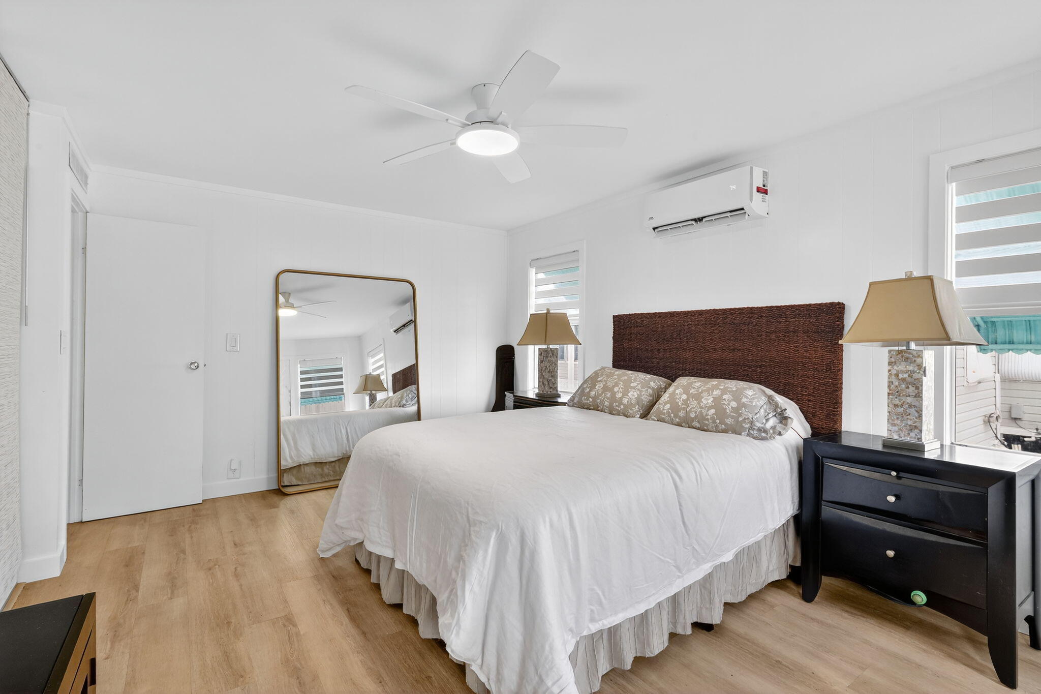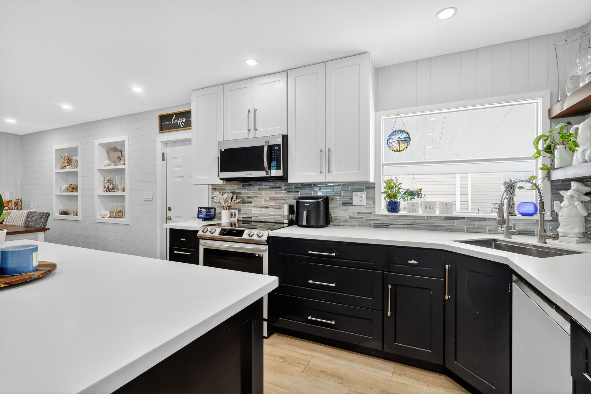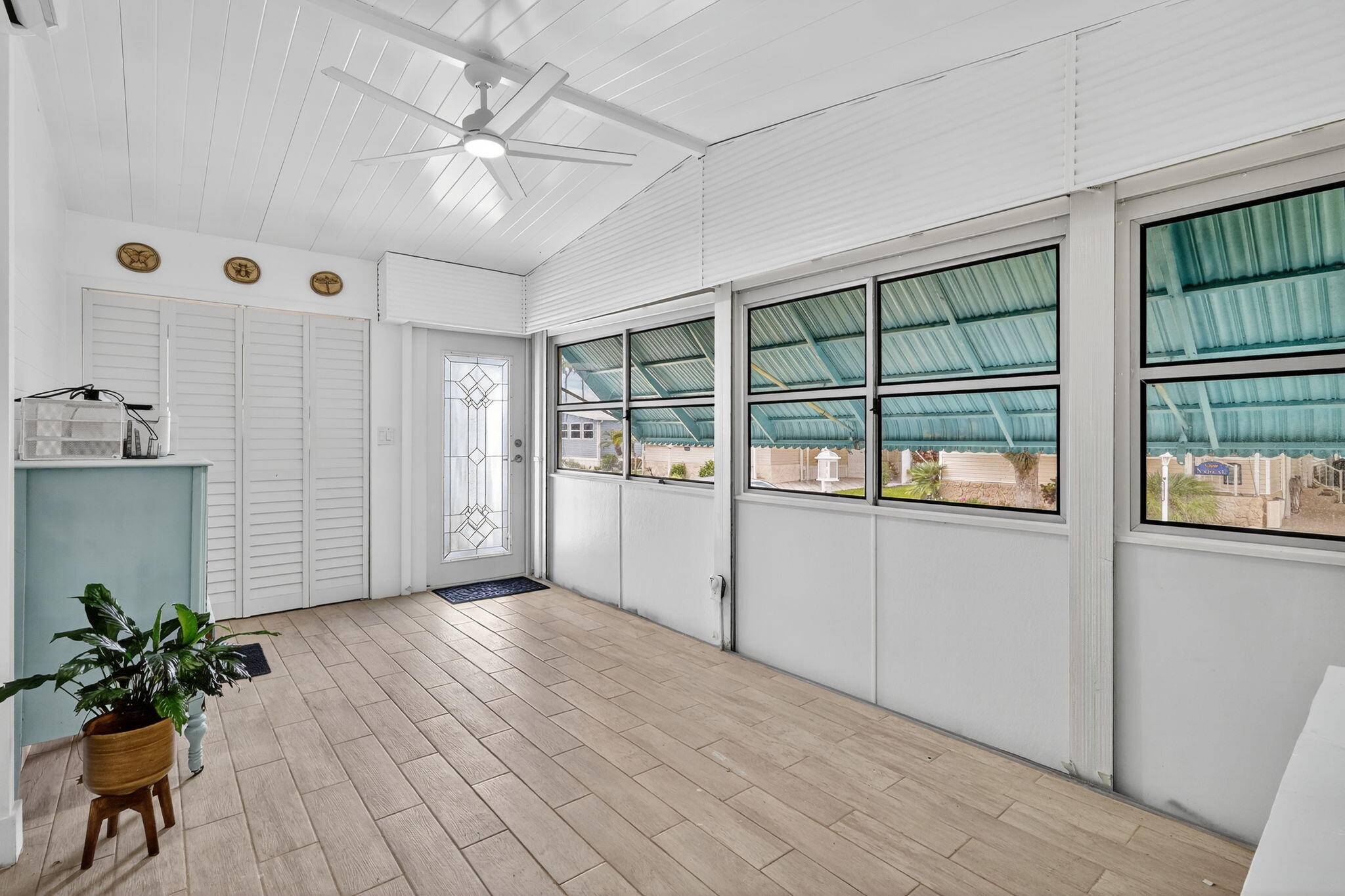 PRICED WELL BELOW MARKET VALUE BECAUSE HOMEOWNER HAS NO PATIENCE! This is a bargain that will not last. This home was completely renovated in the last year and meant to be a forever home. Every detail was handpicked, and no expense spared. IT WAS NOT A FLIP! The house was completely gutted down to the studs, and brand new structural elements added, including all new subfloors, walls, ceilings with high hat lighting, water lines (including water heater),and electric (including panel). Once the bones were replaced, the interior was designed with high end materials for class and luxury. Beautiful Stainmaster waterproof vinyl plank flooring was installed throughout the main house with tile flooring in both bathrooms and the sunroom. The kitchen is a showstopper with all-new navy bluebottom cabinetry and white upper cabinets, a beautiful solid white countertop, glass tile backsplash, insta-heat separate faucet that produces instant boiling water, and new Samsung Bespoke smart appliances with white glass fronts. This includes a 5 burner push-in stove with rapid boil and airfryer, large capacity microwave, silent dishwasher with third top rack for utienlsils, and a refrigerator with a bottom freezer that makes large and small ice cubes and afrenchdoor upper refrigerator with an exterior third door for an interior water dispenser and pitcher. The dining room has navy blue cabinetry with a two-zone wine cooler, and alcove shelving for special display items. Both bathrooms are fully tiled including oversized large showers with waterfall tile decor, moen fixtures, seamless glass shower doors, and high end lighting. The expansive master bedroom measures 16 x11, and includes a huge walk in closet measuring 11 x 6 ¾ with its own ceiling fan and adjustable light fixture. This home features 5 minisplit airconditioners that allow for individualized temperatures in each room and an economical electric bill...not to mention no filter replacements needed or annoying floor grates. Both the fully enclosed and tiled sunroom and massive porch area have a unit adding over 700 more square feet of airconditioned living space to the home. Interior laundry, new landscaping, one month old heat reducing roof paint job, and two smart 65 inch tvs make this a steal. Jamaica Bay offers a vibrant, resort-style lifestyle with numerous amenities included in a low HOA fee, covering internet, water, sewer, lawn care, and trash removal, with no land lease required. The community features a 24/7 manned gate, multiple heated pools, and a welcoming clubhouse hosting social events like bingo, dances, and card games. Outdoor enthusiasts will enjoy shuffleboard, bocce ball courts, pickle ball, and a dog park.