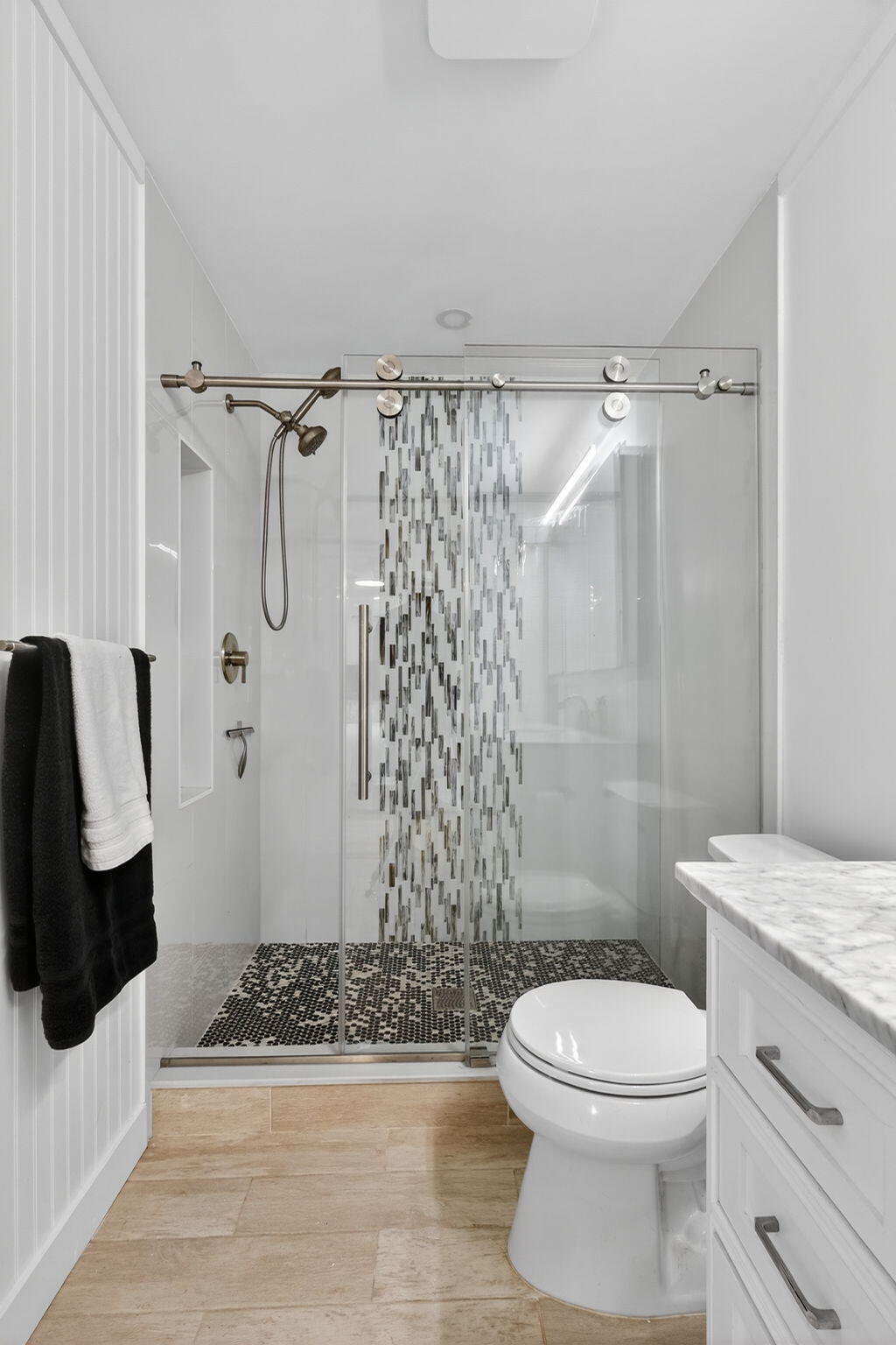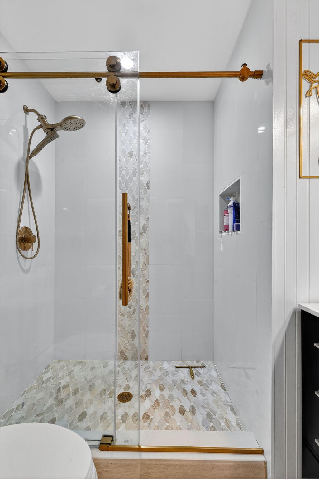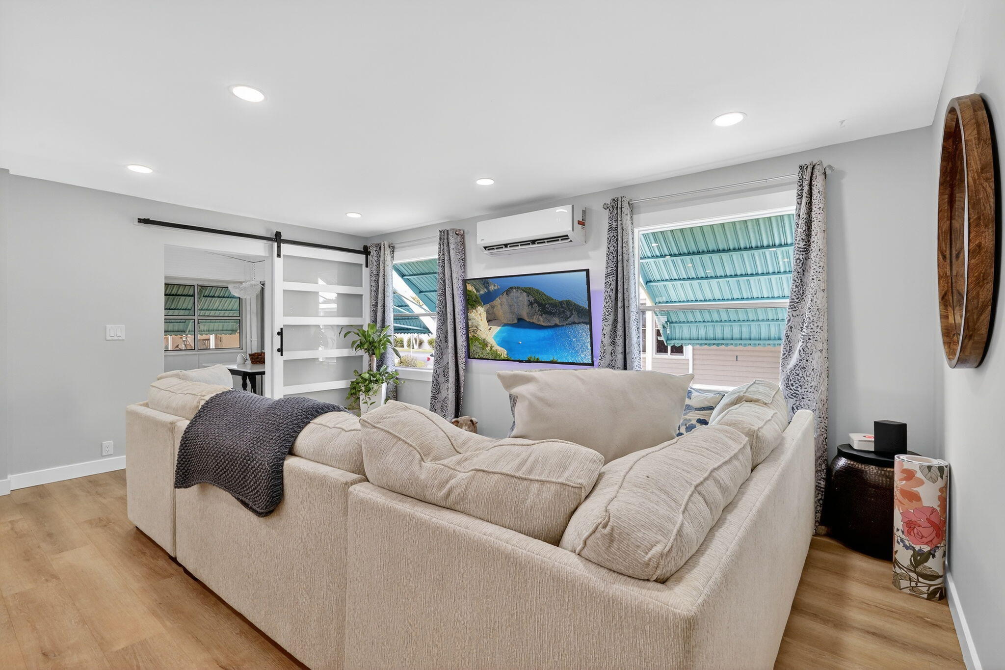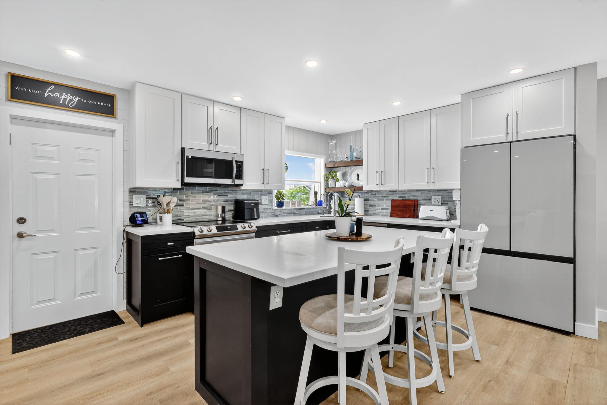 PRICED WELL BELOW MARKET VALUE BECAUSE HOMEOWNER HAS NO PATIENCE! This is a bargain that will not last. This home was completely renovated in the last year and meant to be a forever home. Every detail was handpicked, and no expense spared. IT WAS NOT A FLIP! The house was completely gutted down to the studs, and brand new structural elements added, including all new subfloors, walls, ceilings with high hat lighting, water lines (including water heater),and electric (including panel). Once the bones were replaced, the interior was designed with high end materials for class and luxury. Beautiful Stainmaster waterproof vinyl plank flooring was installed throughout the main house with tile flooring in both bathrooms and the sunroom. The kitchen is a showstopper with all-new navy bluebottom cabinetry and white upper cabinets, a beautiful solid white countertop, glass tile backsplash, insta-heat separate faucet that produces instant boiling water, and new Samsung Bespoke smart appliances with white glass fronts. This includes a 5 burner push-in stove with rapid boil and airfryer, large capacity microwave, silent dishwasher with third top rack for utienlsils, and a refrigerator with a bottom freezer that makes large and small ice cubes and afrenchdoor upper refrigerator with an exterior third door for an interior water dispenser and pitcher. The dining room has navy blue cabinetry with a two-zone wine cooler, and alcove shelving for special display items. Both bathrooms are fully tiled including oversized large showers with waterfall tile decor, moen fixtures, seamless glass shower doors, and high end lighting. The expansive master bedroom measures 16 x11, and includes a huge walk in closet measuring 11 x 6 ¾ with its own ceiling fan and adjustable light fixture. This home features 5 minisplit airconditioners that allow for individualized temperatures in each room and an economical electric bill...not to mention no filter replacements needed or annoying floor grates. Both the fully enclosed and tiled sunroom and massive porch area have a unit adding over 700 more square feet of airconditioned living space to the home. Interior laundry, new landscaping, one month old heat reducing roof paint job, and two smart 65 inch tvs make this a steal. Jamaica Bay offers a vibrant, resort-style lifestyle with numerous amenities included in a low HOA fee, covering internet, water, sewer, lawn care, and trash removal, with no land lease required. The community features a 24/7 manned gate, multiple heated pools, and a welcoming clubhouse hosting social events like bingo, dances, and card games. Outdoor enthusiasts will enjoy shuffleboard, bocce ball courts, pickle ball, and a dog park.