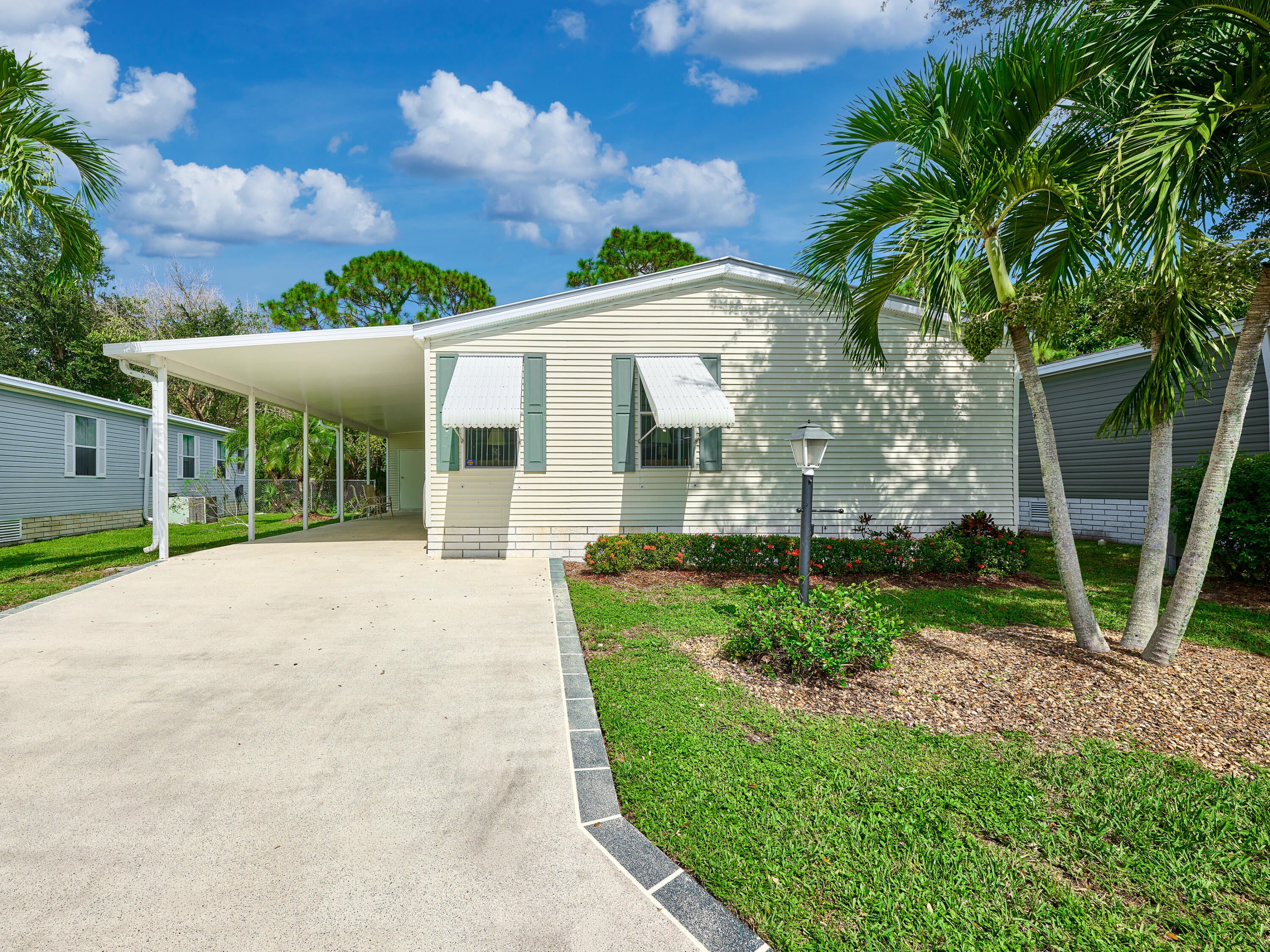 Welcome to this beautifully maintained 3 bedroom 2 bath Palm Harbor manufactured home in the sought-after 55+ community of Pinelake Gardens & Estates. This spacious residence blends modern updates with comfort and convenience.Featuring a new 2024 metal roof and a 2023 A/C system, the major updates are already done for you. Inside, the kitchen has been tastefully renovated with rich wood cabinetry, sleek granite countertops, and newer white appliances--perfect for cooking and entertaining. The adjoining dining area boasts new flooring, while the living room has fresh carpet, creating a warm and inviting atmosphere. Pinelake Gardens & Estates is a vibrant, active community offering resort-style amenities, including two clubhouses, pools, tennis, shuffleboard, and a socialcalendar filled with activities. The location is idealclose to shopping, dining, medical facilities, and just minutes from the beautiful beaches of the Treasure Coast. Don't miss this move-in-ready home with the upgrades you've been looking for.