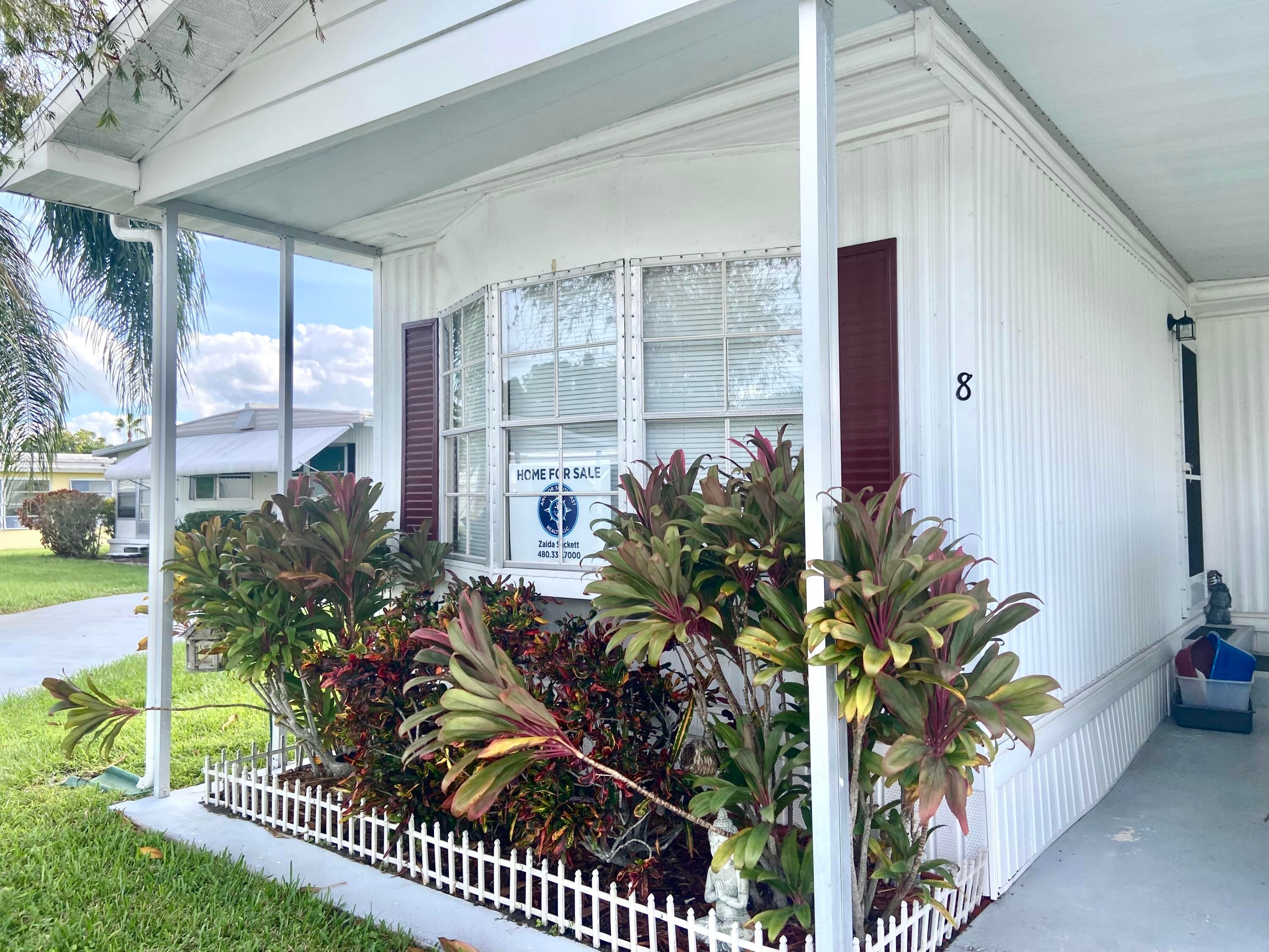 Welcome to 8 Florencia Lane in Port Saint Lucie Fl. This 2 bed/2 bath home is located in a great 55+ community on leased land 833.06 a month, with some great amenities, lawn care, trash and recycle, clubhouse activities galore and use of the boat launch in the community, not to mention tennis, golf, and an array of events! Offered partially furnished AS_IS AS SHOWN with a lovely master suite, a den area, and indoor laundry. This split layout offers privacy for you and guests with a separate bath/tub combination. Central air replaced 2022, shingled roof 2013, circuit breaker and ceiling fan and fixtures newer and washer replaced 2022. OWNER NEGOTIABLE! LIVING AND BOTH BEDROOMS HAVE REMOVED CARPETS AND sealed flooring. Call ME today and make this your home sweet home or vacation get away