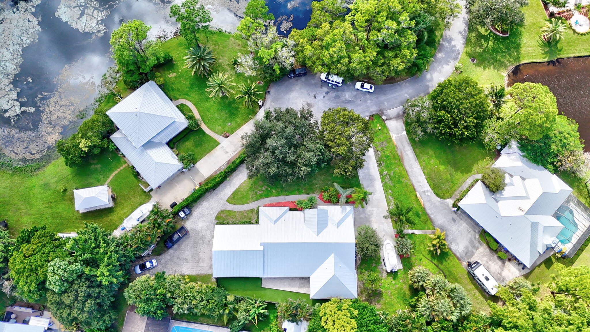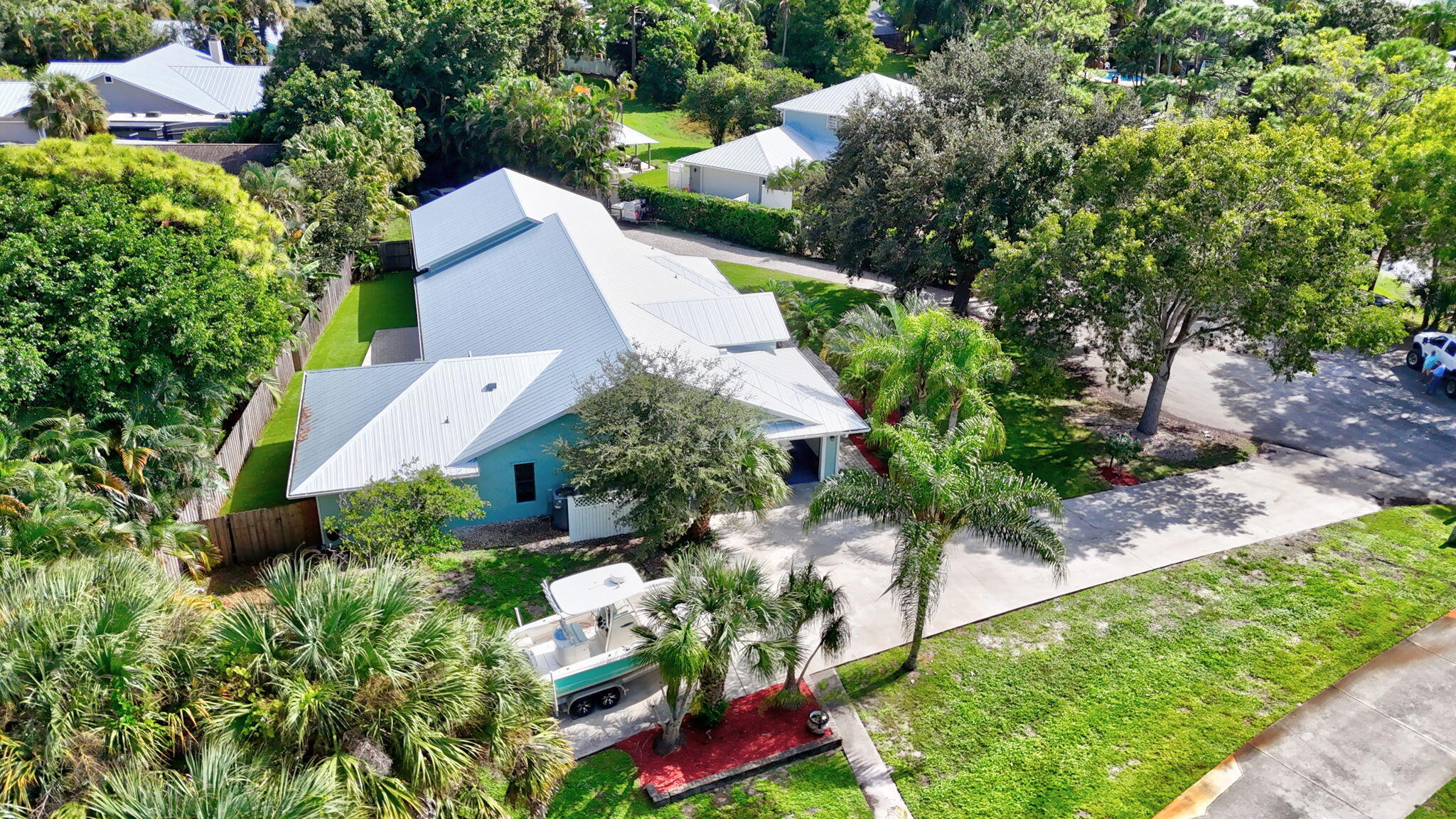 Don't miss this beautifully updated 4-bedroom home tucked in a peaceful Palm City cul-de-sac. The spacious 4/2 split layout offers a new metal roof, rich wood floors, surround-sound living area, security cameras, and a renovated gourmet kitchen with granite, abundant cabinetry, two breakfast bars, and an oversized pantry. Enjoy the screened patio overlooking the fenced astroturf dog run. Car enthusiasts will love the TWO garages with covered space for five vehicles, a workshop, and room to add a pool. Additional highlights include generator hookup, dual driveways, and generous attic storage. Located in a top-rated school district, this home delivers comfort, luxury, privacy, and unbeatable everyday convenience.