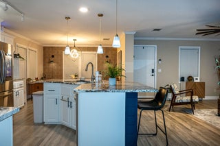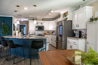 2 MONTHS FREE LOT RENT! Updated 2-bd, 2-ba home, w/hurricane impact windows throughout. Updated in 2021 w/smart technology. Kitchen features stunning granite countertops, tile backsplash, SS smart appliances w/refrigerator & access to your phone to look inside. Kitchen flows into dining & living areas, for relaxing or hosting. Primary suite offers large walk-in closet & remodeled bathroom w/dual vessel sinks, granite counters, glass-enclosed shower & textured 3D tile for a spa-like feel. Second bathroom w/granite countertop & unique vessel sink. Lovely yard with colorful flowers & interesting trees, roomy 9.5' x 12' shed for extra storage. Just minutes to downtown Jensen and beaches! Pinelake Village is a 55+ community w/large clubhouse, pool, spa, fitness center, billiard room & more!