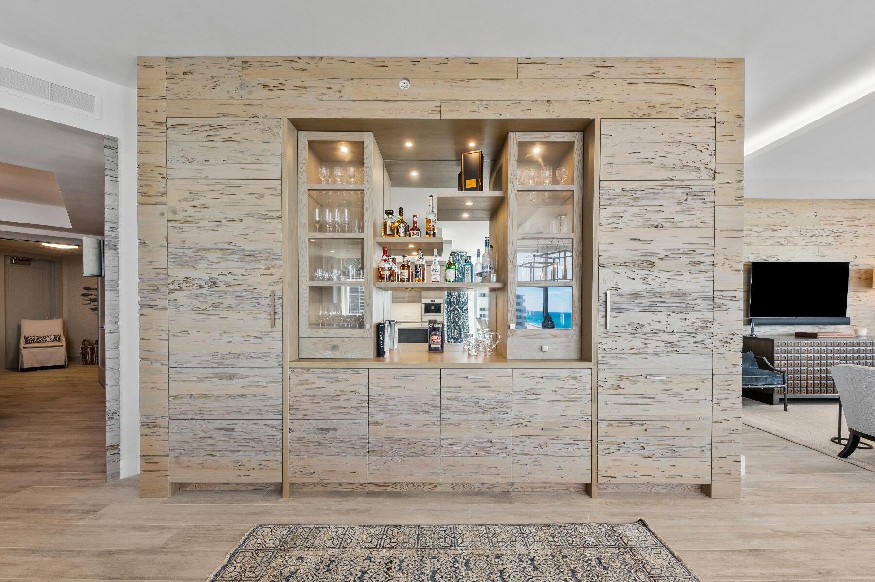 VistaBlue Singer Island - Direct Oceanfront B ResidenceA rare opportunity to own the largest direct oceanfront residence currently available at VistaBlue. This exceptional 4-bedroom + den, 4.5-bathroom home spans 3,645 square feet of meticulously designed interior space, complemented by 486 square feet of outdoor living, all with panoramic, unobstructed views of the Atlantic Ocean.This residence is fully appointed with Miele appliances, sleek Poggenpohl cabinetry, a striking quartz waterfall island, and a Sub-Zero refrigerator and ice maker, perfectly blending form and function. Soaring floor-to-ceiling impact glass brings the ocean into every room, while custom upgrades including Lutron automated shades, custom closets throughout, pecky cypress accent walls in the entry and bar area,and floating ceilings elevate the living experience to a truly bespoke level. Wake up to breathtaking sunrises and enjoy unobstructed ocean views from every room. Step outside to experience resort-style beachfront living with 5-star amenities, including a 24/7 concierge, ocean view social lounge, private wine vault, state-of-the-art fitness center with sauna, and an elevated pool deck with cabanas and direct beach access. This is luxury coastal living at its finest residence that seamlessly blends sophisticated design, top-tier finishes, and world-class amenities.