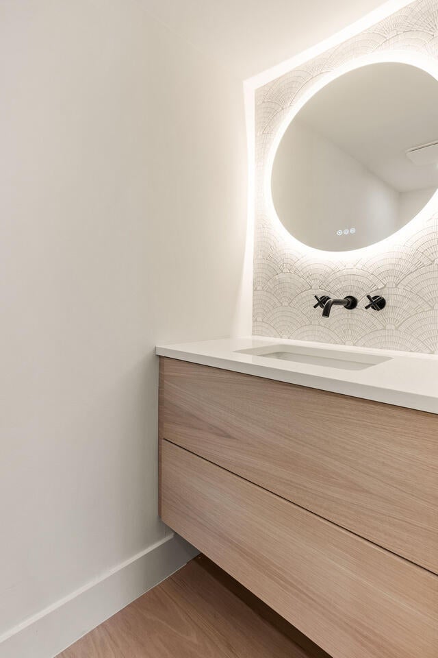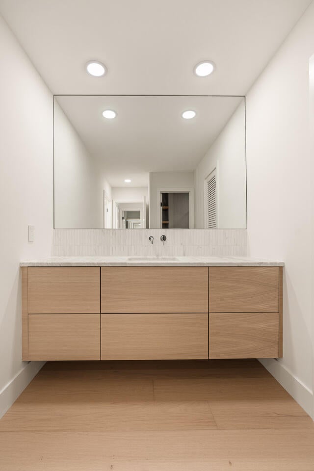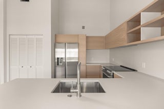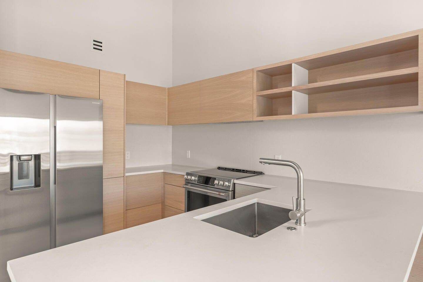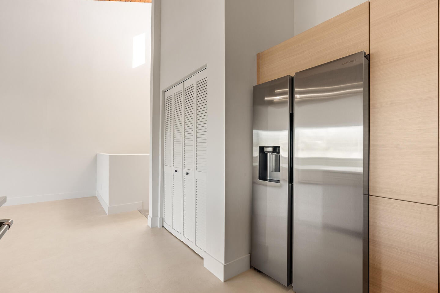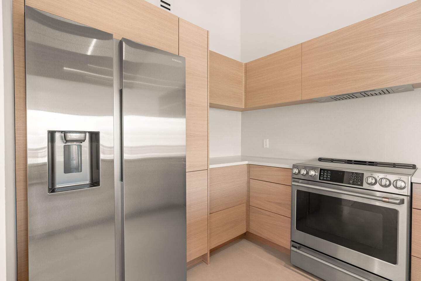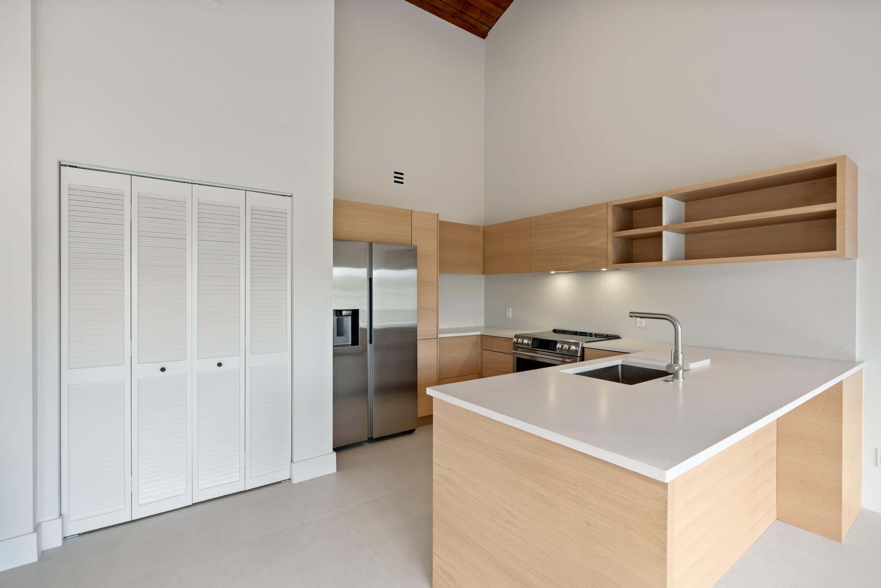 Beautifully Remodeled End Unit Condo/Townhouse in Historic Downtown Stuart3 Bedrooms | 2.5 Bathrooms | RentDiscover this stunningly remodeled end unit condo/townhouse, designed by a professional interior designer, just a 5-minute walk to downtown Stuart and 10 minutes to the upcoming Brightline station. Vaulted wood ceilings, oversized windows, and wide plank clear white oak flooring including premium white oak on the first-floor, second floor bedrooms, stairs and hallway fill the home with light and warmth. The second floor great room features 48'' x 48'' large format tile, and large sliding doors open to a spacious balcony, perfect for relaxing or entertaining. The kitchen features custom white oak cabinetry, quartz countertops with full quartz backsplash, stainless steel Cafeappliances, a concealed cabinet microwave, and an in-cabinet coffee caddie to keep countertops clear. A brand-new AC system adds comfort. Neutral finishes throughout allow you to make the space your own. The layout feels like three levels due to its split design, though it is technically two floors. The versatile downstairs bedroom has a private exterior door, ideal for a commercial space, garage conversion, or recreation room, currently used as a music studio. The powder room features a stone mosaic backsplash, backlit mirror, wall-mounted faucet, and floating white oak vanity. Upstairs, the primary suite includes a spacious walk-in closet and an ensuite bath with a dolomite counter, mosaic dolomite backsplash, floating faucet, and mirrored wall. The second bath includes a brand-new deep soaking tub and shower combo, floating vanity, fluted travertine-look wall tile with oversized 48" tile flowing outside the shower, large mirror with floating sconce, penny floor tile, and black plumbing finishes. This end unit condo/townhouse is an over-improved remodel featuring multi-million-dollar home finishes. Community amenities include a pool, easy access to the St. Lucie River via Frazier Creek, and ample parking spaces for residents and guests. Available to rent, this property combines all current finishes with modern design in a prime Stuart location. See it in person the pictures don't do it justice!