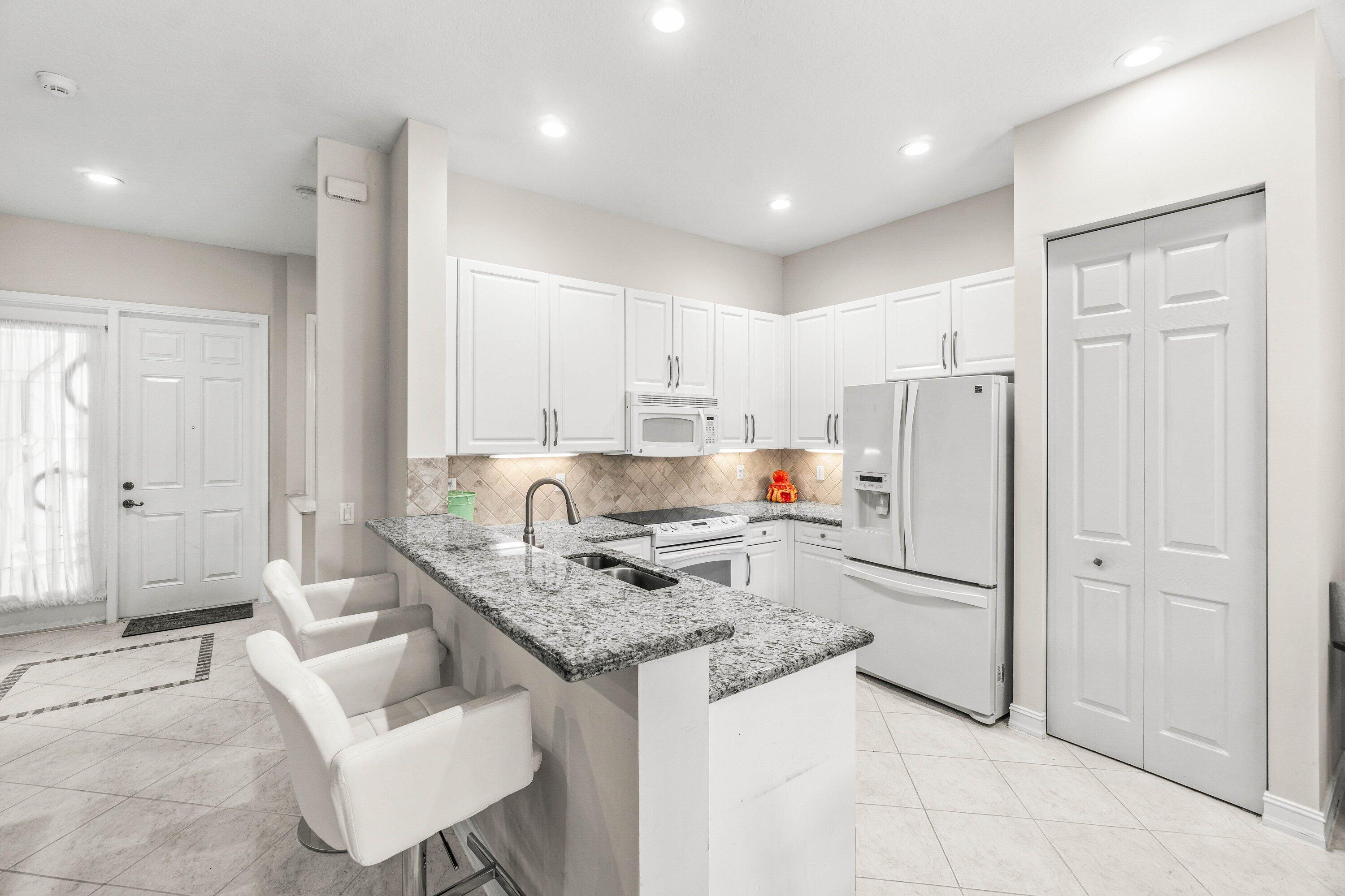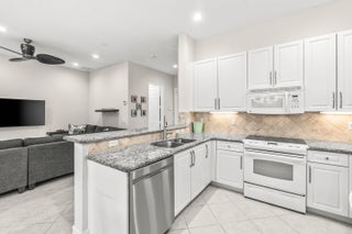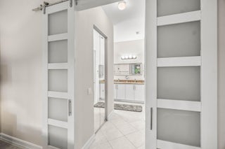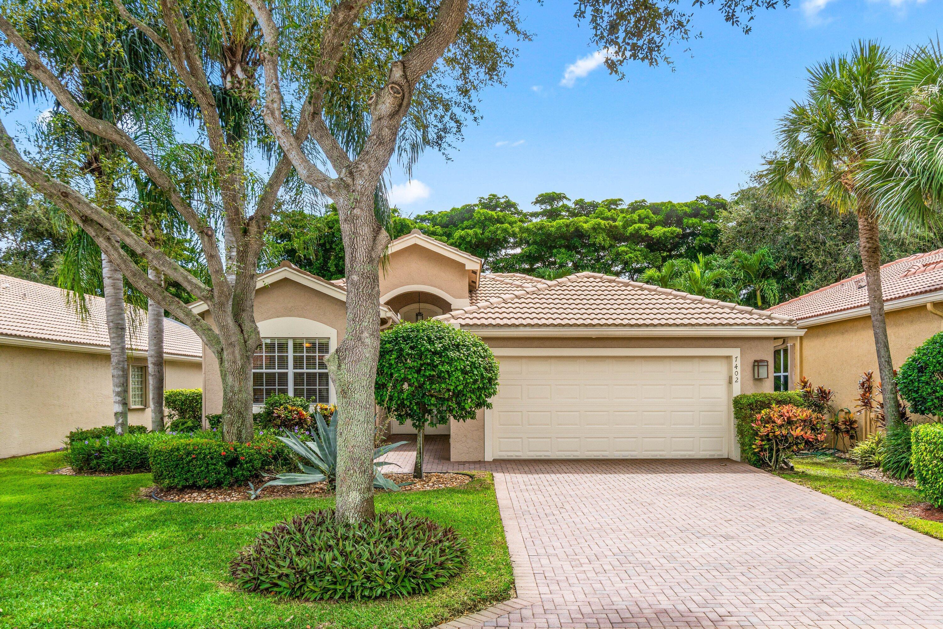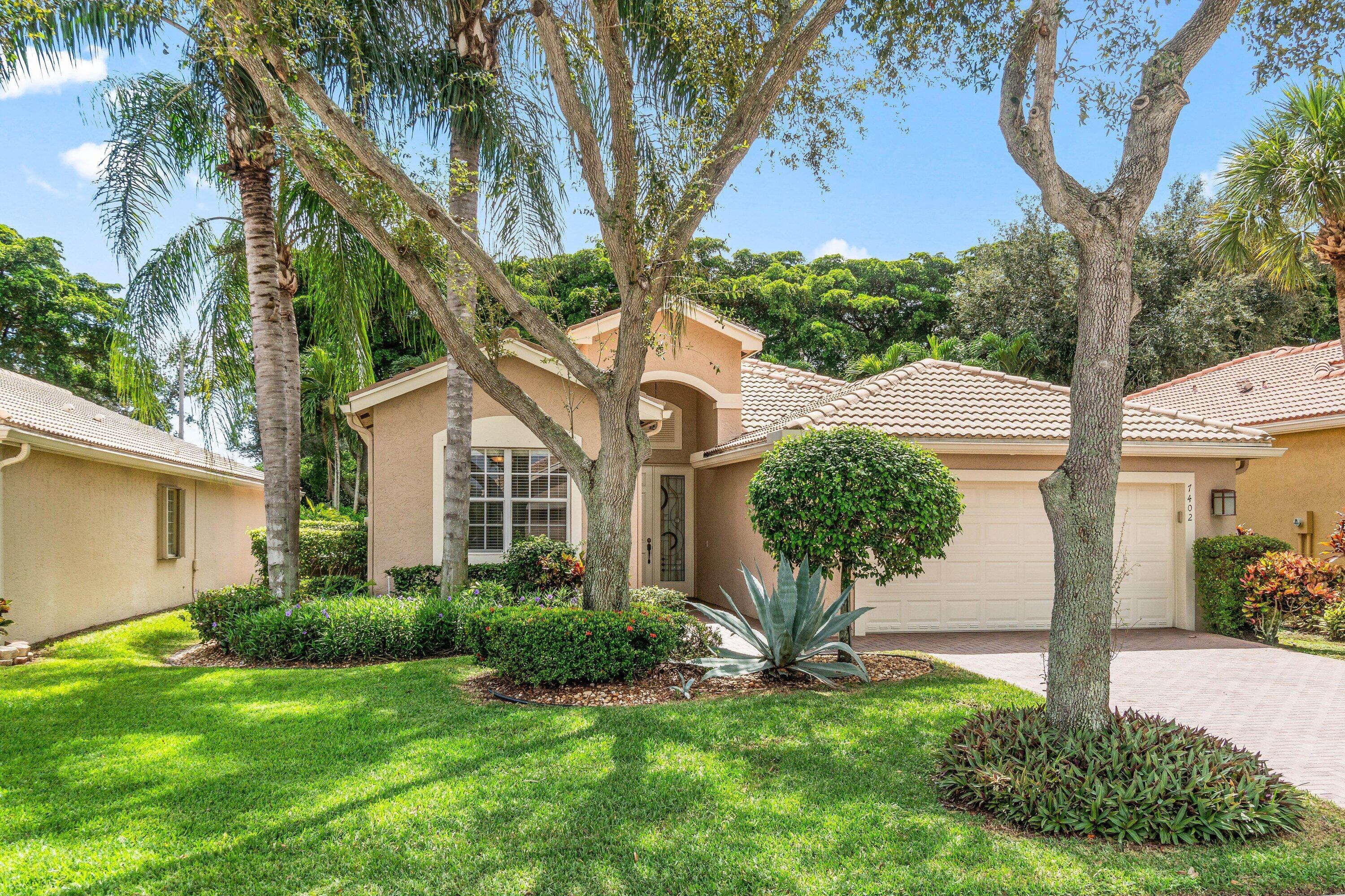 Lovely Catherine model features 2 bedrooms, 2 baths and a fenced in pool surrounded by landscaping providing beauty and privacy. Upgrade highlights include neutral tile on a diagonal throughout (no carpet), Carrier AC and water heater installed in 2020, tons of kitchen and bath upgrades such as glass door shower enclosures with tile to ceiling, a beautiful custom barn door at closet/bathroom entry in Primary bedroom, upgraded lighting, fan fixtures and hi hats throughout, newer washer and dryer, upgraded patio and pool deck pavers installed on a diagonal, widened walkway pavers with no front step, gutters and more!