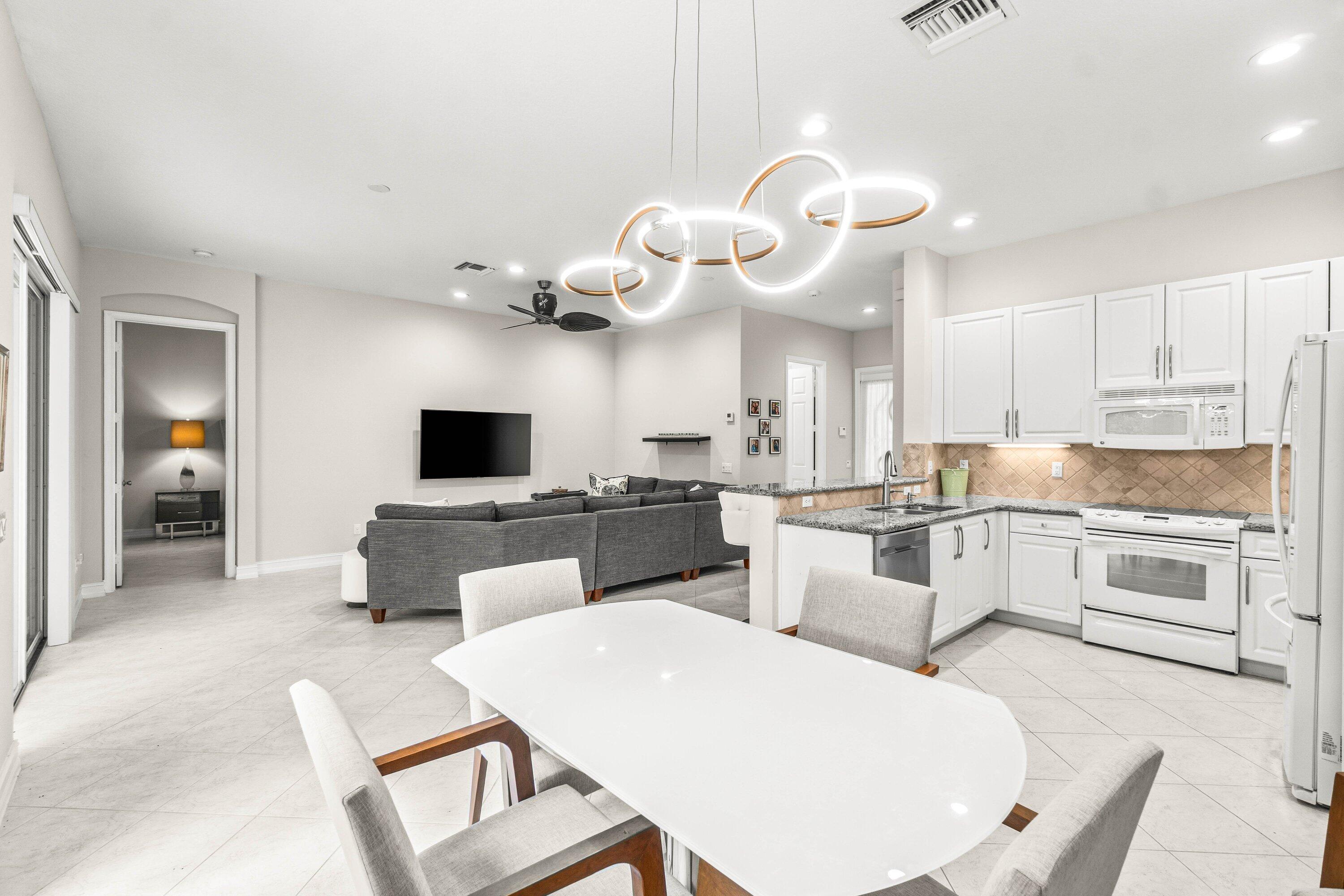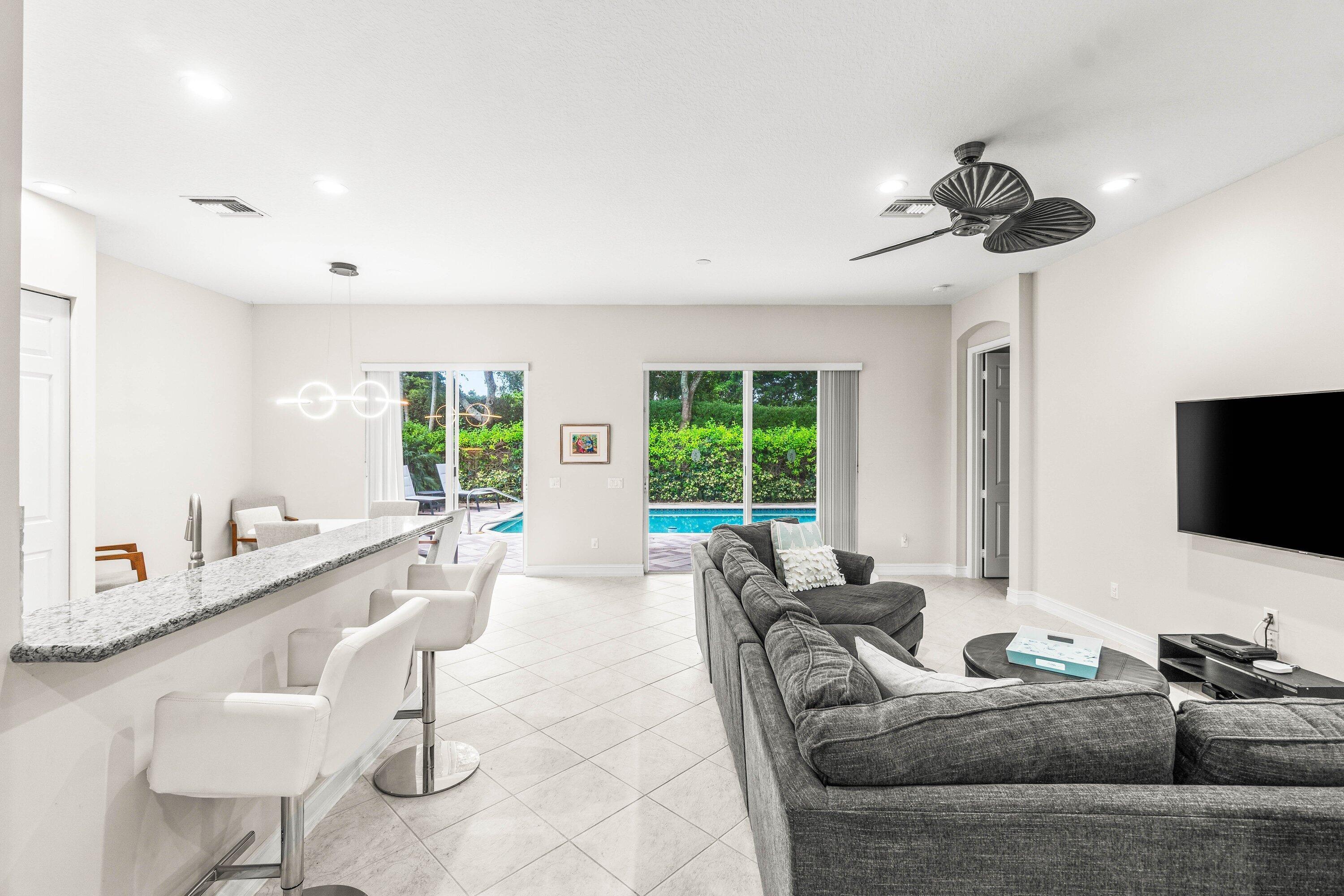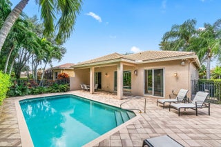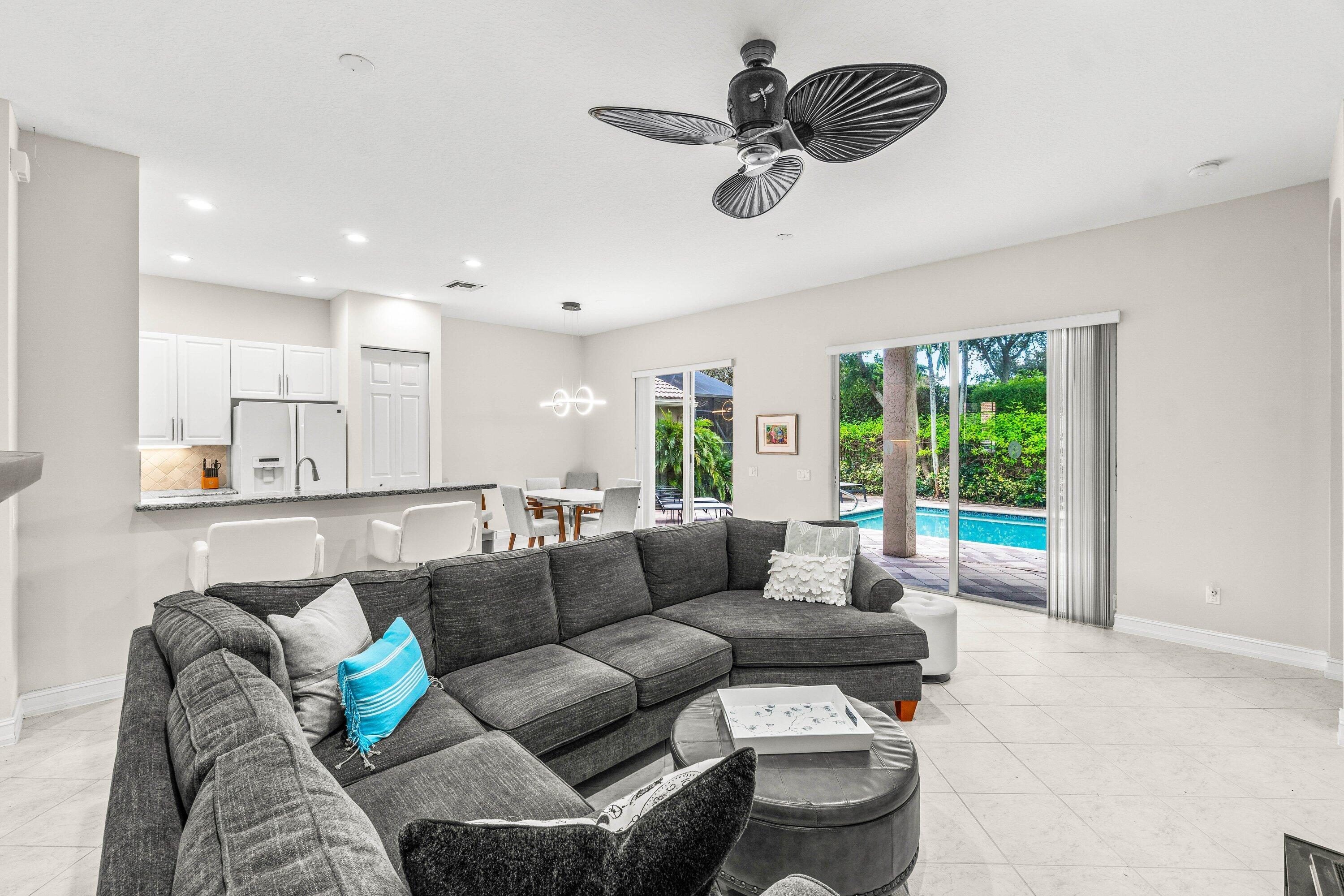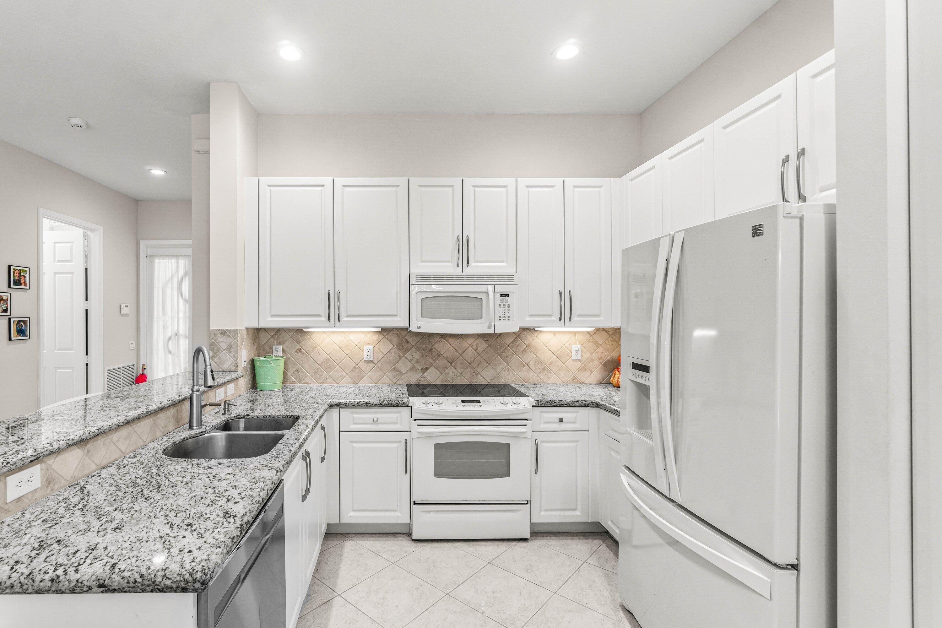 Lovely Catherine model features 2 bedrooms, 2 baths and a fenced in pool surrounded by landscaping providing beauty and privacy. Upgrade highlights include neutral tile on a diagonal throughout (no carpet), Carrier AC and water heater installed in 2020, tons of kitchen and bath upgrades such as glass door shower enclosures with tile to ceiling, a beautiful custom barn door at closet/bathroom entry in Primary bedroom, upgraded lighting, fan fixtures and hi hats throughout, newer washer and dryer, upgraded patio and pool deck pavers installed on a diagonal, widened walkway pavers with no front step, gutters and more!