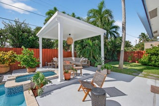 Welcome to 802 Mallard Drive, a fully furnished seasonal escape in Delray's Tropic Palms designed for easy, indulgent living. This stylish 2BR/2BA pool home features Maiden Home, West Elm, and Restoration Hardware pieces, plus a chef's kitchen with Bosch appliances, quartz counters, Wi-Fi oven, pot filler, and wine fridge. Enjoy plush towels, robes, an inflatable paddleboard, and a spacious owner's suite with a walk-in closet and washer/dryer. Outside awaits a saltwater pool, jacuzzi, covered seating, lush landscaping, smart irrigation, and a fenced yard with lanai. Minutes to the beach, Atlantic Ave, tennis center, Whole Foods, Trader Joe's, and shops. Extra twin mattress available, plus flex desks in the primary and bonus area. Perfectly centered between Delray and Boca.resort-level experience. Extra twin mattress and frame can be added to the primary guest suite. Flex work desks in primary bedroom and third flex area off of primary suite. Large private, fenced yard with lanai to protect you from the sun. Whole Foods, Trader Joes and many shopping options nearby. Perfect centered between downtown Delray and Boca Raton.
