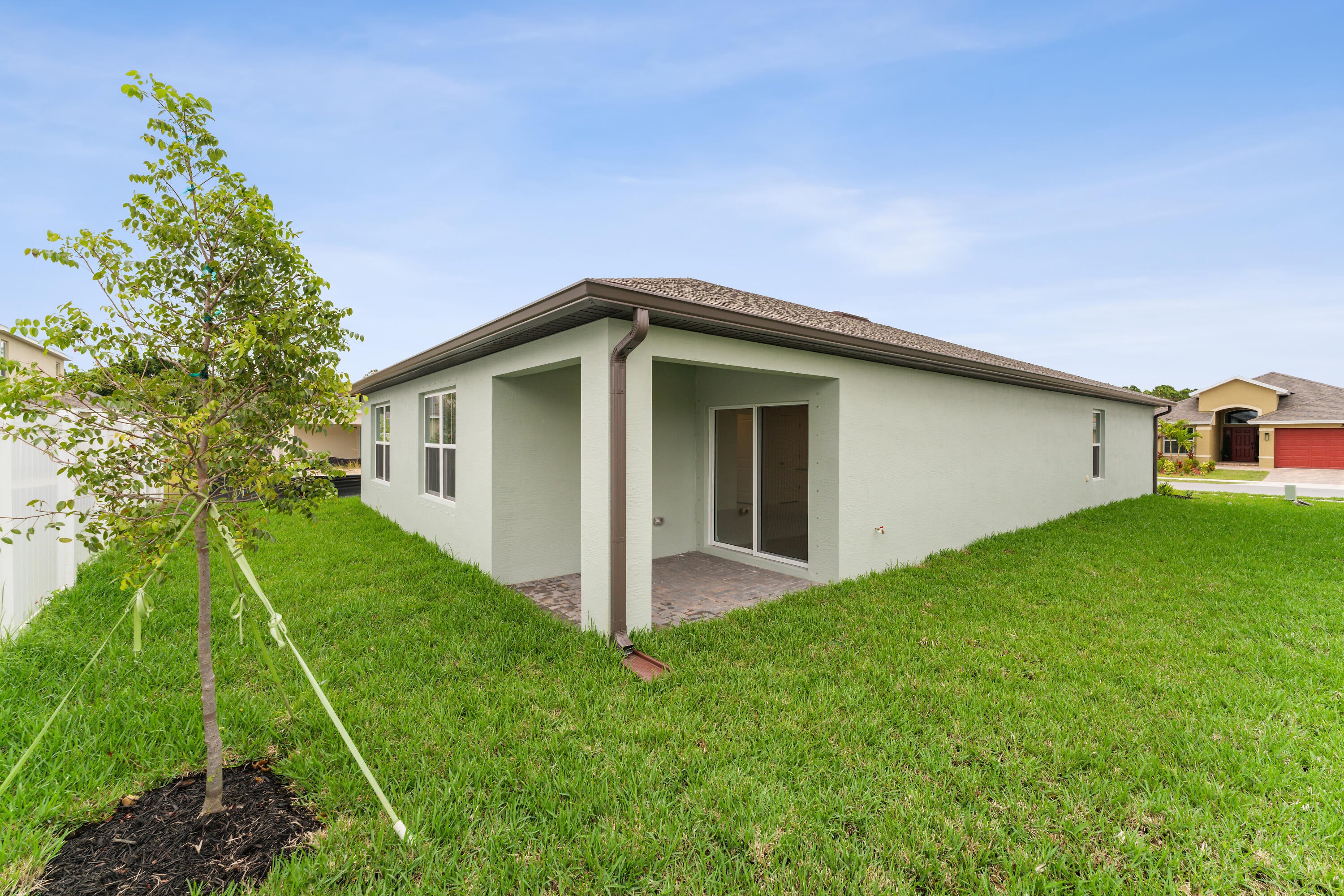 This is a beautiful 4BR, 2 BA, 2 Car garage quick move in home. This well-designed home features a spacious peninsula-style kitchen with white 42'' upper cabinets, granite countertops and GE stainless steel appliances. The open floorplan leads to a spacious great room with large windows and the dining area connects seamlessly to the covered patio--perfect for indoor-outdoor entertaining. The elegant primary suite includes a spa-inspired bath with dual vanities and a generous walk-in closet. The three additional bedrooms provide plenty of space for family and guests. Irrigation and St. Augustine grass, washer/dryer, whole home gutters, and a two two car garage with opener are all included.This vibrant community offers a state-of-the-art fitness center, sparkling outdoor pool, basketball court and kid's tot lot. Located between downtown Fort Pierce and Tradition in Port St. Lucie, you're minutes from premier shopping, dining, entertainment, and world-class golf courses like Fairwinds and Indian Hills. Whether you're enjoying a peaceful sunset stroll or connecting with neighbors at the clubhouse, Aspire at Morningside is the perfect place to call home. Don't miss your opportunity to own this one-of-a-kind home. The Finlay II blends luxury, livability, and layout in one beautifully crafted package. Available November 2025.
