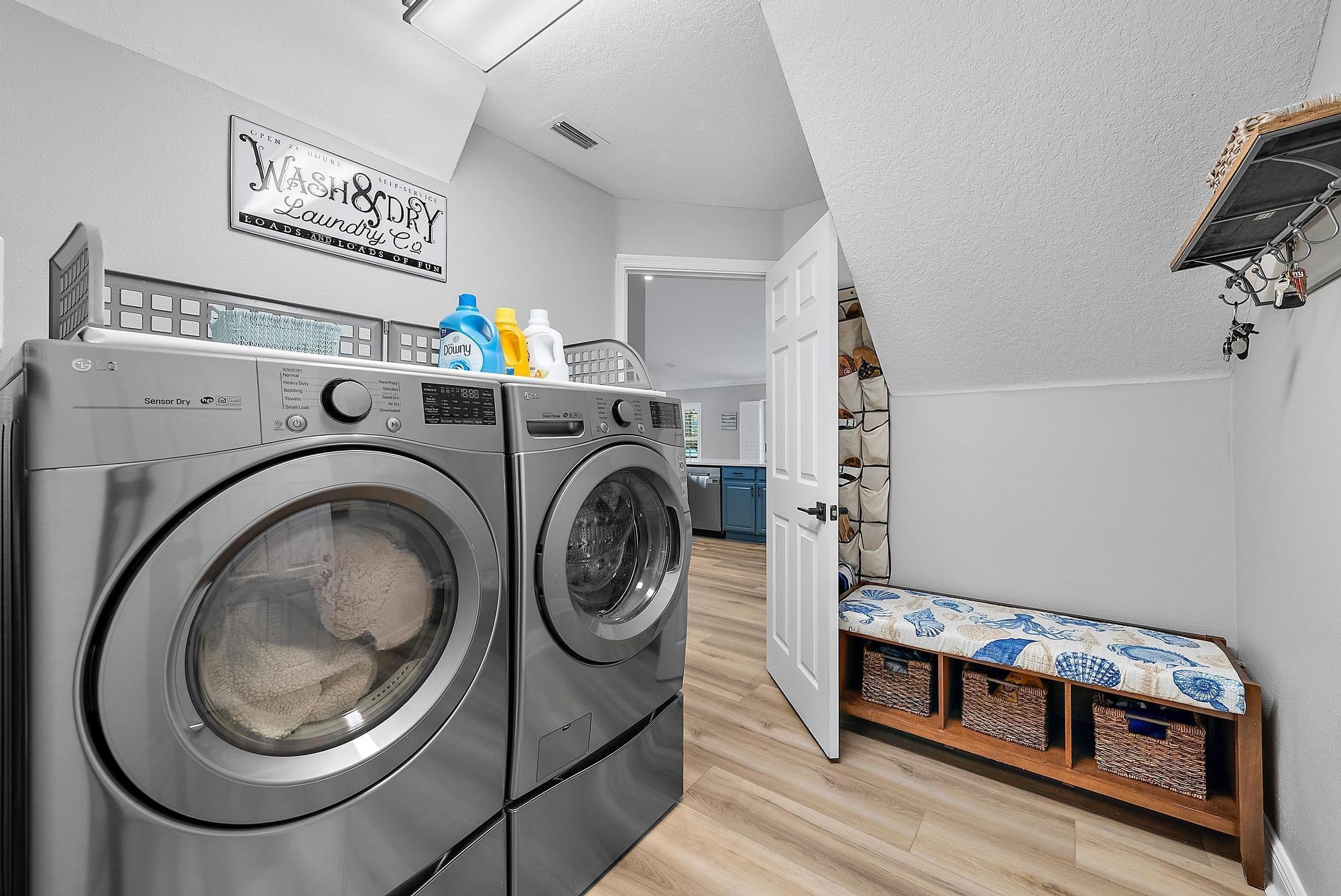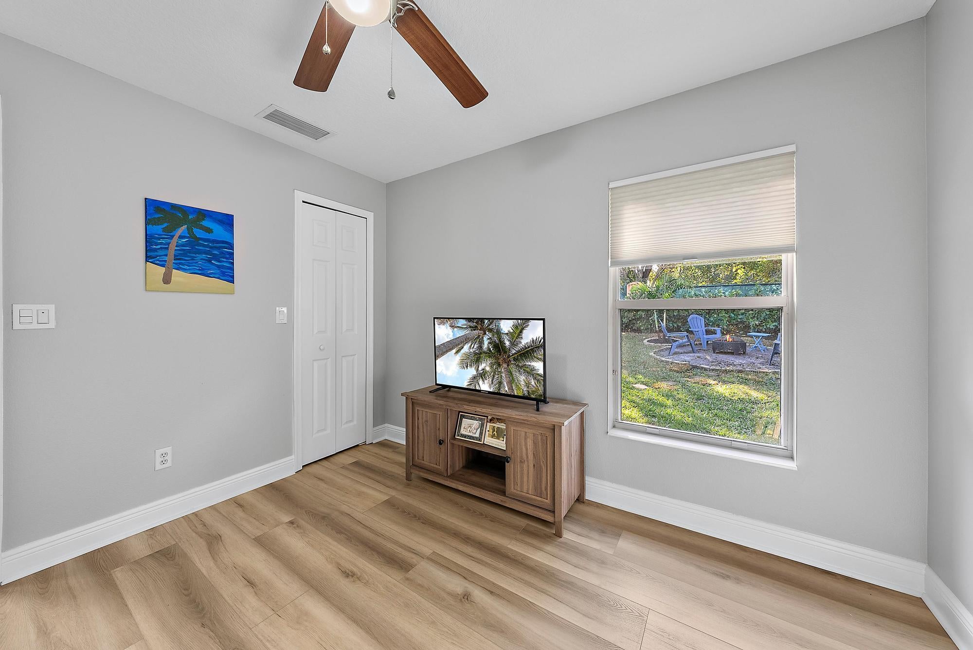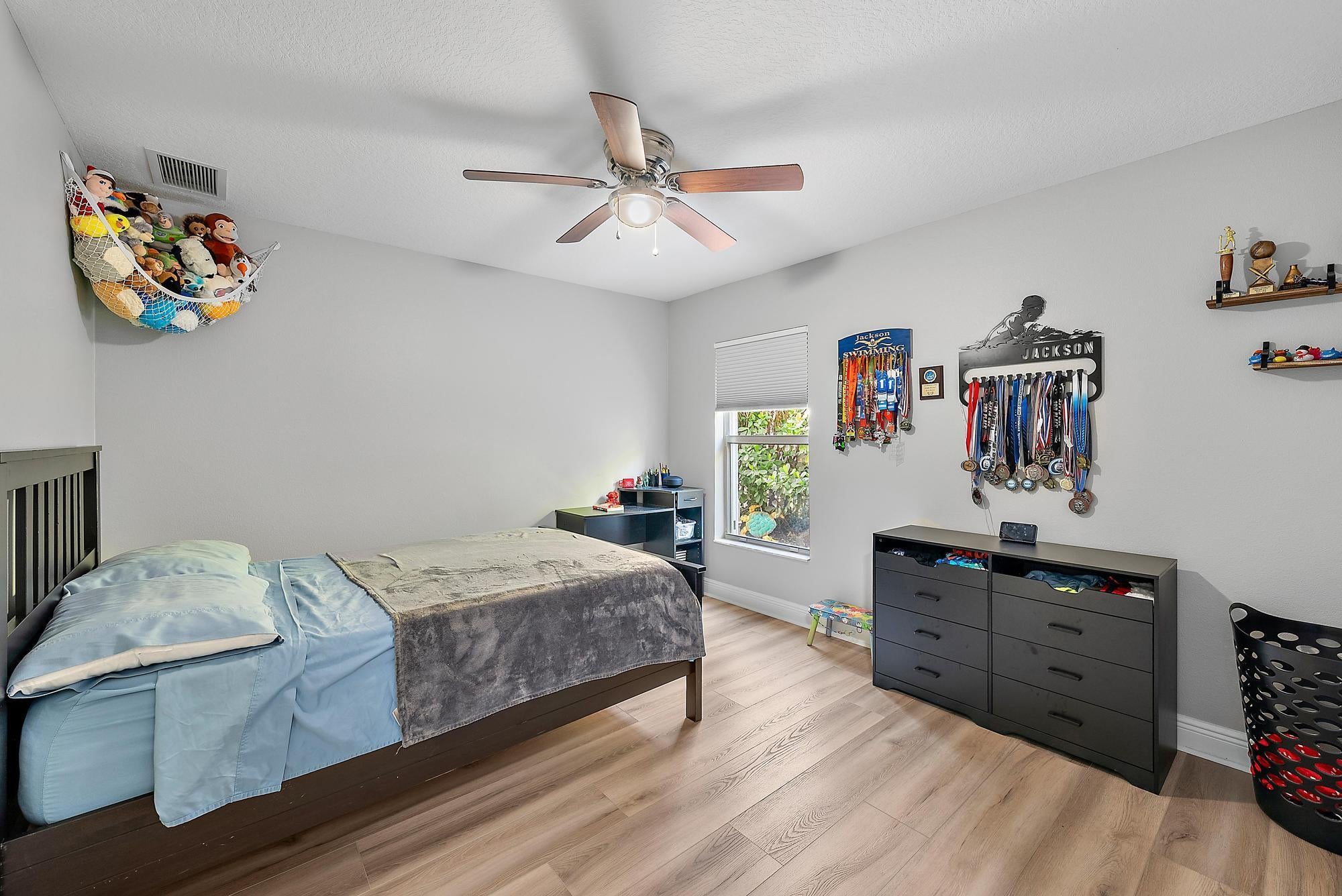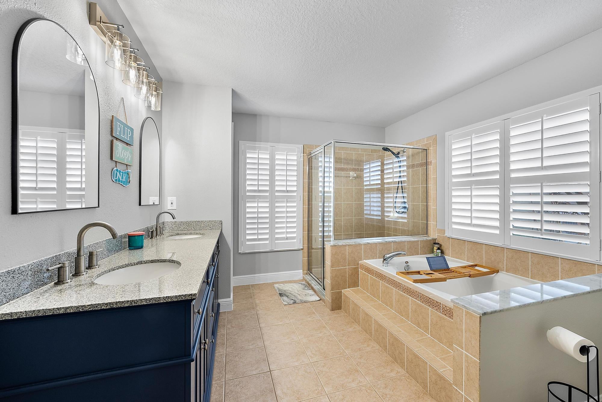 A Rare Find! This 5-bedroom, 3-bath home stands out with thoughtful upgrades, a spacious open design, and a quarter-acre lot that offers room to live and entertain in comfort.Step inside to discover a beautifully renovated interior with an open floor plan and brand-new luxury vinyl plank flooring throughout. The gourmet kitchen boasts sleek Samsung appliances, a spacious stainless steel sink with reverse osmosis filtration, and expansive quartz countertops. A stylish butler's pantry with butcher block counters adds both function and charm.The main level offers four bedrooms and two full baths, including a convenient cabana bath with private access to the patio and pool. The primary suite also opens directly to the outdoor living space.Upstairs, you'll find a private suite complete with its own bath and walk-in closet, ideal for in-laws, guests, or young adults. Outdoor living is equally impressive, featuring a newly added screened enclosure, resurfaced pool and spa, a newer pool heater, and a spacious, fully fenced backyard with lots of privacy. Hurricane season peace of mind comes easy with impact windows upstairs and accordion shutters on the main level. Additional upgrades include a newer LG washer/dryer, water heater, HVAC system, newly installed EV outlet to charge your electric vehicle, and fresh paint inside and out. Located in the gated community of Lake Tuscany, this home offers low HOA fees, zoning for A-rated schools, and convenient access to shopping, dining, and Stuart's beautiful beaches. Phipps Park is less than a mile away and features a boat ramp and fishing pier. Quick access to I-95 makes commuting a breeze. This home is truly one of a kind, ready to impress at every turn.