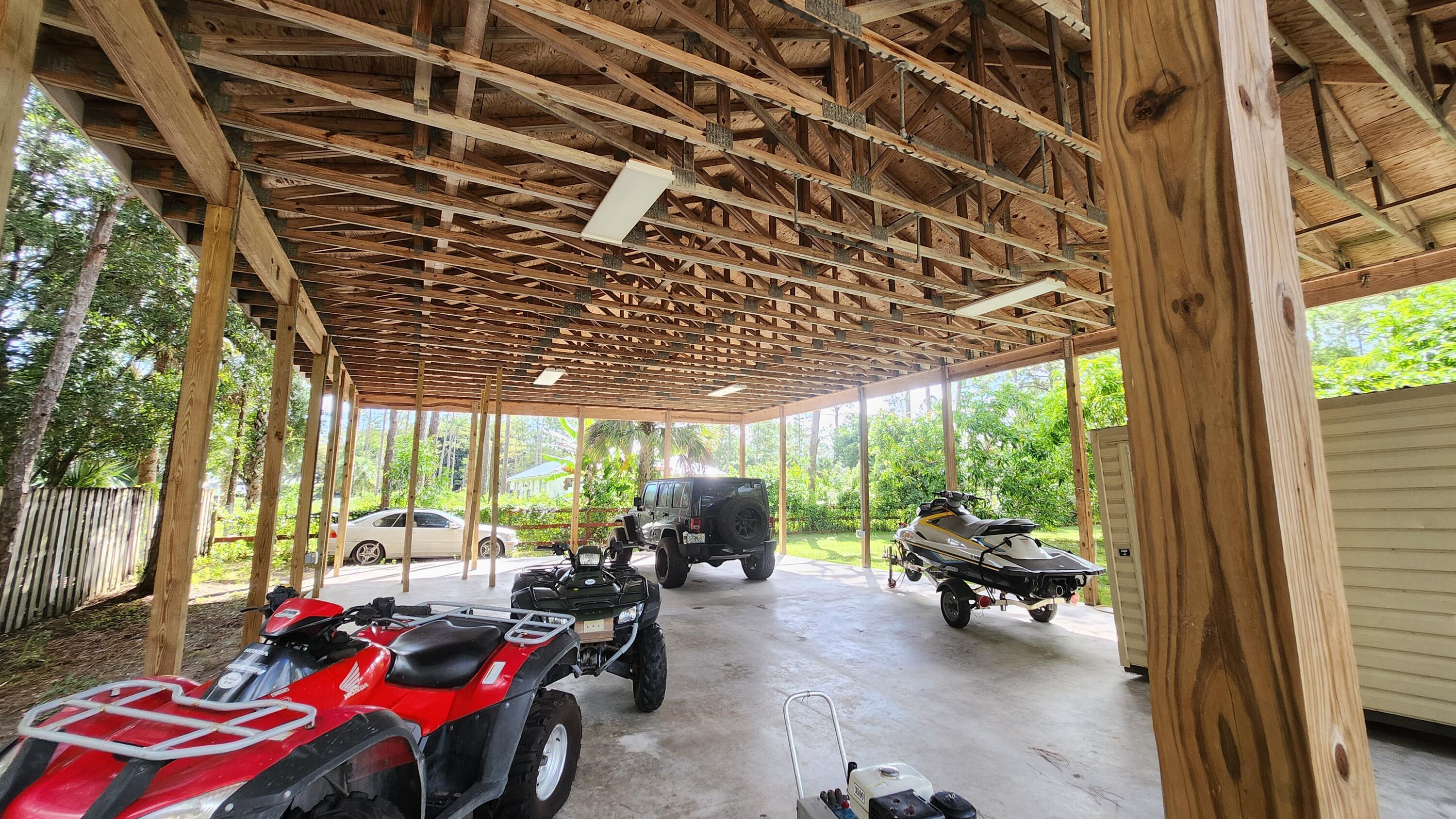 Welcome to this exceptional Jupiter Farms retreat where country charm meets modern convenience on a sprawling lot that offers both privacy and practicality. This thoughtfully designed three-bedroom, two-bathroom home spans 1,758 square feet of comfortable living space, featuring beautiful porcelain flooring throughout and a cozy fireplace that serves as the heart of the main living area.What truly sets this property apart is the remarkable 1,500-square-foot workshop and pole barn, complete with electricity and water connections. Whether you're a hobbyist, entrepreneur, or simply need abundant storage space, this versatile outbuilding opens endless possibilities. The circular driveway adds both elegance and convenience.The kitchen impresses with granite countertops and stainless steel appliances, creating an ideal space for both everyday meals and entertaining guests. Step outside to discover your own private oasis with a screened patio perfect for morning coffee or evening relaxation, while various fruit trees dot the landscape, offering seasonal treats right from your backyard. Located in the highly desirable Jupiter Farms area without homeowner association restrictions, you'll enjoy the freedom to make this property truly your own. The peaceful neighborhood setting offers a rural feel while maintaining proximity to essential amenities, including Jupiter Farms Park just over a mile away for recreational activities, and convenient grocery shopping at the nearby Publix Super Market. This non-homeowner association community provides the perfect balance of country living and suburban accessibility, making it an ideal choice for those seeking space, flexibility, and quality construction in one of Jupiter's most sought-after areas.