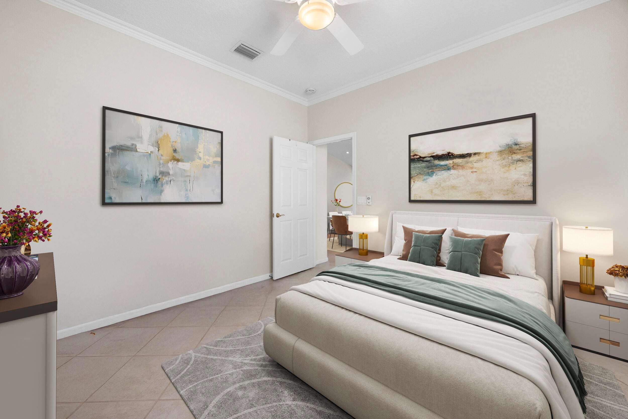 Your search ends here, this corner villa checks every box! Vaulted ceilings and plantation shutters add character to the spacious split-bedroom layout, while tile floors run throughout for a clean, timeless look. Freshly painted and move-in ready, this home lives large with a 2-car garage, walk-in closets, and a dedicated laundry room. The oversized screened lanai expands your living space, perfect for morning coffee or unwinding after a day in the sun. Set on tree-lined streets in a gated 55+ community known for its welcoming neighbors, lively events, and on-site cafe-with a brand-new clubhouse set to open this December. HOA includes cable, internet, lawn care, alarm system, and access to all Palm Isles amenities.