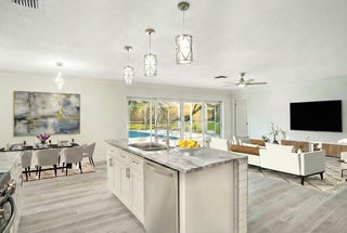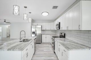 PRICE REDUCTION! Stunning renovated 3BR/2BA pool home on a large corner lot with fenced yard. Featuring a gourmet kitchen with custom white cabinets, granite countertops & stainless steel appliances, opening to a spacious great room overlooking the pool. The master suite offers a new vanity & luxurious two-person shower, while the guest bath is updated with new vanity, tile & fixtures. Luxury flooring throughout. Roof 2024, new AC, water heater, impact windows & doors. Perfect blend of style, comfort & modern upgrades. This property qualifies for a mortgage rate buydown of up to 3%!