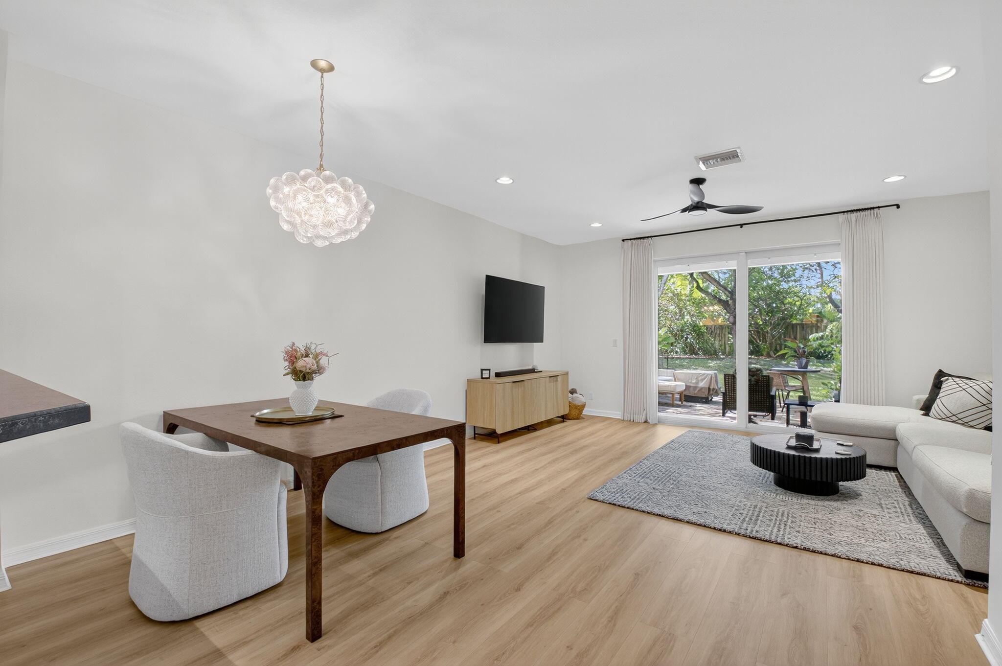Don't miss this GEM in East Delray Beach! Fully Renovated 2 story townhouse just a bike ride away from the Beach. This 3 bedroom 2 1/2 bath home has all new wide-oak plank Luxury Vinyl flooring throughout and a brand new plush carpeted staircase. It includes an attached Garage plus a parking spot out front and is conveniently located right off Federal Hwy !! It is in the FREEBEE zone that takes you anywhere in East Delray. Updates include a Brand New Master Bathroom with Moroccan tile, updated second full bath and powder room and all new smart kitchen appliances. New dishwasher, stove, refrigerator, washer, dryer and hot water heater. All new lighting and freshly painted throughout the home. The backyard offers an amazing open green space with a patio areafor sitting and entertaining. House has full impact windows and is Concrete Block Construction. Very low monthly HOA. Also investor friendly and can be rented immediately and up to 2 times per year. Come see this Well Priced beautiful 3 bed space in this in incredible location.