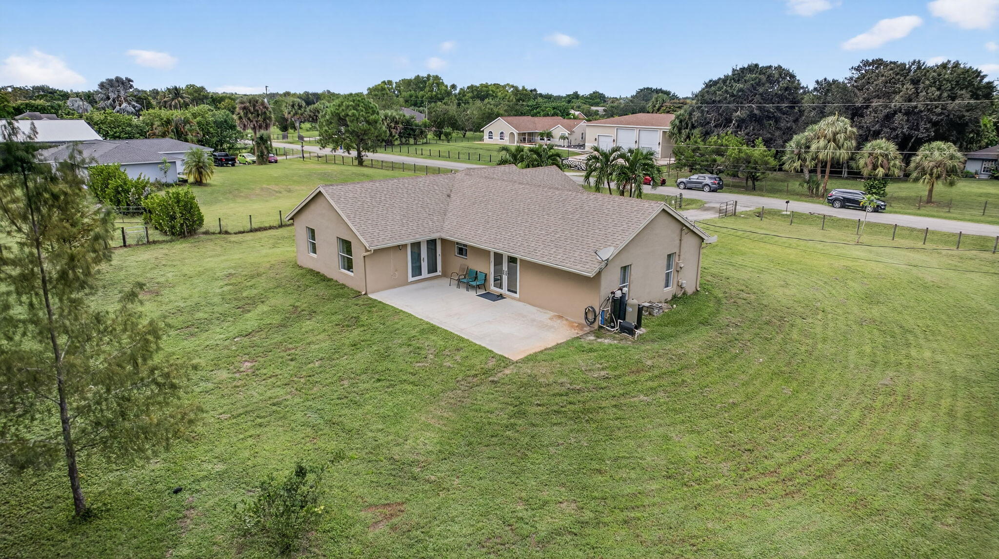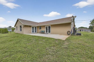 Experience country living just minutes from the new City of Westlake! This 3-bedroom, 2-bath CBS home with a 2-car garage sits on 1.29 fully fenced acres at the end of a quiet paved street. The split floor plan features two living areas with vaulted ceilings, creating an open, airy feel, and vinyl flooring in the living areas. The kitchen boasts solid wood cabinets, granite countertops, and stainless steel appliances. French doors open to a spacious backyard and patio, ideal for entertaining. With no HOA, enjoy the freedom to bring horses, boats, RVs, or trailers. The oversized lot offers room for a pool, workshop, or guest house providing endless possibilities for Florida country living.