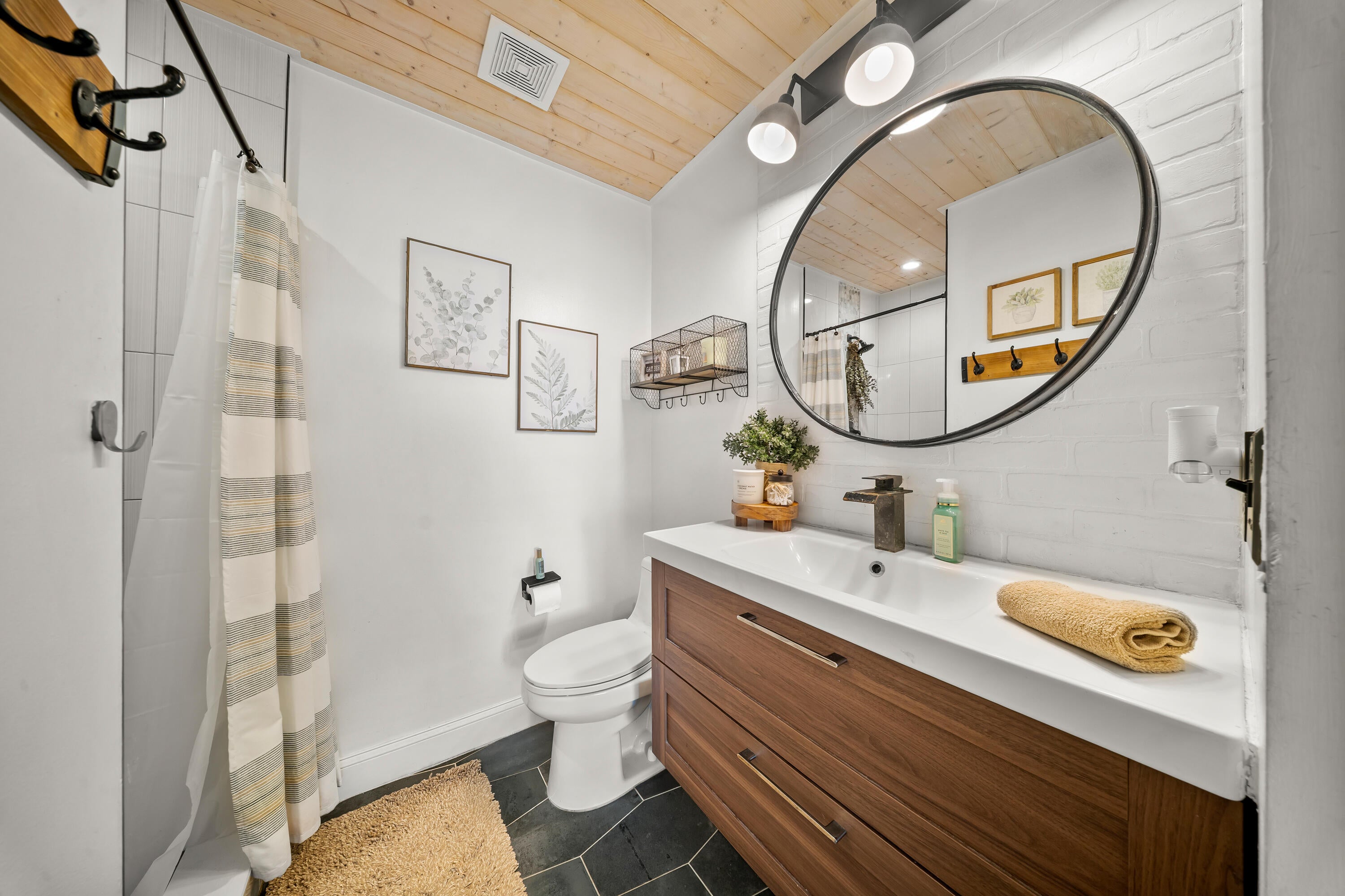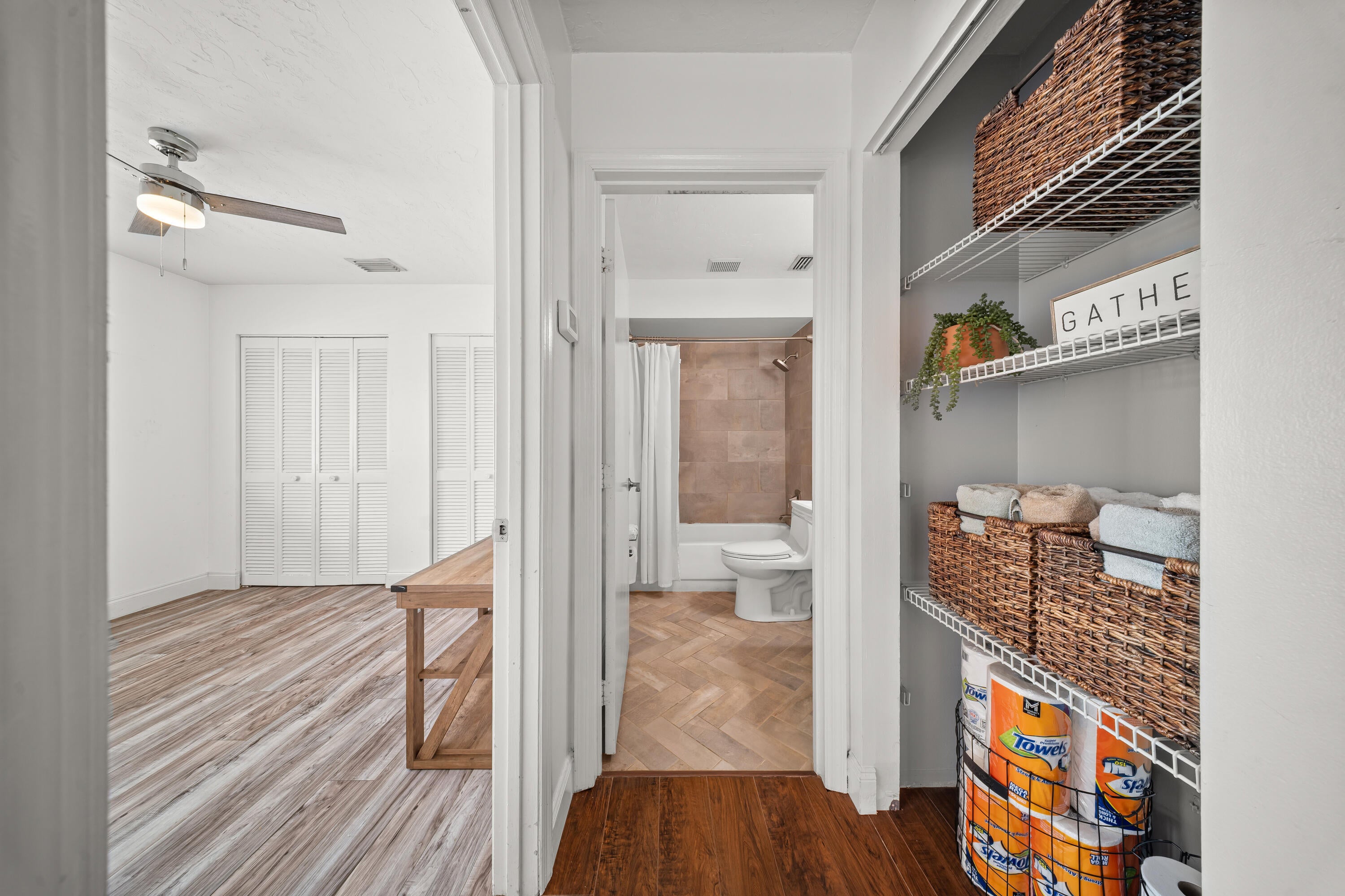 Modern comfort meets cozy charm in this beautifully updated 2 bed, 2 bath second-floor condo. The sleek kitchen boasts stainless steel appliances and quartz countertops, while the farmhouse-style primary suite offers a built out walk in closet and a touch of warm retreat with a barn door and stylish bathroom. Enjoy an airy screened porch--perfect for relaxing--with additional storage for extra convenience. Natural light, in-unit laundry, and stylish updates throughout make this move-in-ready gem a must-see! Roof 2018 and A/C 2019.