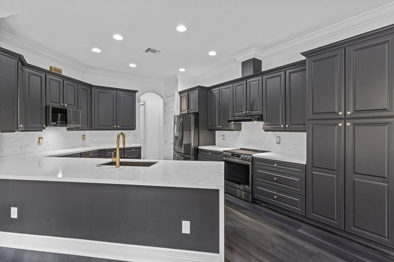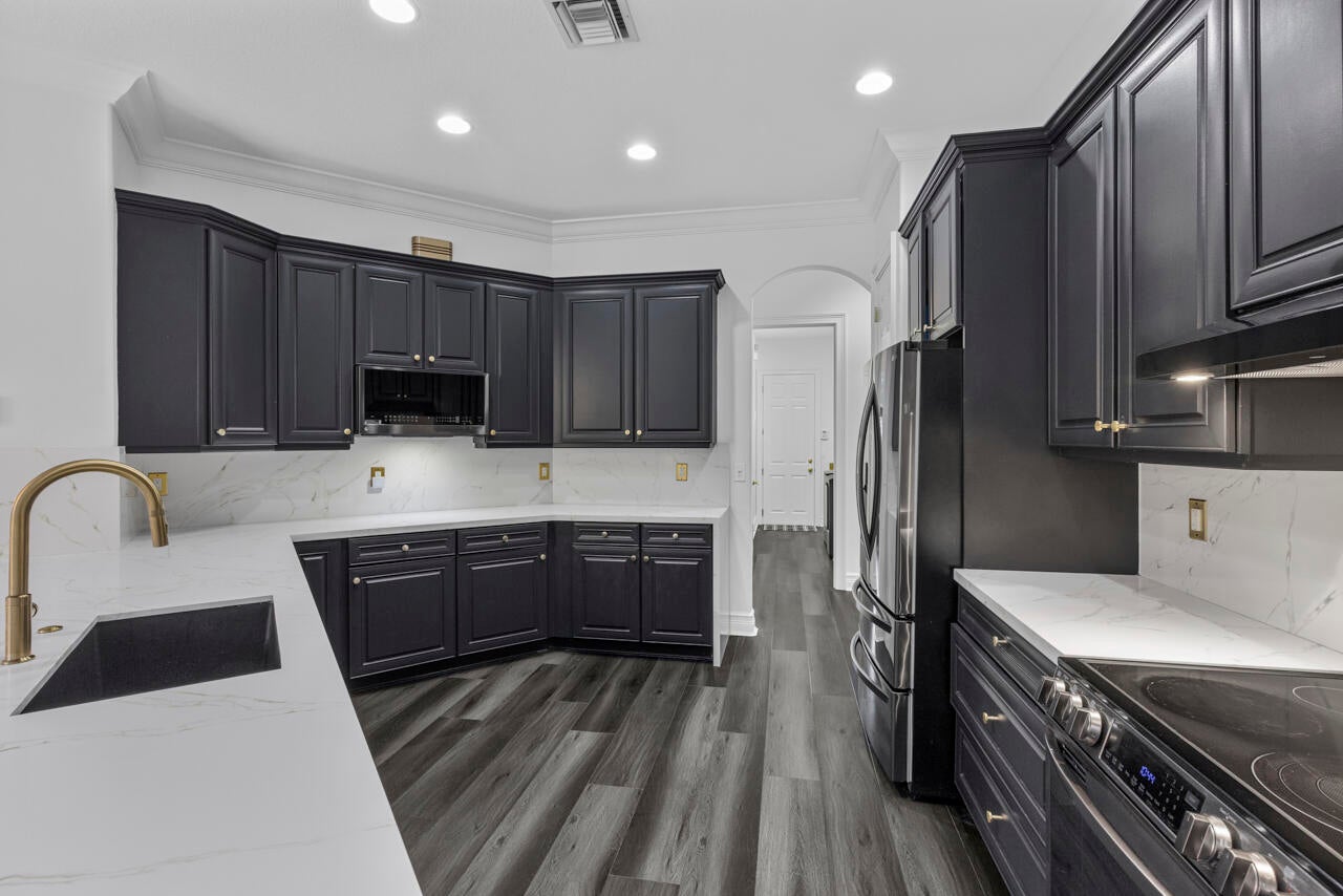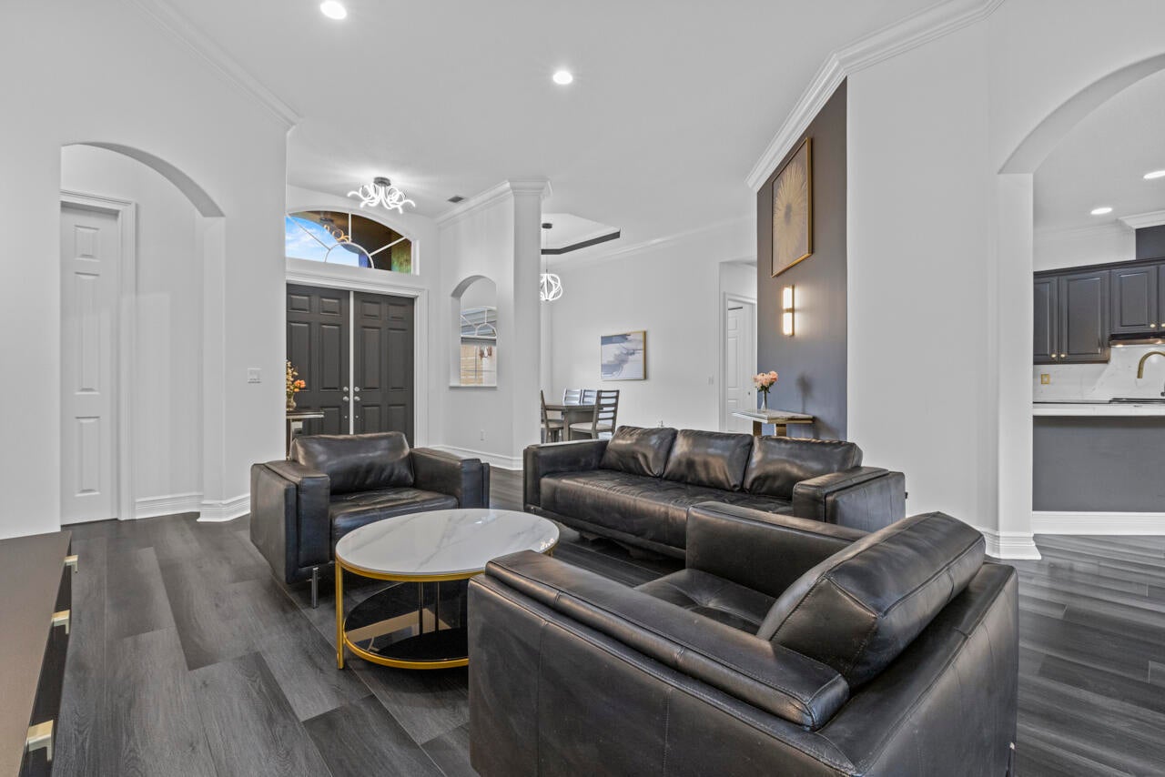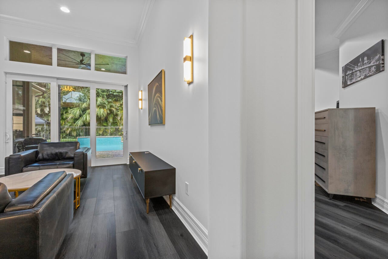 Move in ready pool home w/impact glass windows & doors, Situated on over a 1/2 acre lot. Terrific floor plan boasting volume ceilings, 4 bedrooms (3 bedrooms ensuite), plus den, 4 bathrooms & oversized 3 car garage. Primary suite has 2 walk in closets, walk in shower, tub & dual vanities. Beautiful kitchen has upgraded cabinets, Quartz countertops & new appliances. The kitchen opens up to family room/breakfast nook. Separate formal dining room & formal living room & laundry room. Private fenced in backyard, lush landscape, inviting pool & covered back patio & screened in patio. Wildwood Estates POA is a private road of 11 homes. w/low POA fees: includes lawn care. Set back from city traffic, but very close to 95. Featuring Hunter Douglas blinds, new LVP & all new lighting/fans thru out!