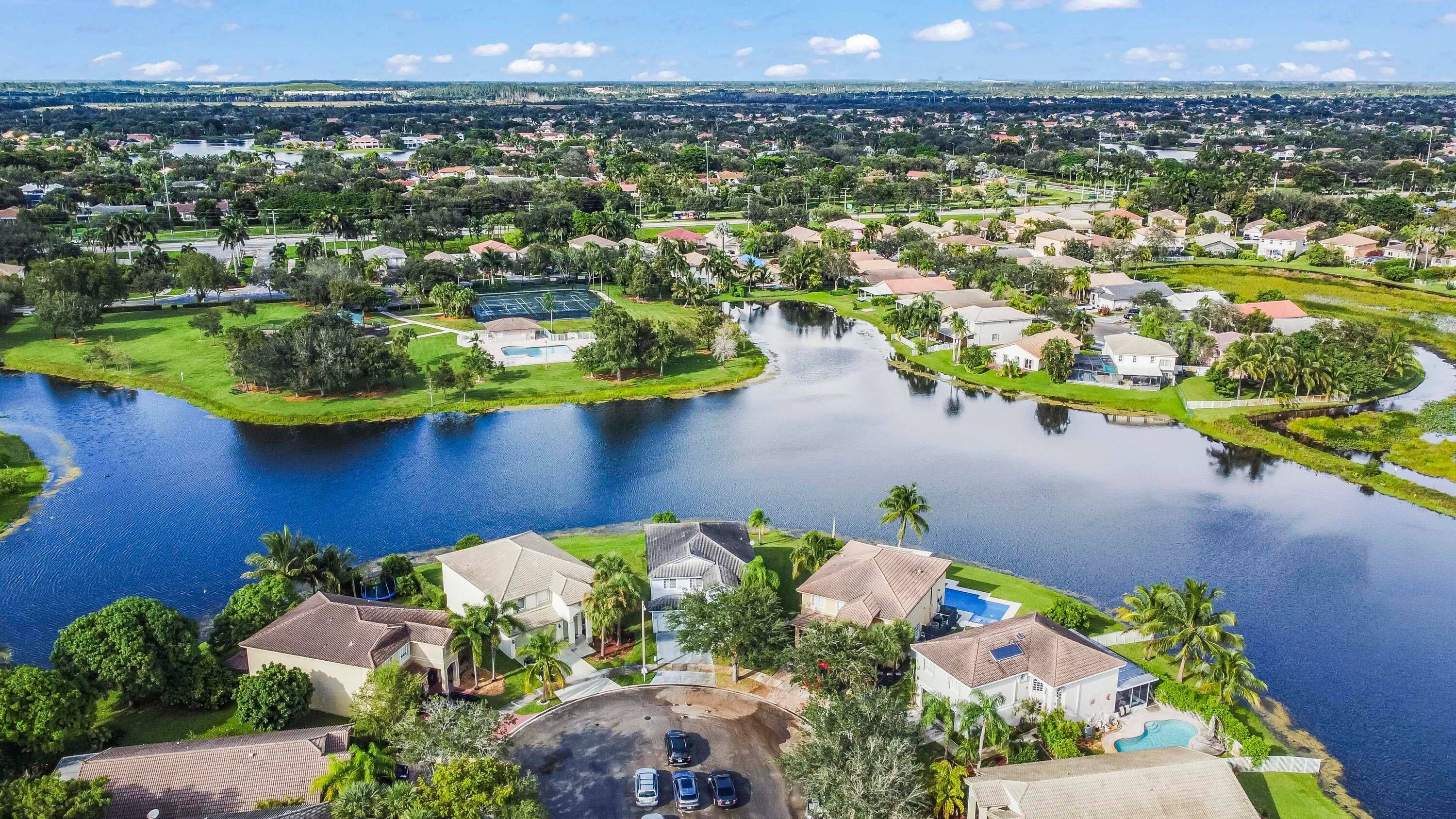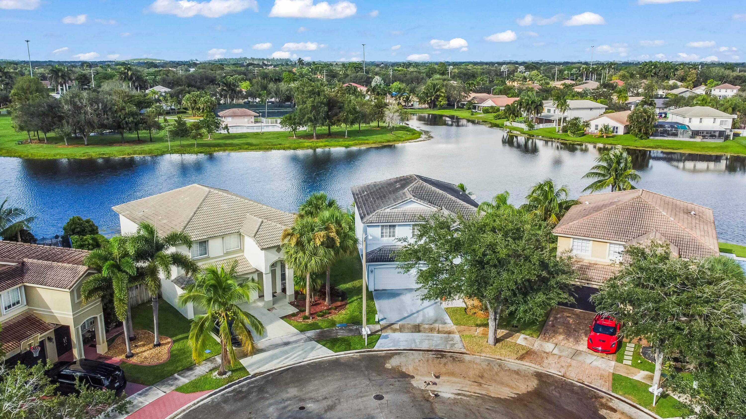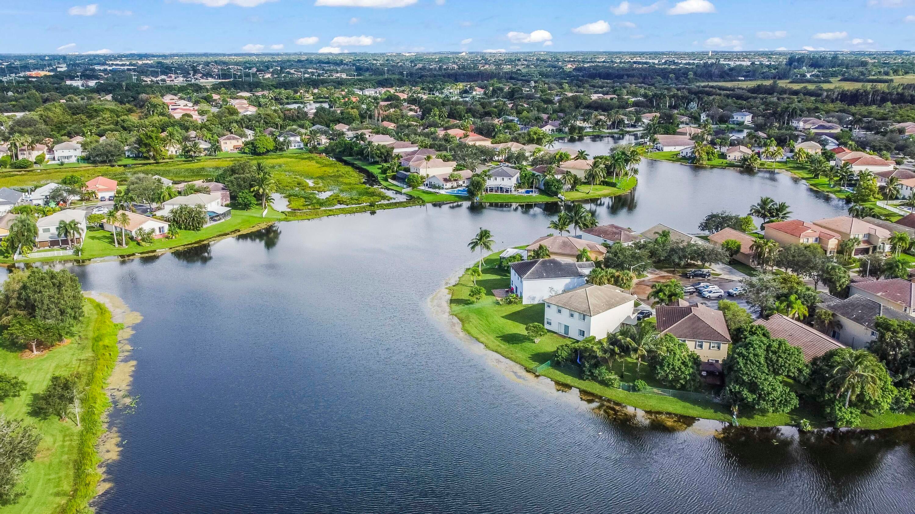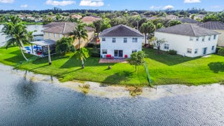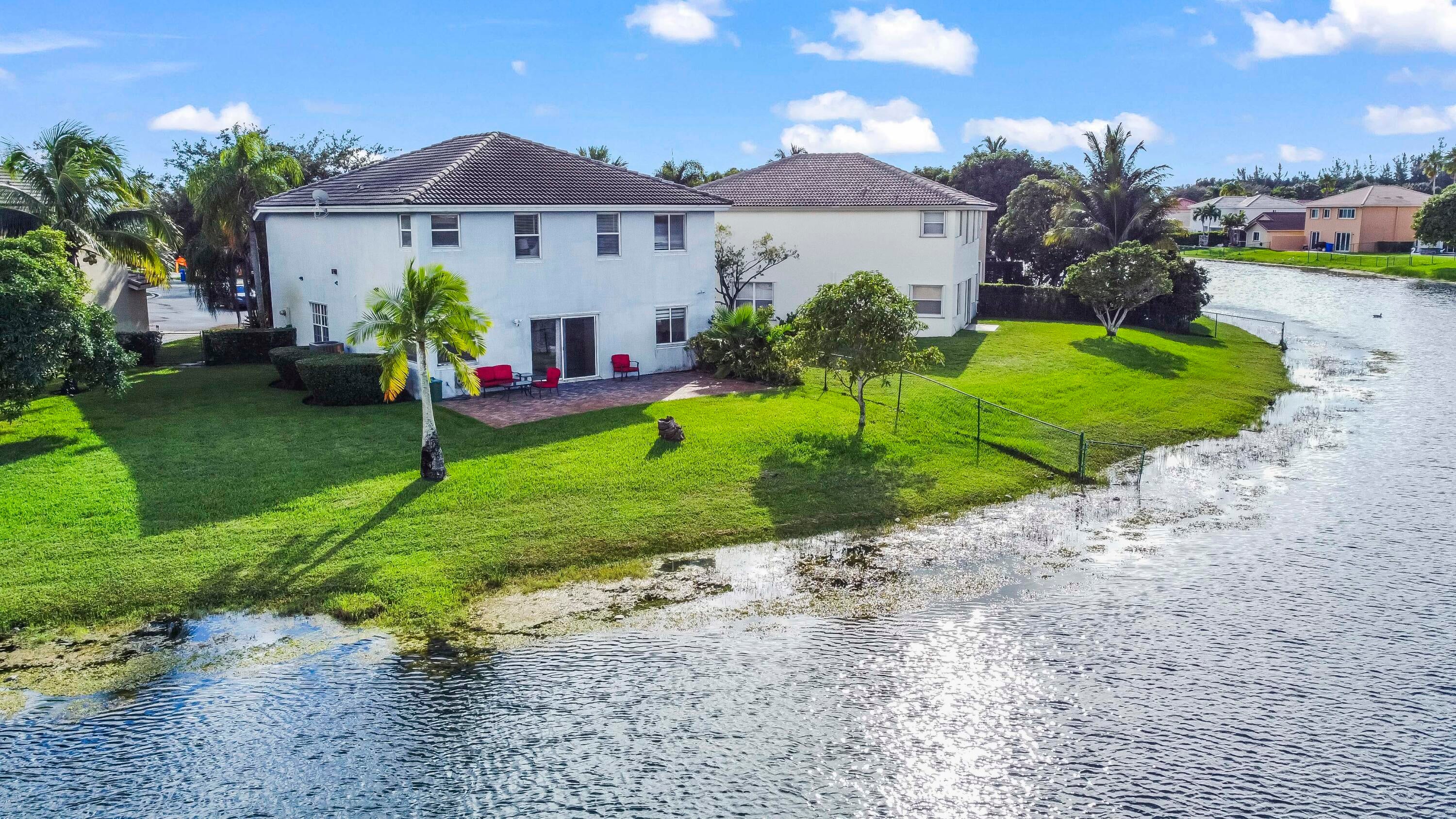 Welcome to an exclusive waterfront property, perfectly situated on a unique peninsula lot where your home is virtually surrounded by water. This stunning two-story residence boasts one of the most premier settings in the community, providing spectacular, expansive lake views from nearly every window. This is a truly rare opportunity to own a piece of waterfront paradise where tranquility and privacy are paramount.The exterior space is a dream for outdoor living, offering a massive spacious lawn that rolls right down to the water's edge on multiple sides. A beautiful, multi-toned paver patio extends directly from the home's living area, creating an ideal space for sunrises, sunsets, and entertaining guests while taking in the serene view. As part of a meticulously maintained, lake-filled community, you benefit from a consistent aesthetic and peaceful environment, making it a perfect sanctuary for enjoying the Florida lifestyle. The interior of this two-story home awaits your vision, offering a naturally bright and open canvas perfectly suited for a contemporary design with a main level bedroom and bathroom. With large windows on both the first and second floors, natural light and water views are guaranteed throughout. This property represents not just a house, but a premier point-lot lifestylecombining a dramatic waterfront setting, immense privacy, and a functional, spacious shell ready to be customized into your ultimate dream home.