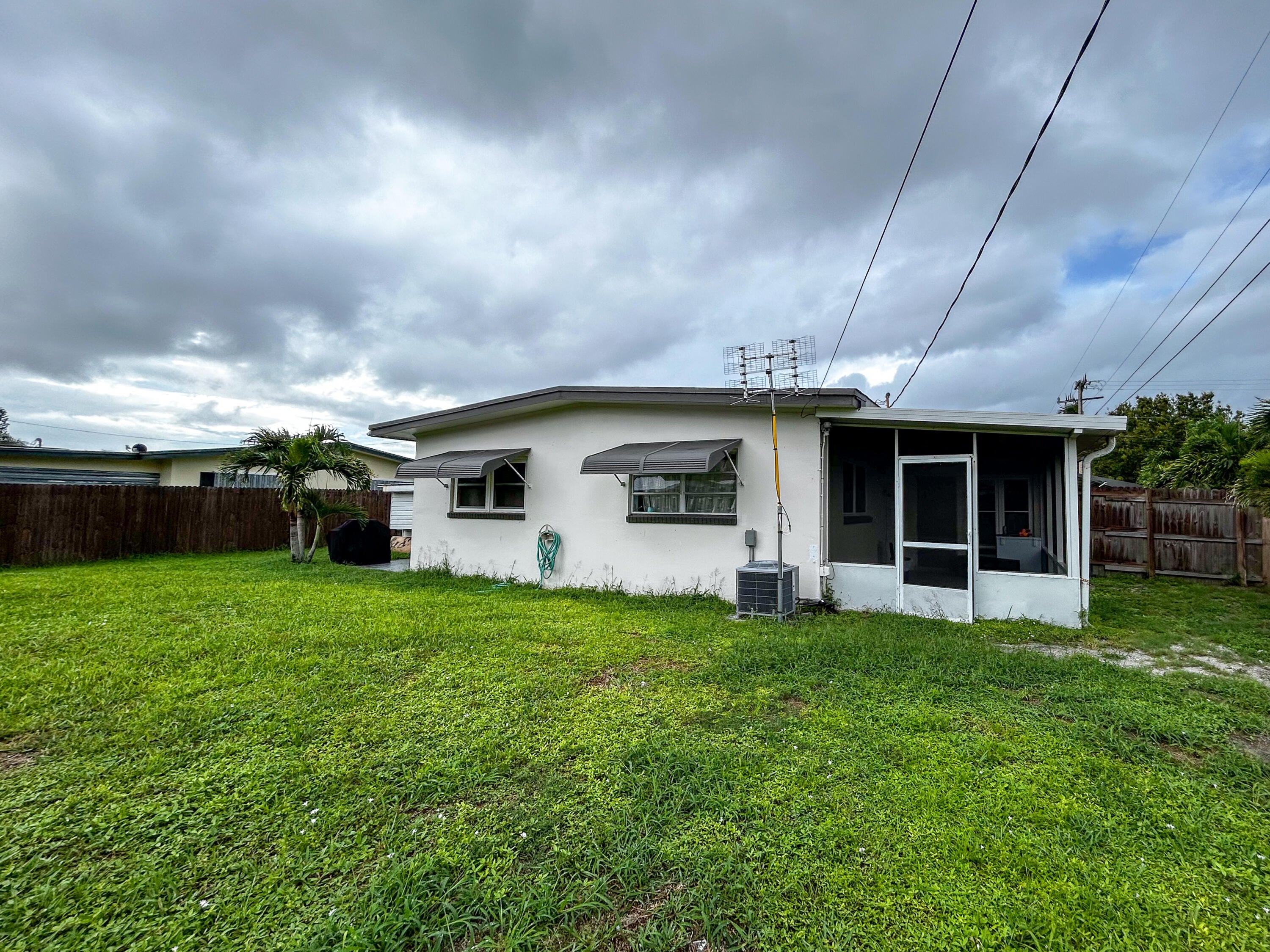CASH ONLY. Solid CBS home with great potential located in the desirable River Park subdivision! This property offers a large fenced backyard with tropical palms, a covered patio, and a carport. Inside, you'll find spacious bedrooms, comfortable living areas, and plenty of natural light throughout. Features include hurricane awnings, a functional layout, and no HOA--ideal for investors or buyers looking to make it their own. Conveniently located near US-1, shopping, dining, and parks.