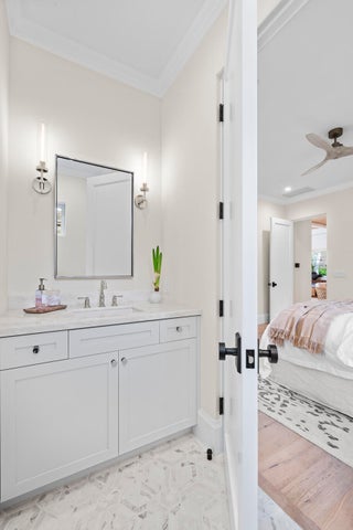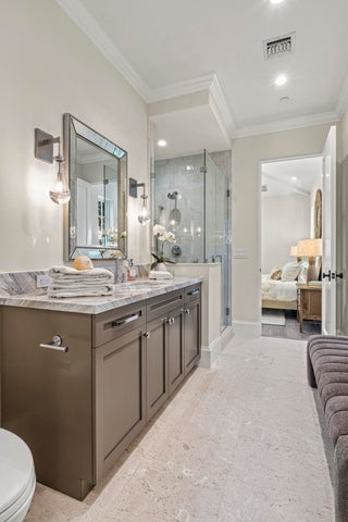 Exceptional opportunity to own a brand new custom masterpiece completed in 2025 by Delray's most revered builder, Lost Craft Builders, as his family's personal residence. Just a block and a half from the ocean, and 3 blocks from beloved Atlantic Avenue, the home is ideally positioned within the heart of the prestigious North Beach neighborhood. This serene, one of a kind, 5 BR and 6.1 BA home offers an unparalleled living experience with luxurious and timeless finishes, graciously proportioned rooms and impeccable craftsmanship. The thoughtfully designed main floor's great room with lofty beamed pecky cypress ceiling, is poised for seamless entertaining w/ chef's kitchen, living area w/natural gas fireplace and dining area all drenched in natural light by a 20' wall ofsliding glass doors that open out to a covered loggia with a fabulous summer kitchen and serene pool and garden views. The chef's kitchen is a culinary dream, equipped with Wolf appliances including natural gas range and Subzero 36" fridge and 36" freezer, quartzite countertops, custom millwork, separate bar area w/ wine cooler, an enormous Island which seats 7 for large gatherings and exceptional storage. The Butler's Pantry, Laundry, Office (optional 6th bedroom), marble powder room, cabana bathroom and ensuite VIP bedroom complete the main floor. The 2nd floor features a spectacular primary suite and 2 additional spacious en-suite bedrooms all w/ walk-in closets, vaulted ceilings and access to the outdoor south-facing covered balcony. The luxurious primary suite w/ separate reading area captures spectacular sunrises and sunsets through north, south, east and west exposures. The spacious ensuite marble bathroom features custom dual-sink vanity w/ makeup area, inlaid marble mosaic flooring and separate walk-in closets w/custom built-ins. Spectacular top floor, set under the charming angles of the roof rafters and dormer windows enjoys 360* open vistas with a light-filled family room, charming bed/bunk room, full bath, kitchenette, game and gym areas. The generous size and openness of the layout of this bonus area allows fo limitless and versatile uses. Set apart from the main living area, it's position in the home offers the ideal opportunity for multi-generational entertaining. The outdoor and indoor spaces blend seamlessly for easy entertaining with covered porch w/ outdoor kitchen, roll-down hurricane shades, heated saline pool with spa, covered porch, balconies and lush, mature landscaping and landscape lighting. For driving enthusiasts, there is air-conditioned garaging potential for 4 cars with gleaming epoxy floors. This masterfully constructed home is built to the highest standards, including a solid poured concrete structure, concrete flooring system, upgraded sound proofed interior walls, impact windows and doors, Lutron lighting, Audio System, Security with CCTV, Fire Sprinkler System, full-house generator, elevator and roll down hurricane screens. This truly spectacular home, built for and by Delray's most discerning Builder, is move-in ready.