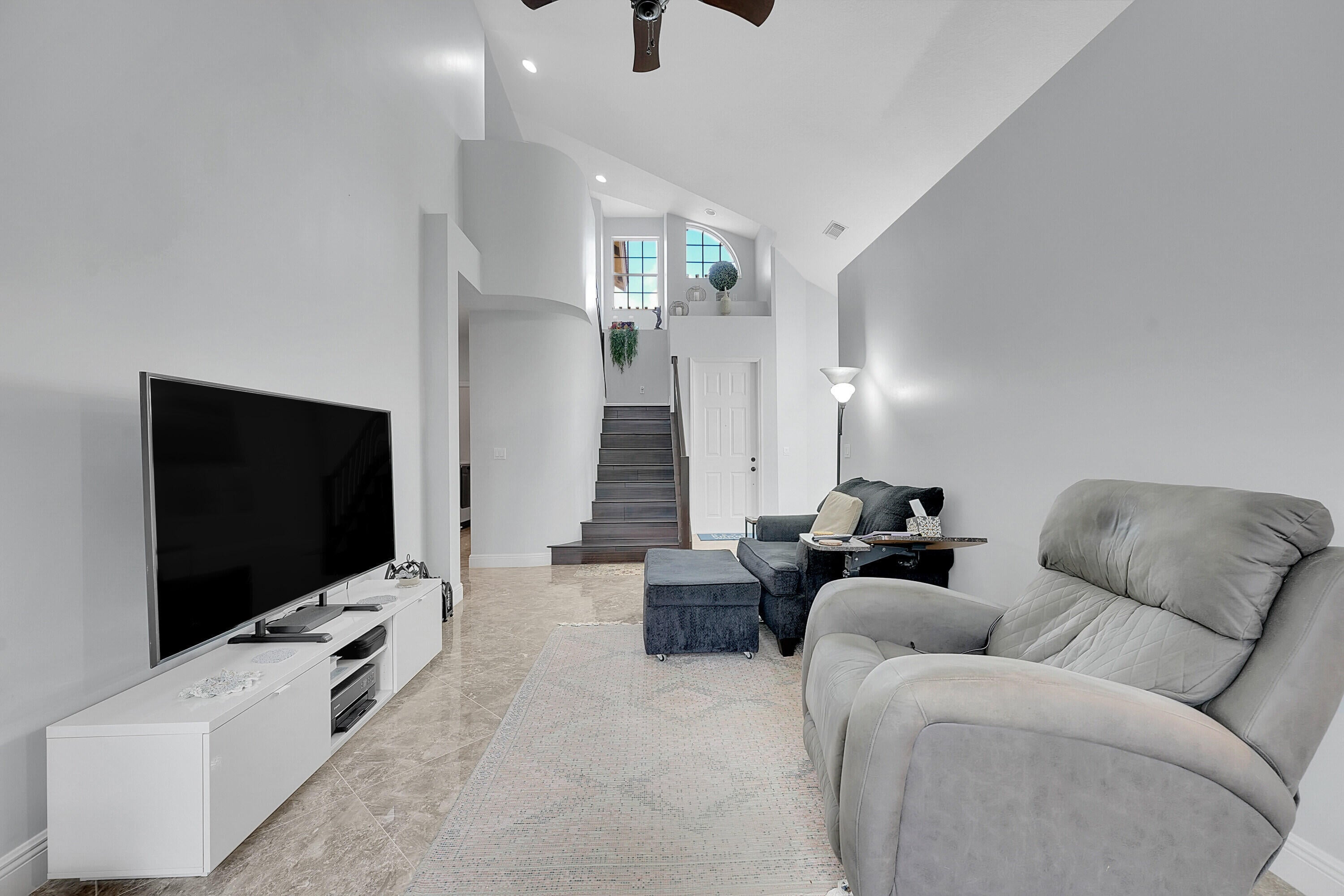 Welcome to this stunning two-story home located in the highly sought-after gated community of Lake Charles in St. Lucie West. Featuring 3 bedrooms, 2.5 baths, and a 2-car garage, this residence blends spacious living with comfort and modern design.Enjoy outdoor living at its finest with a charming front porch, a covered screened porch, and an open, oversized screened back patio--perfect for relaxing, entertaining, or enjoying Florida's year-round sunshine. Accordion shutters provide added protection and peace of mind.Inside, discover a spacious open floor plan with vaulted ceilings, tile flooring throughout the first floor, and warm wood flooring upstairs. The updated kitchen features modern cabinetry, stainless-steel appliances, a gas stove, and a cozy breakfast nook overlookingthe screened patio ideal for your morning coffee or unwinding at sunset. The primary suite is generously sized, offering space for a home office and a sliding door leading to the screened porch. A laundry room and half bath are conveniently located on the main floor, along with three sliding doors providing easy access to the outdoor spaces. Upstairs, you'll find two bedrooms, and shared ensuite bath perfect for family, guests, or a home office. The private backyard offers plenty of room for outdoor enjoyment or the addition of a future pool. Residents of Lake Charles enjoy low HOA fees that include lawn care, cable, and internet, plus access to resort-style amenitiesa clubhouse, pool, tennis courts, basketball court, playground, and scenic walking paths. Conveniently located near shopping, dining, medical facilities, schools, and major highways, this home truly has it all!